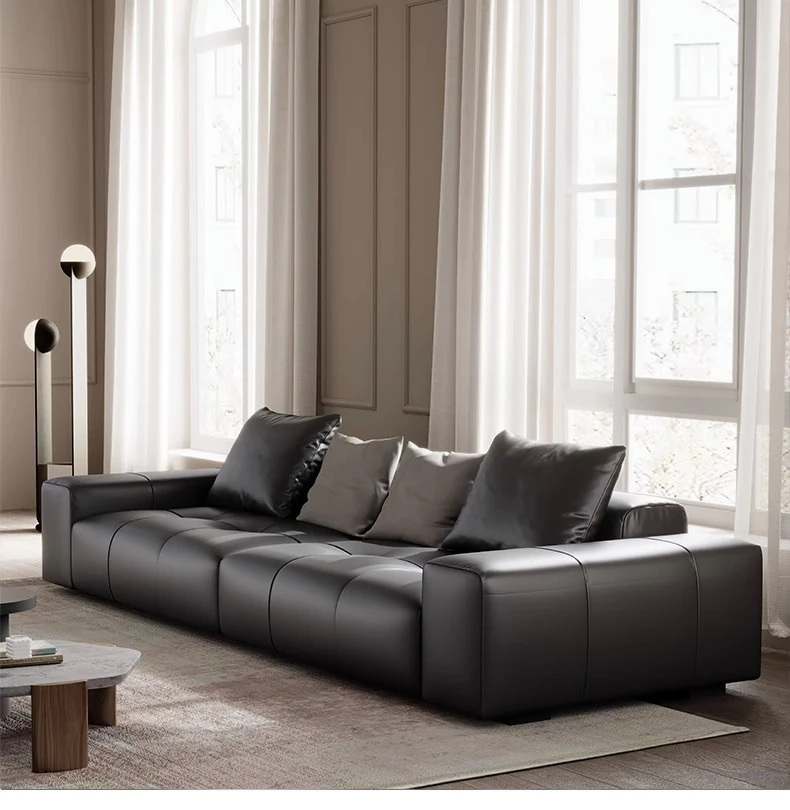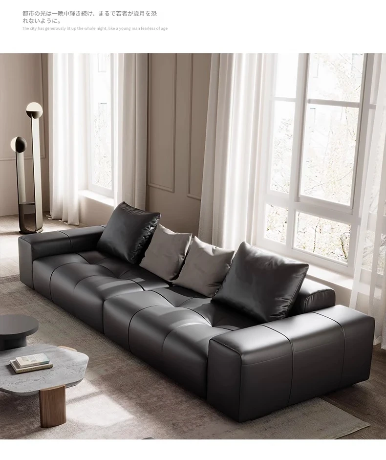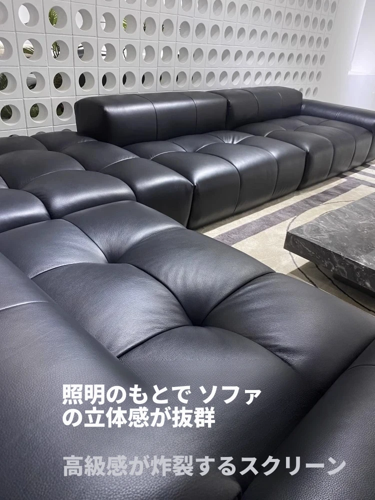 Sabaデザイナーのピクセル本革リビングソファ - イタリアンミニマリズムの傑作、上質なトップグレインレザー使用のモジュラーコンビネーション!あなたの空間を洗練された雰囲気に。