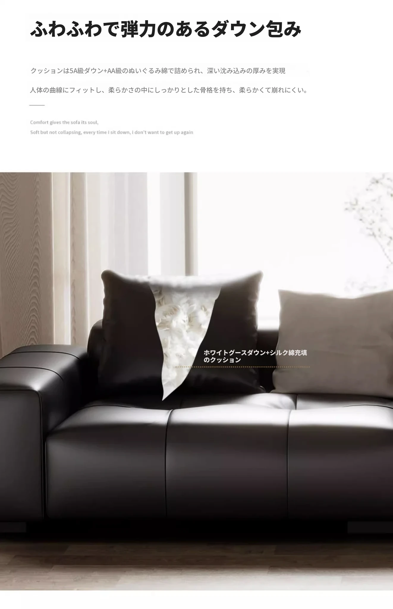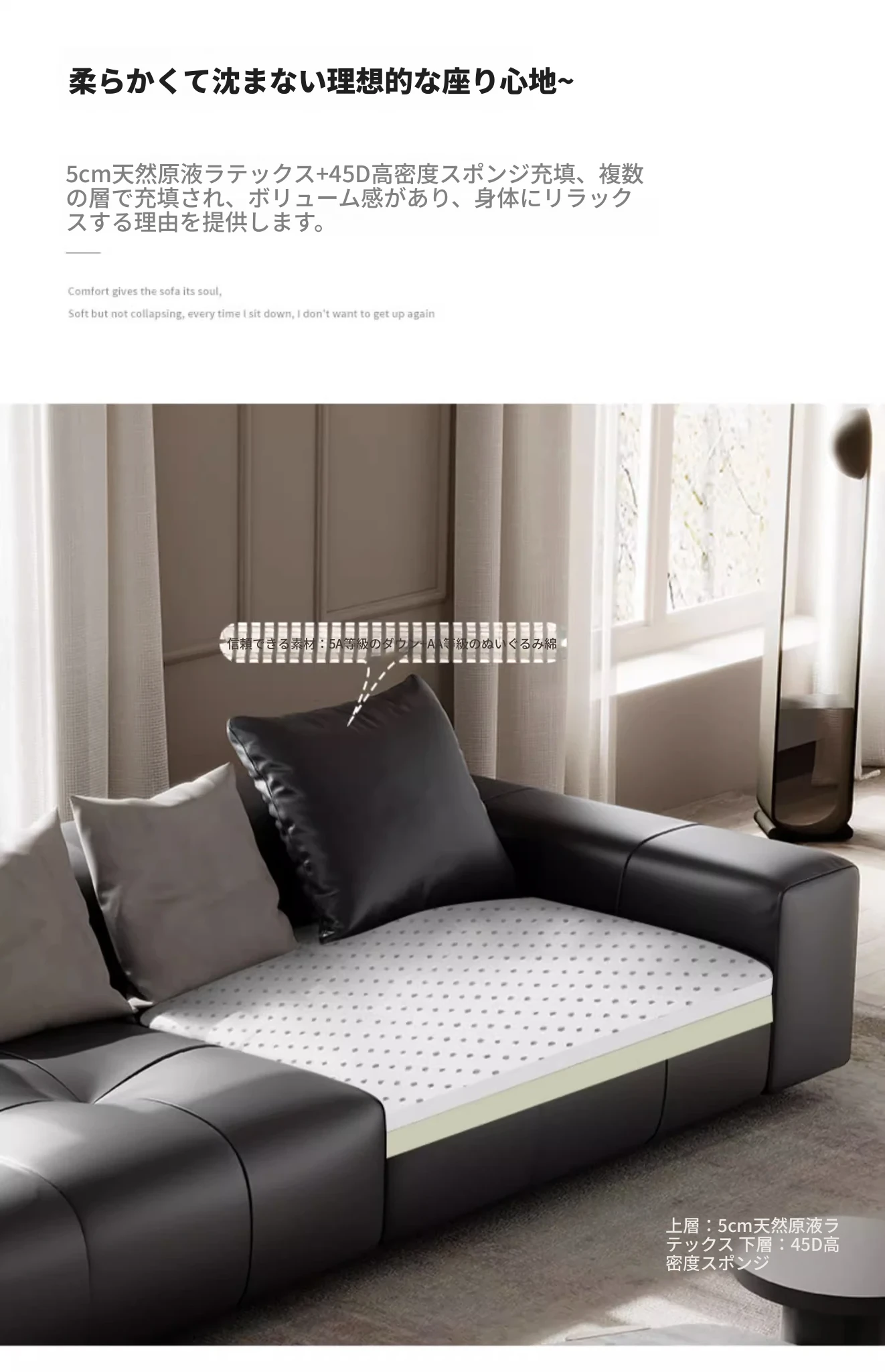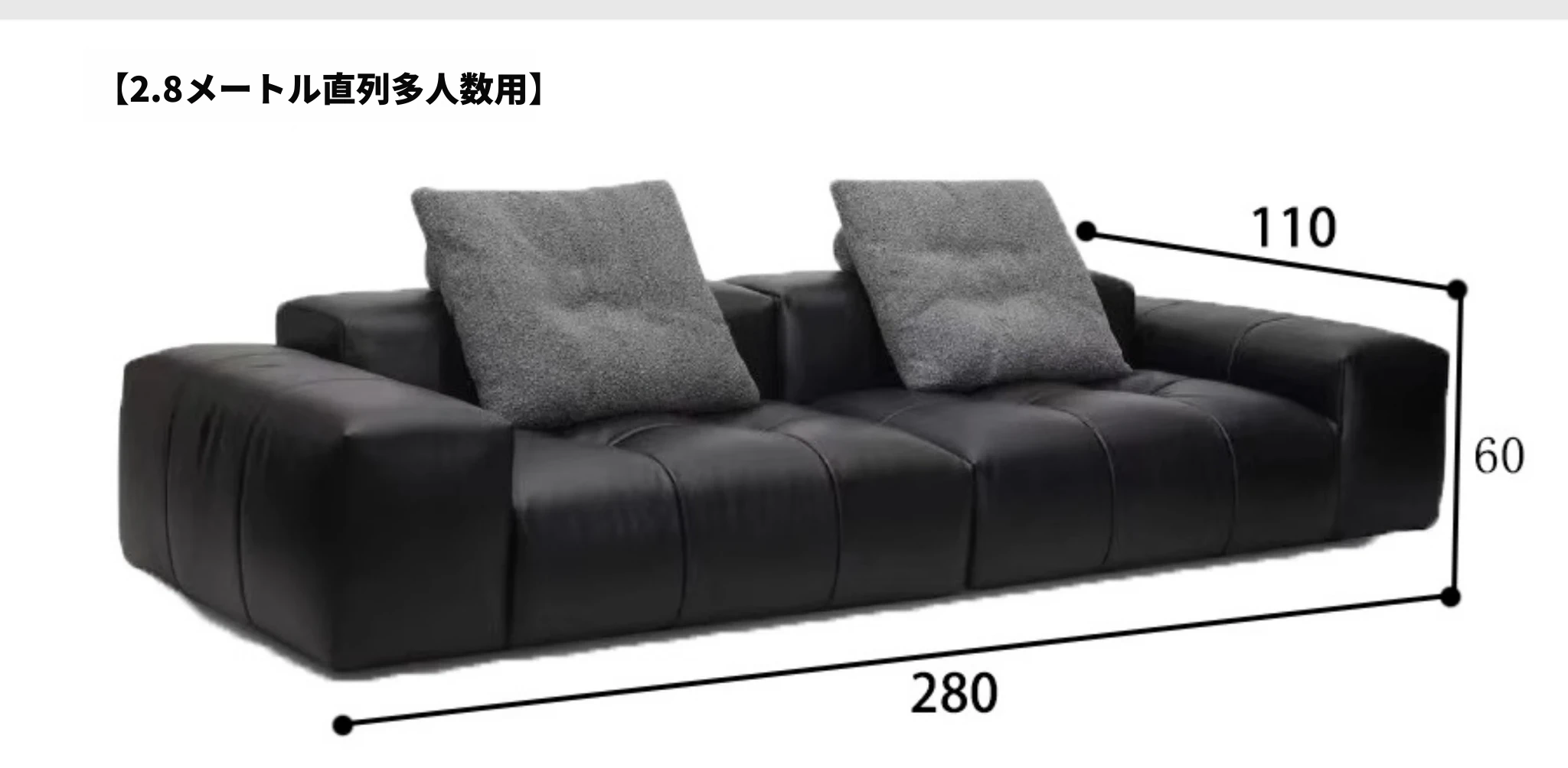 2.8メートル大三人用(イタリア輸入6級中厚牛革+8分ラテックス) 15年保証でへたりません