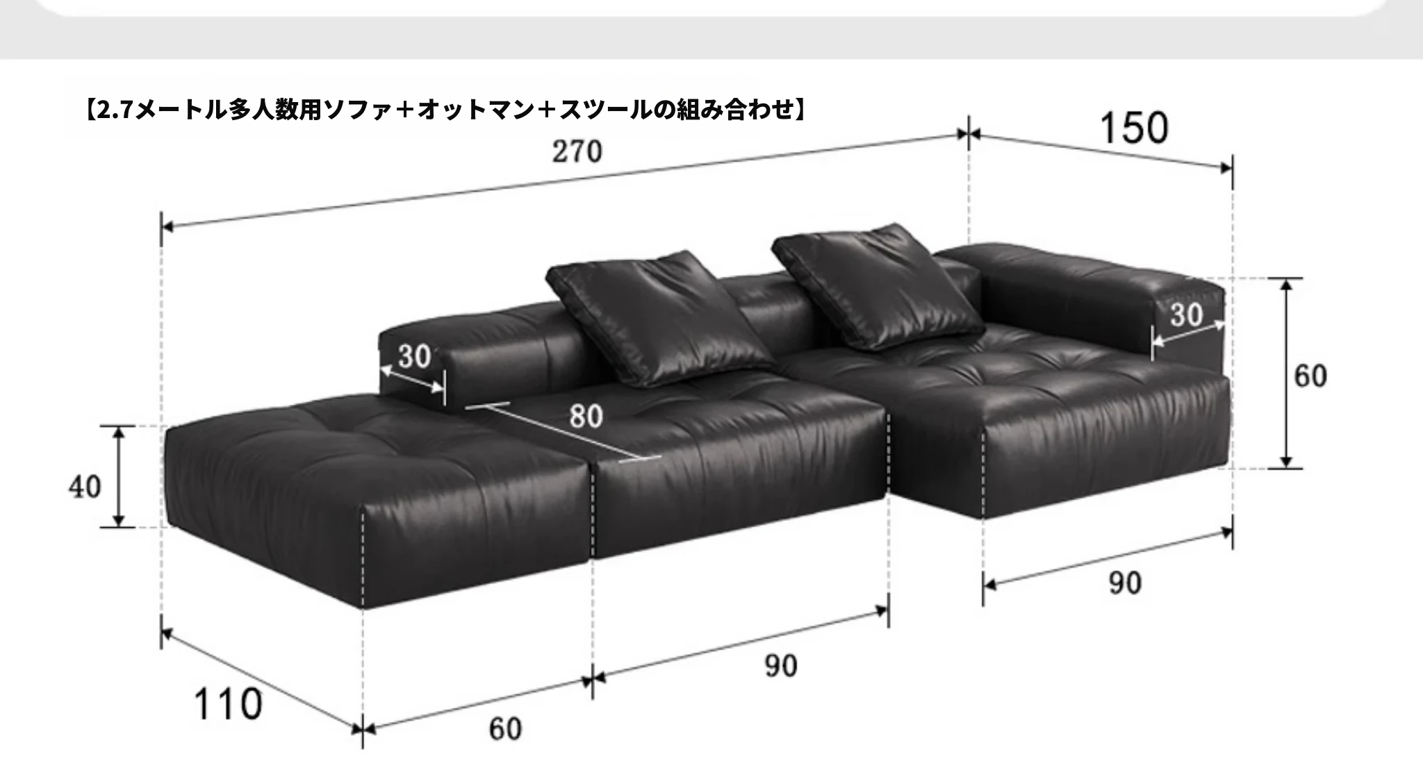 2.7メートル小三人用+フェイスタ(イタリア輸入6級中厚牛革+8分ラテックス) 15年保証でへたりません