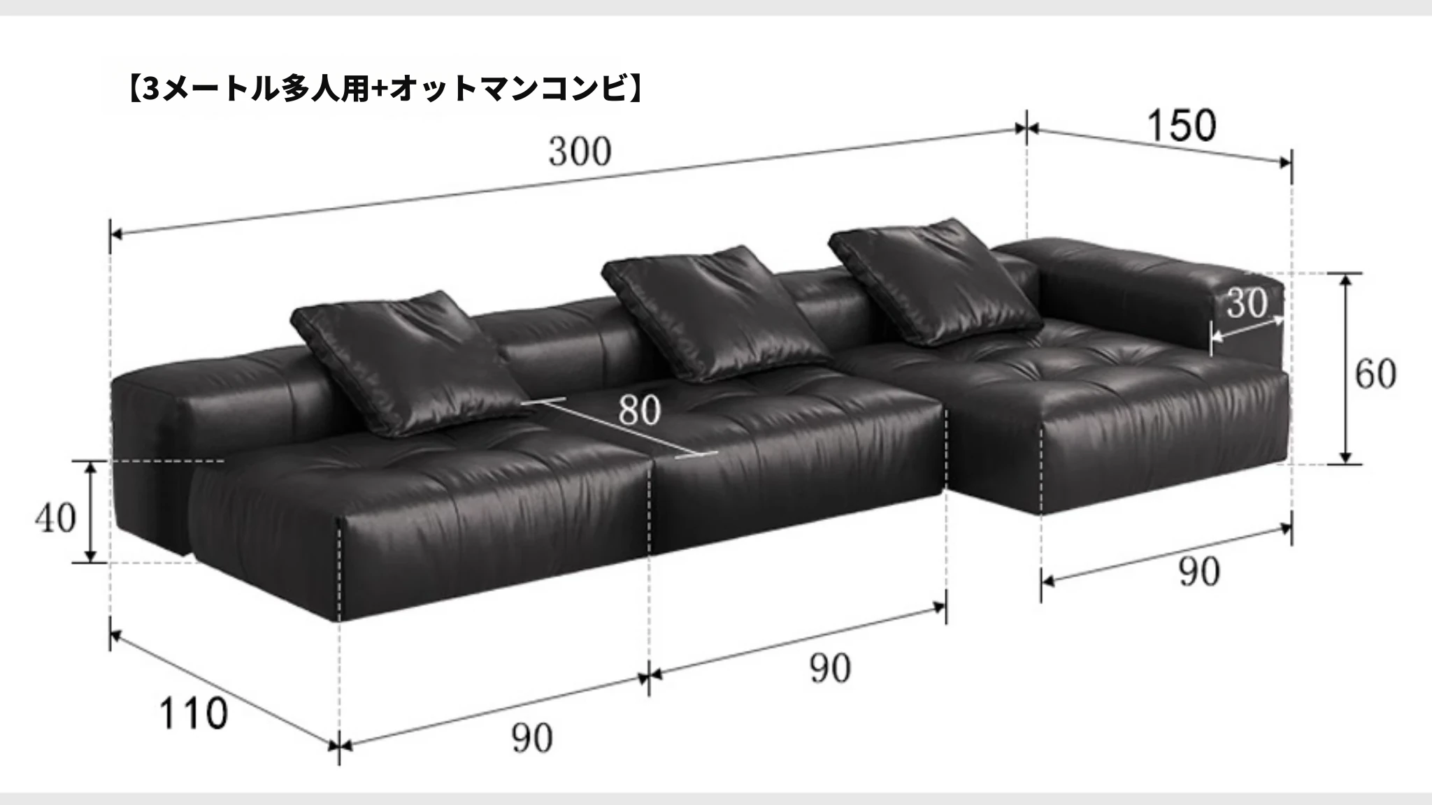 3.0メートル小四人用+フェイスタ(イタリア輸入6級中厚牛革+8分ラテックス) 15年保証でへたりません