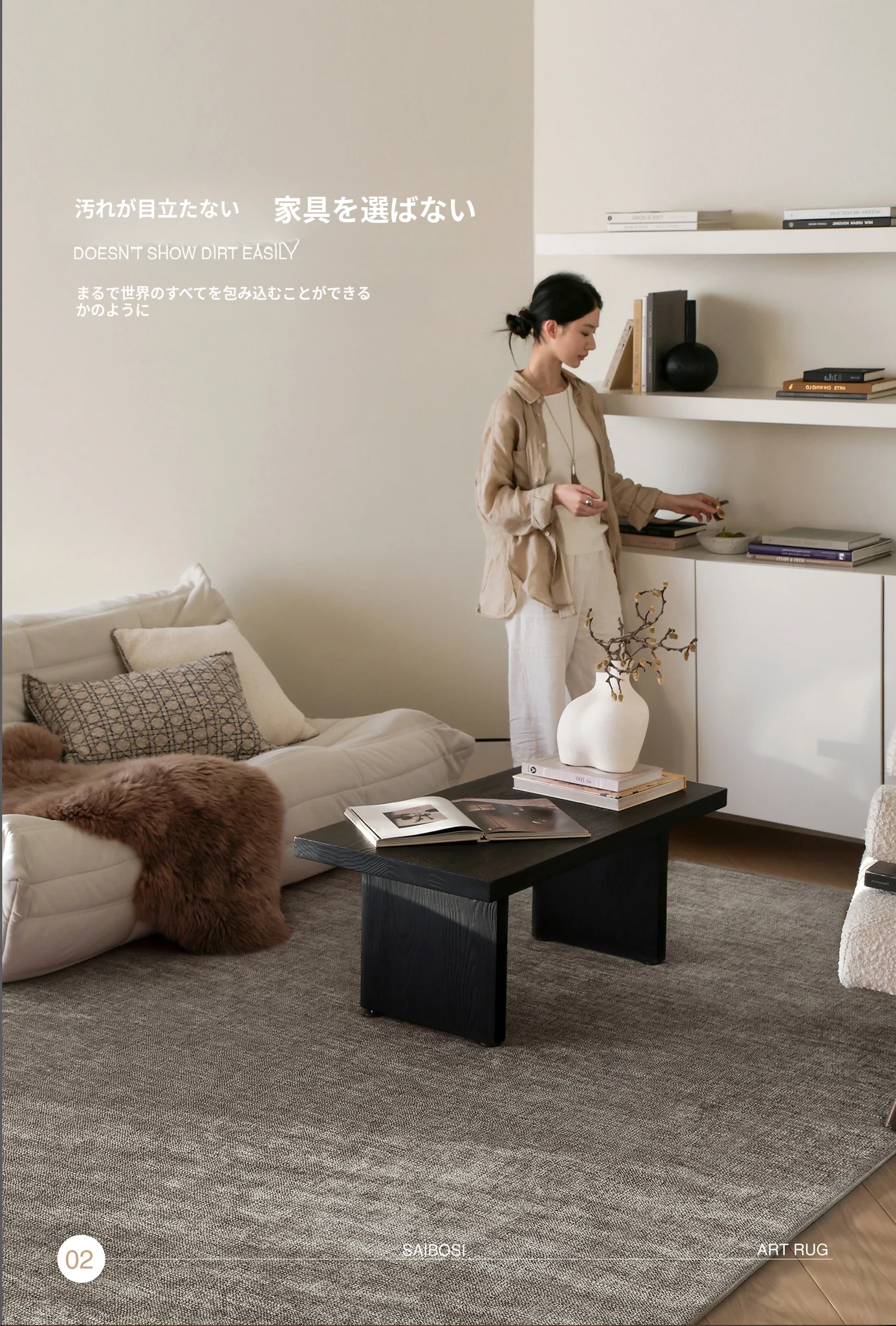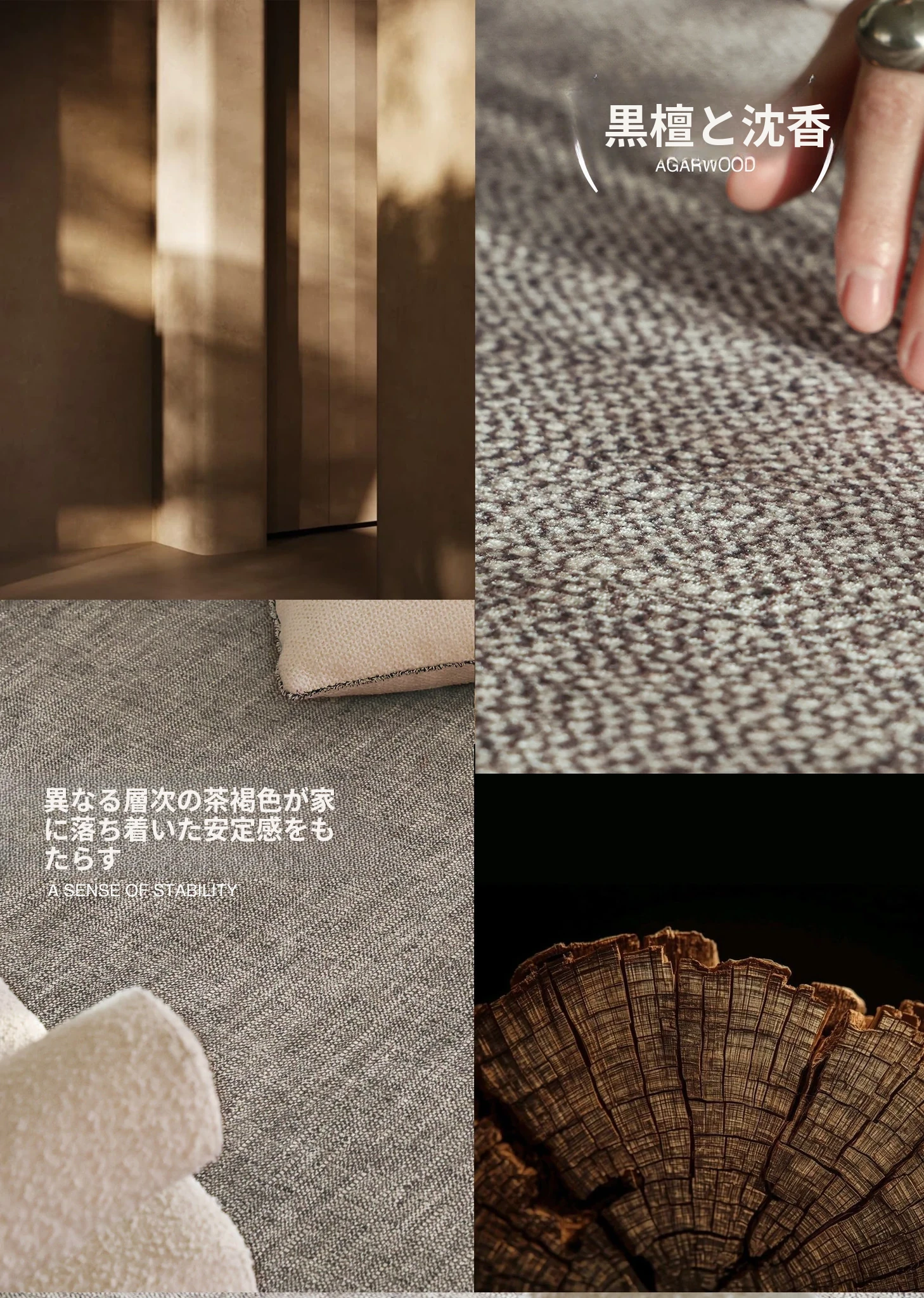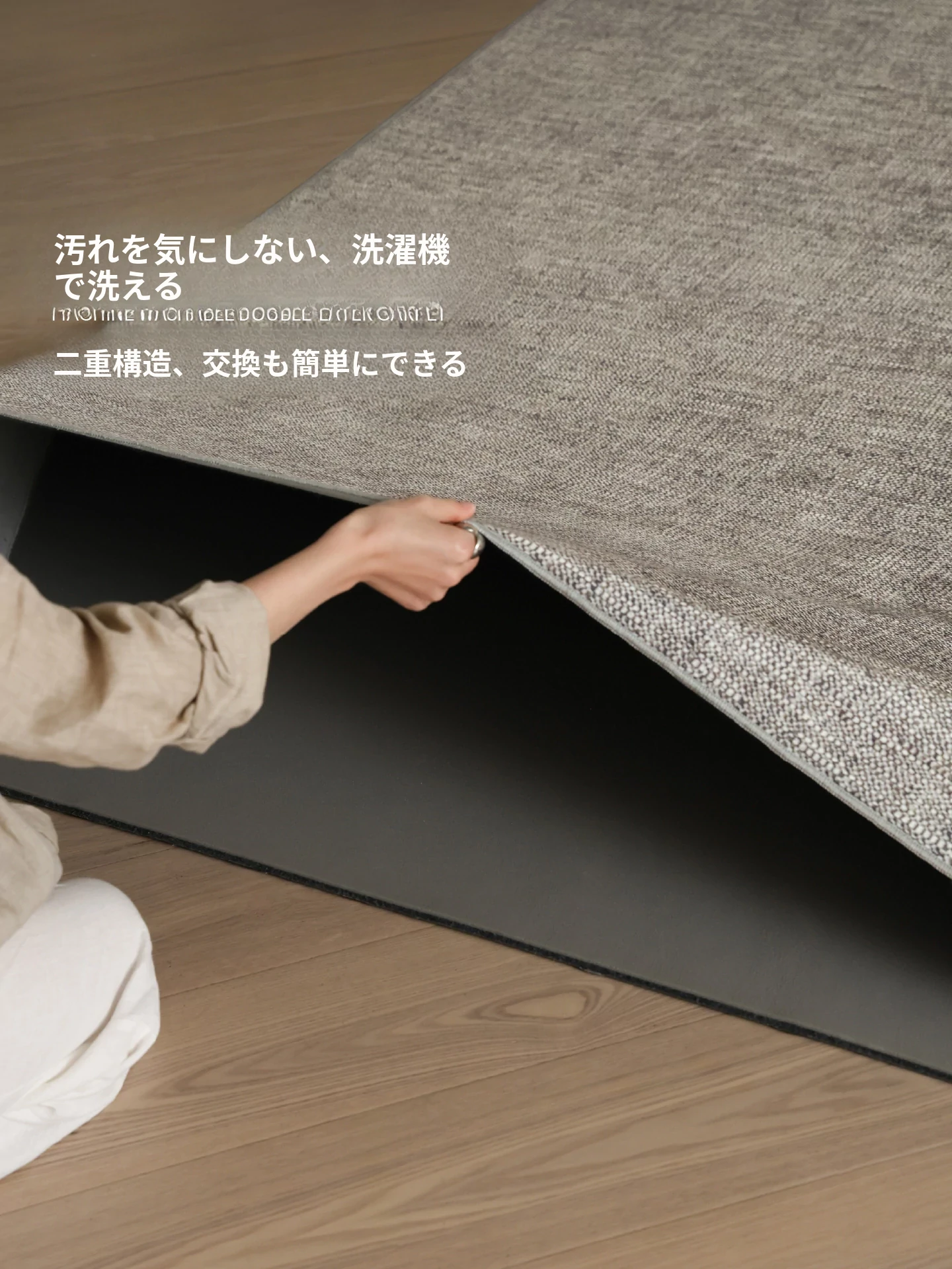 サイボシウッド香木の中古侘寂風ダブルレイヤーラグ - 洗える!猫の爪から守る、リビングや寝室にぴったりのデザイン。お手入れ簡単で、心地よい空間を演出します。