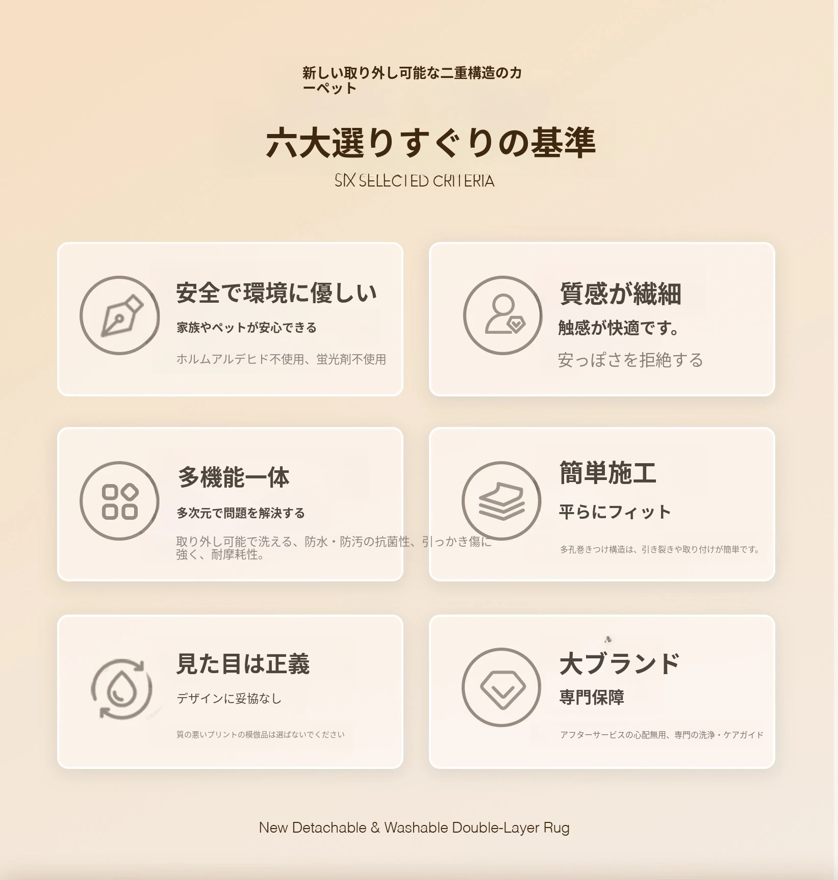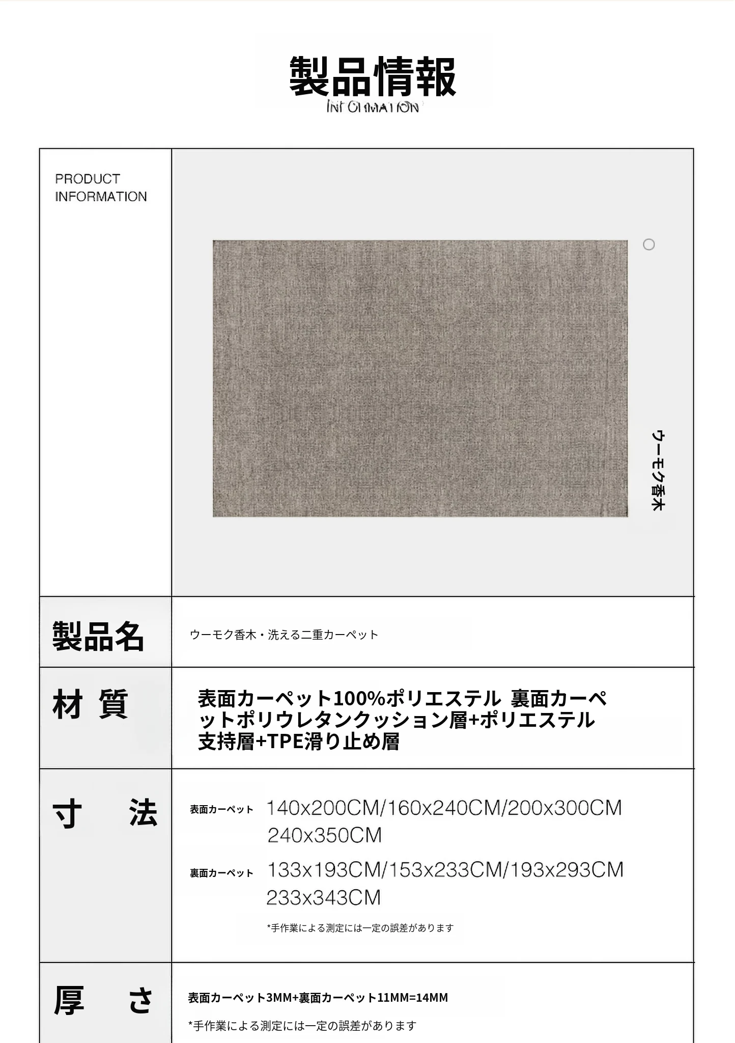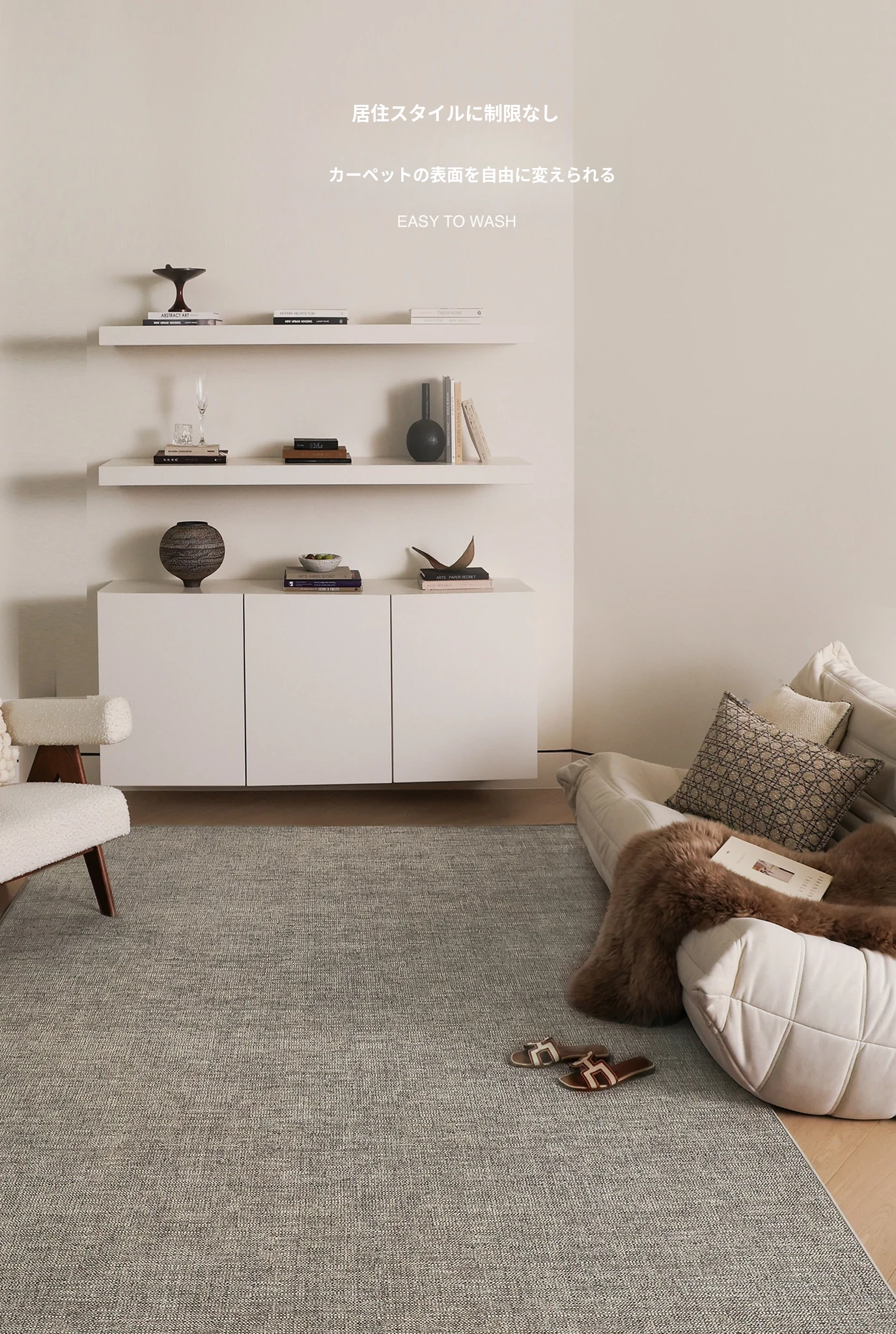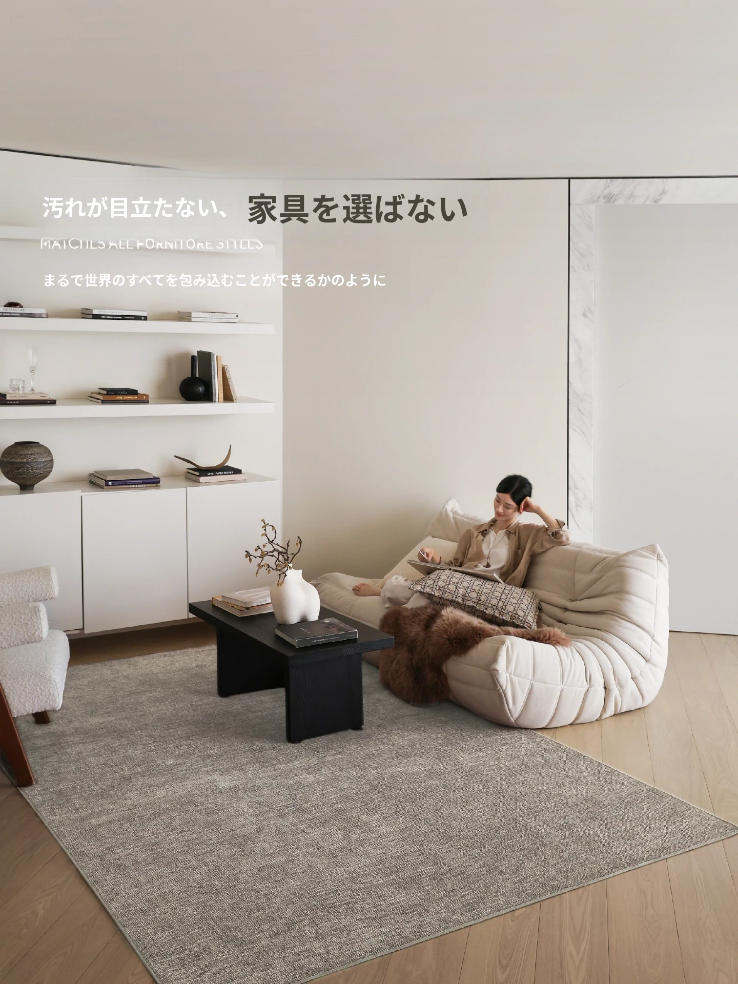 サイボシウッド香木の中古侘寂風ダブルレイヤーラグ - 洗える!猫の爪から守る、リビングや寝室にぴったりのデザイン。お手入れ簡単で、心地よい空間を演出します。