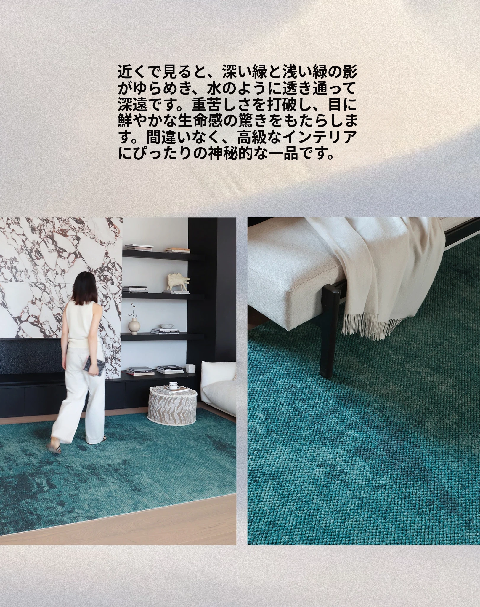 サイボス宝石グリーンオアシス ニュージーランドウールカーペット 高級感あふれるリビング・寝室に最適!サイボス青山の美しい宿で、心地よい空間を演出。