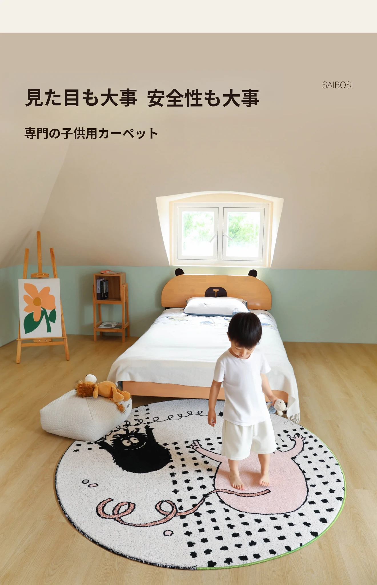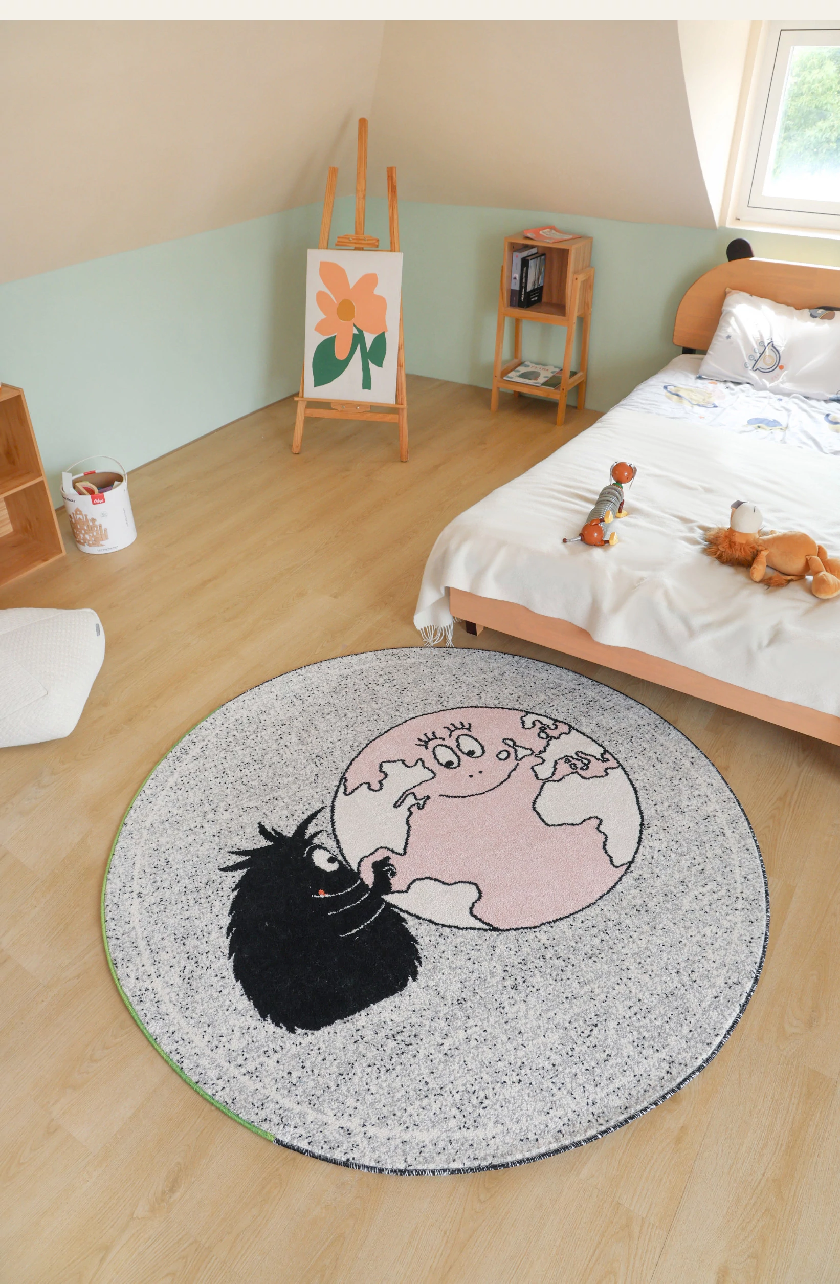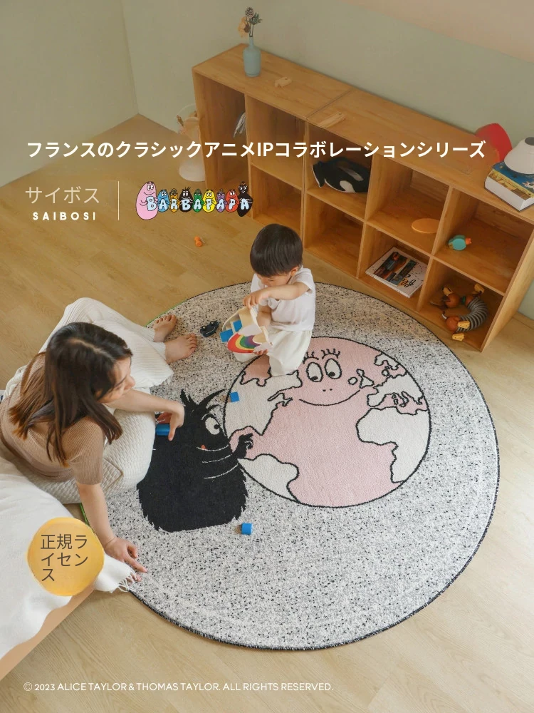 サイボーグバーバパパコラボ 無接着剤ラグ 子供部屋用 丸型リビング・寝室・ベッドサイドマット 青山の美しい宿での特別な空間を演出!
