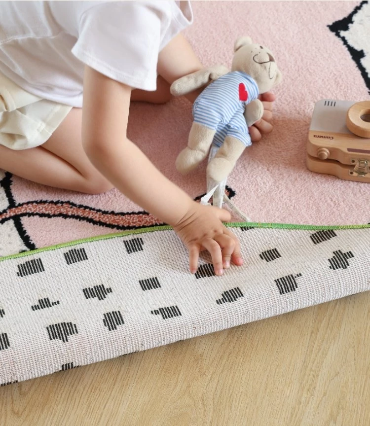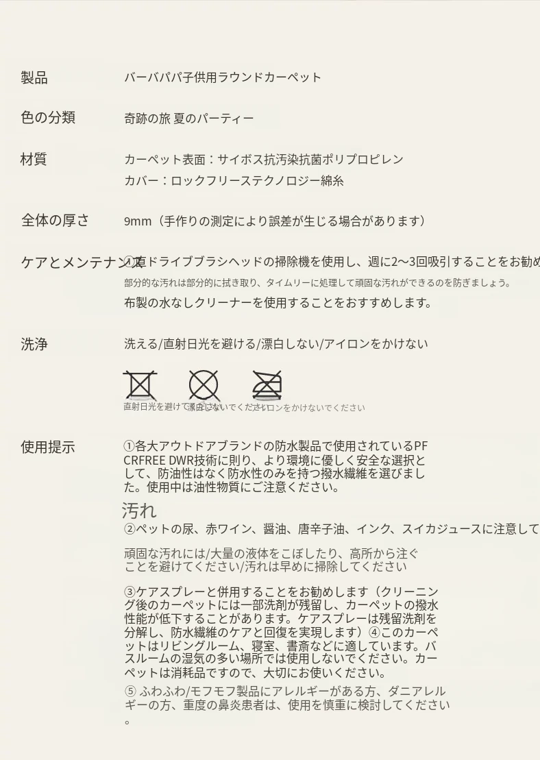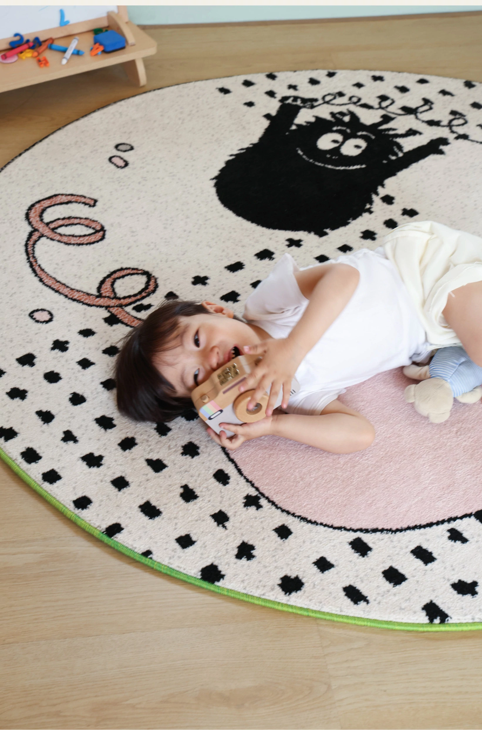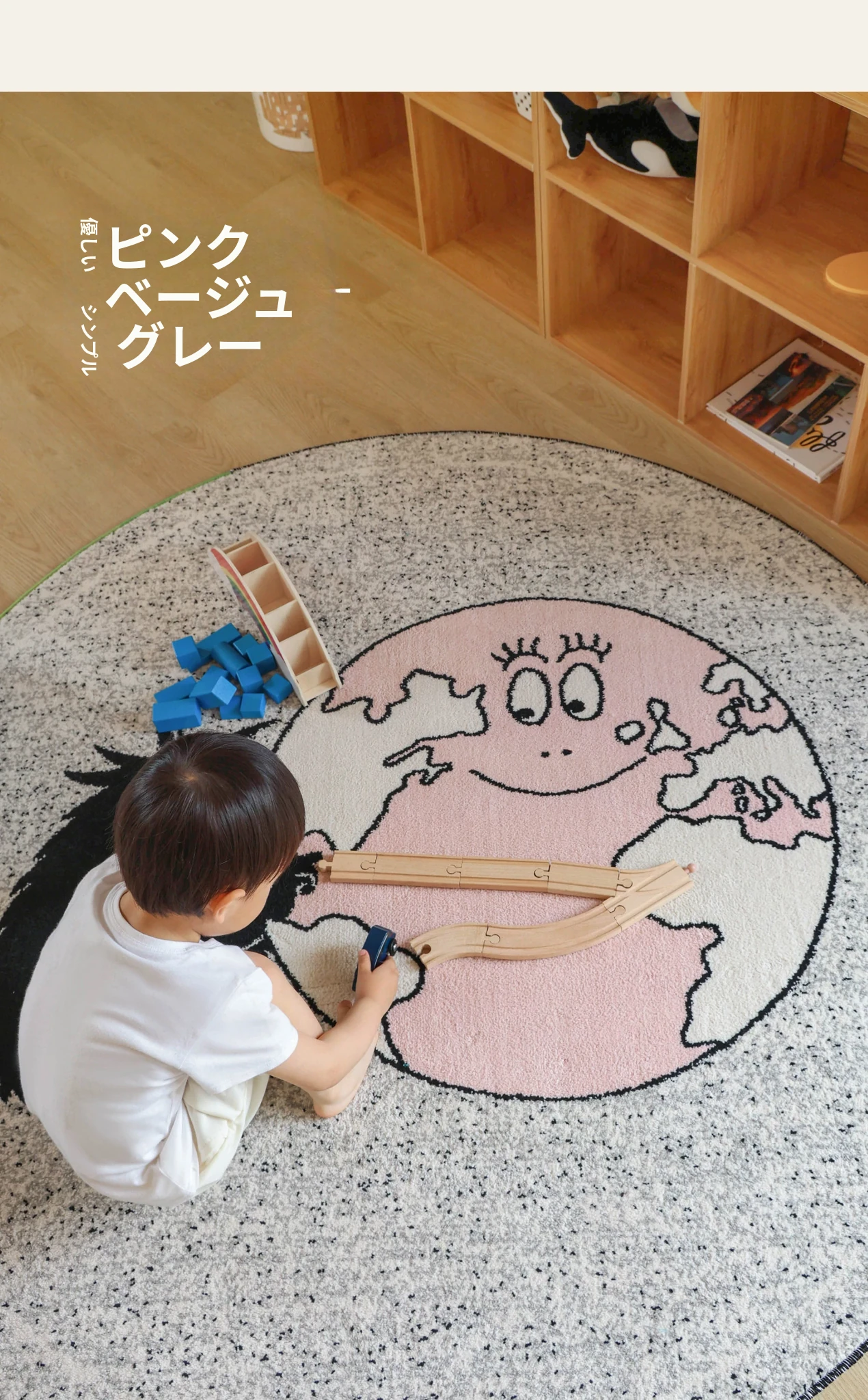 サイボーグバーバパパコラボ 無接着剤ラグ 子供部屋用 丸型リビング・寝室・ベッドサイドマット 青山の美しい宿での特別な空間を演出!