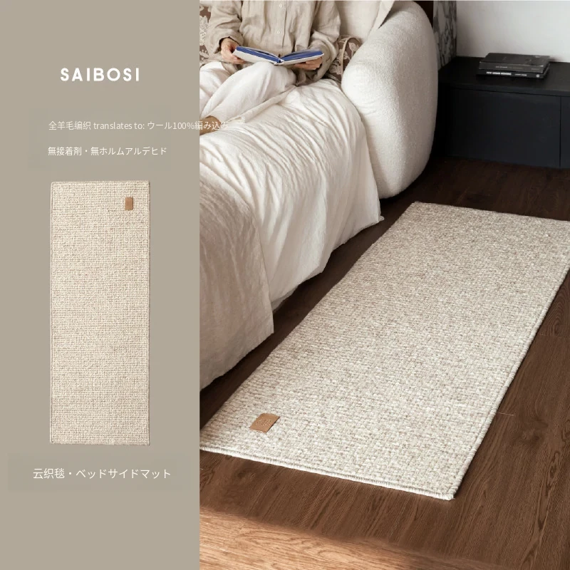 サイボス全羊毛無接着剤クラウド織りブランケット・ベッドサイドマット・ホルムアルデヒドフリー・寝室用ラグ・軽やかな高級感漂う窓辺・ベッドフット用ブランケット