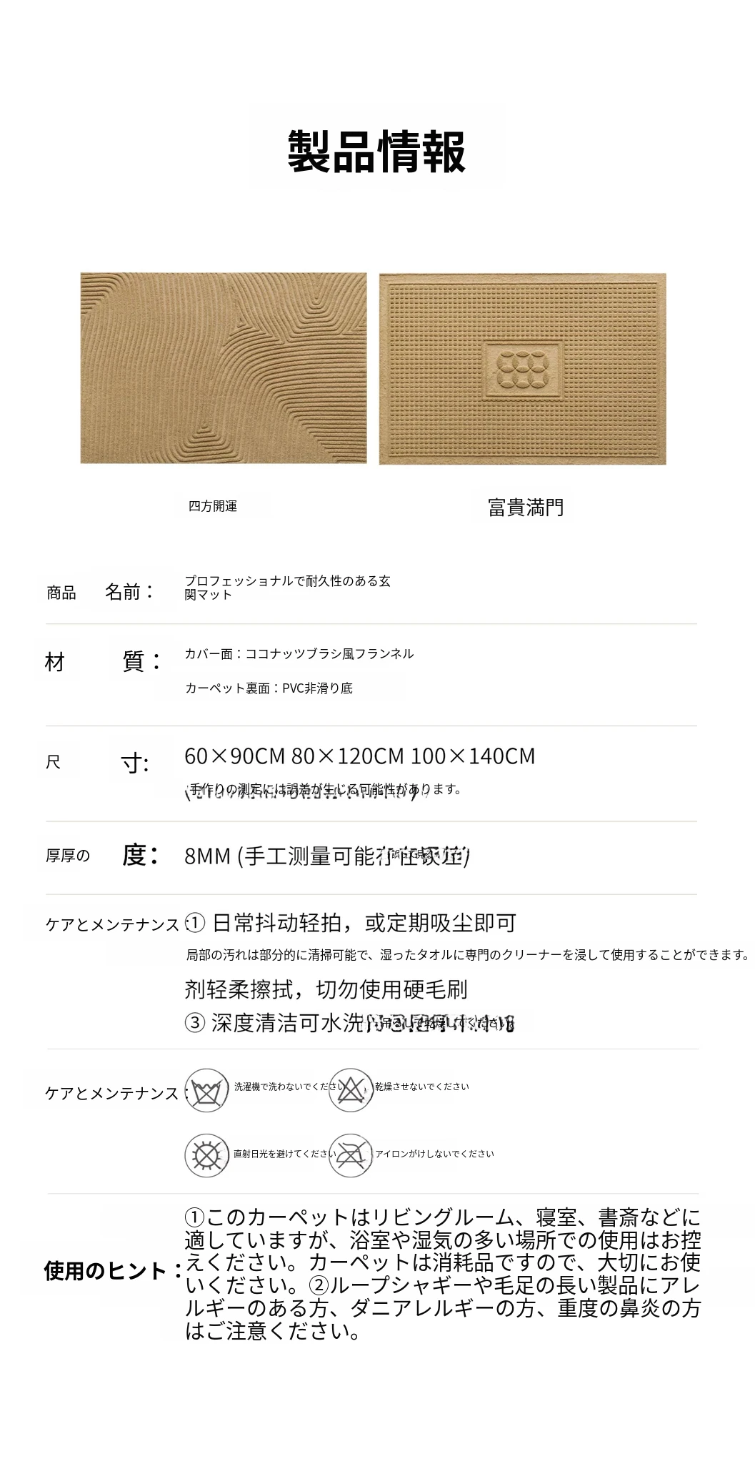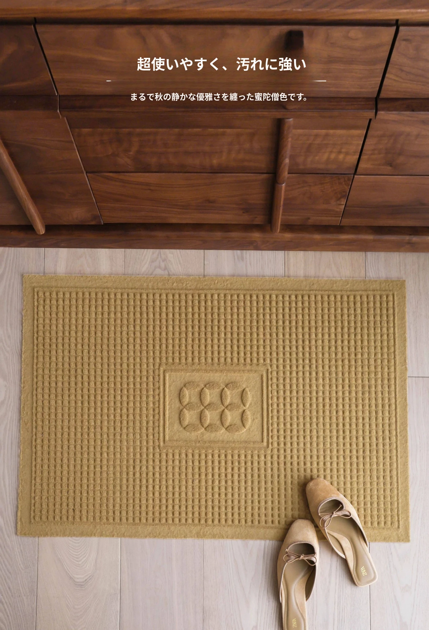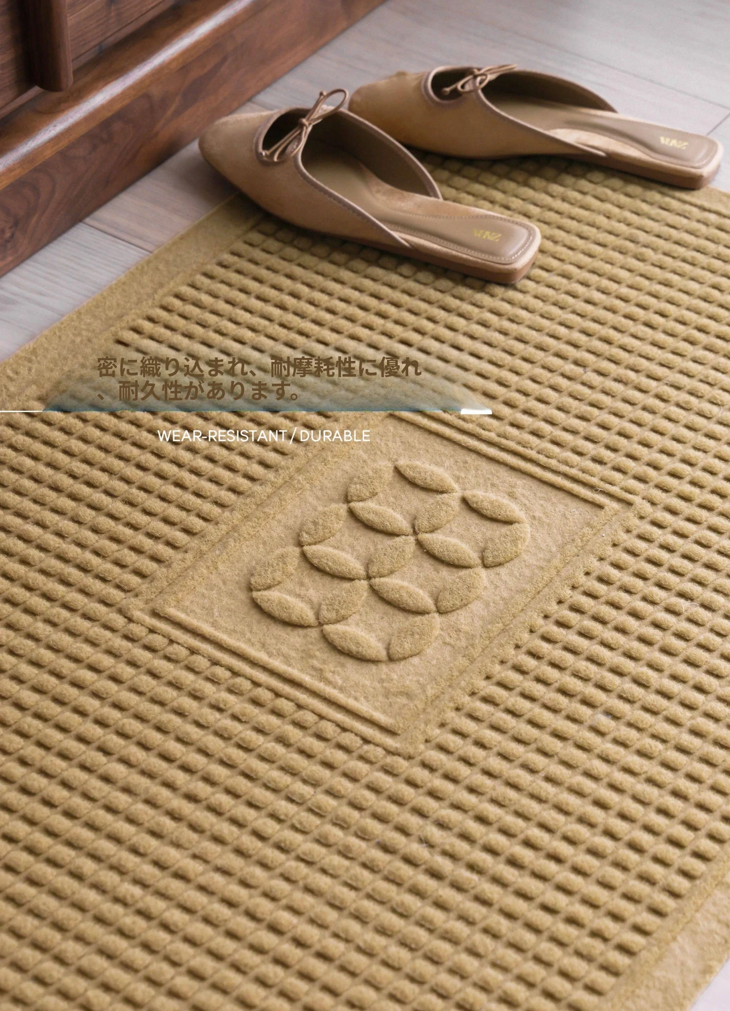 サイボス風ココナッツブラウン玄関マット - 汚れに強く滑り止め機能付き!家庭用に最適なカット可能なラグ、洗濯も簡単でいつでも清潔を保てます。あなたの家の入口をおしゃれに彩りましょう!