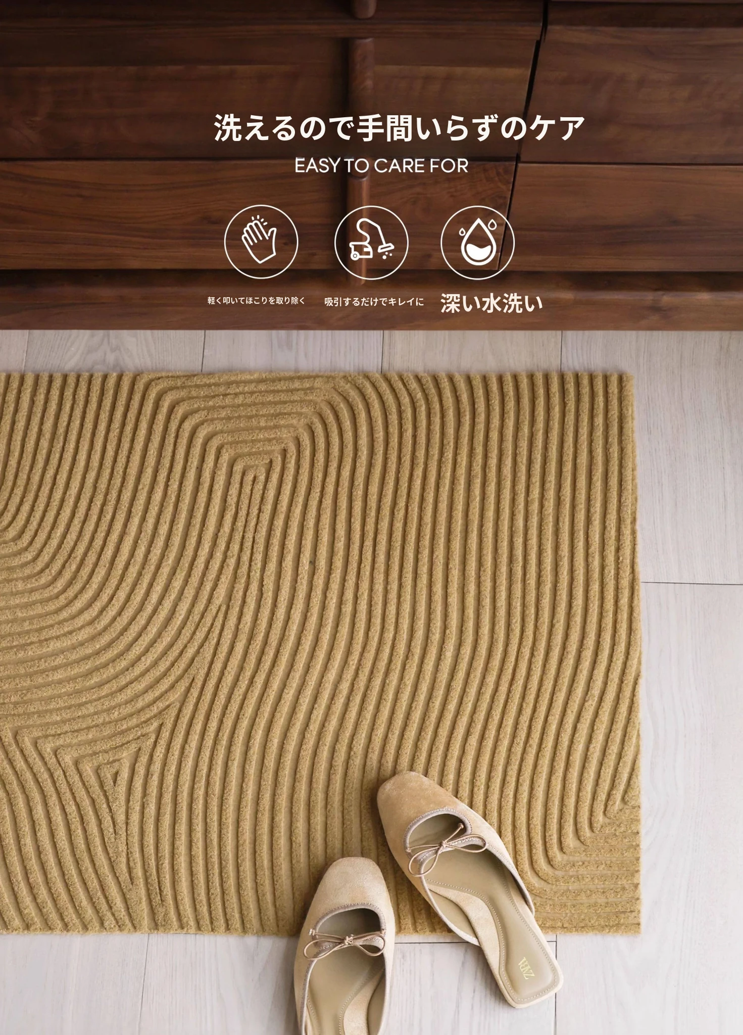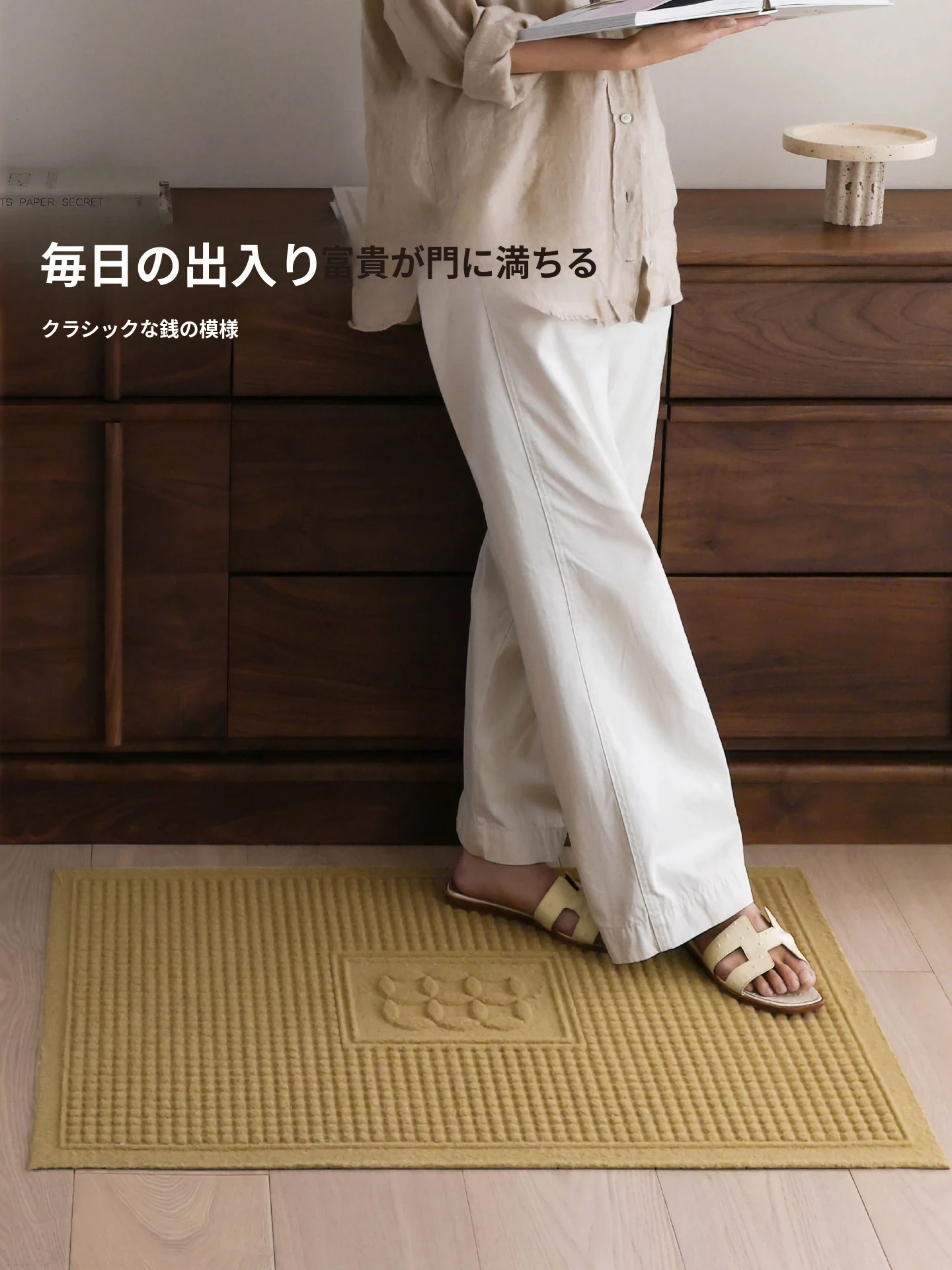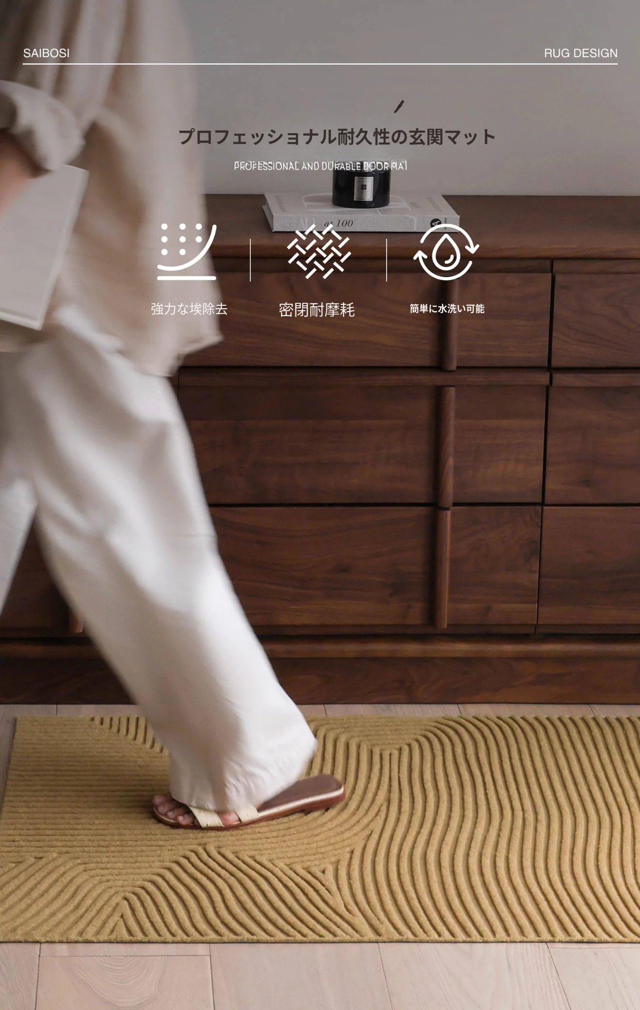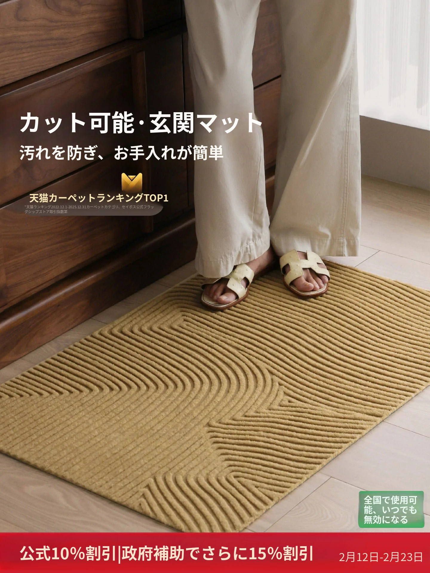サイボス風ココナッツブラウン玄関マット - 汚れに強く滑り止め機能付き!家庭用に最適なカット可能なラグ、洗濯も簡単でいつでも清潔を保てます。あなたの家の入口をおしゃれに彩りましょう!