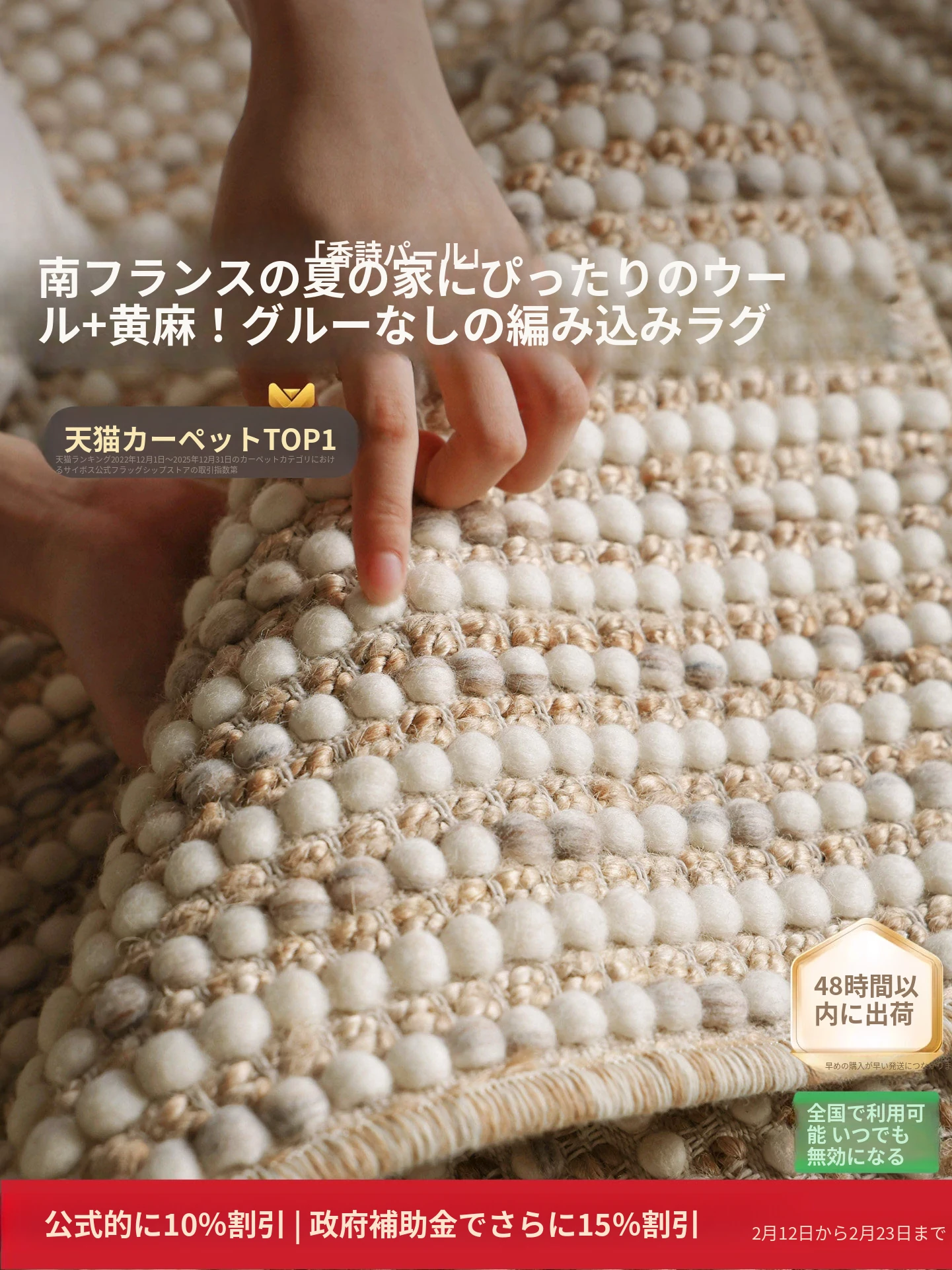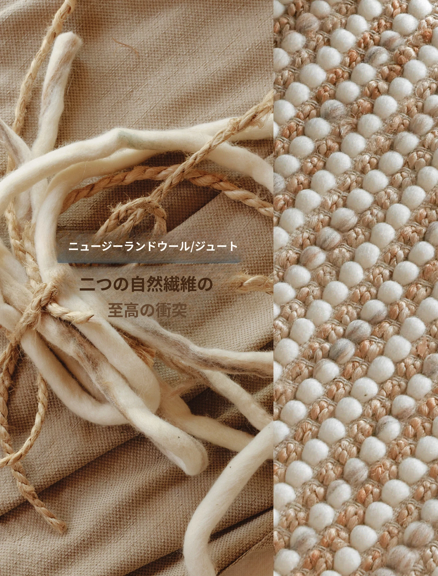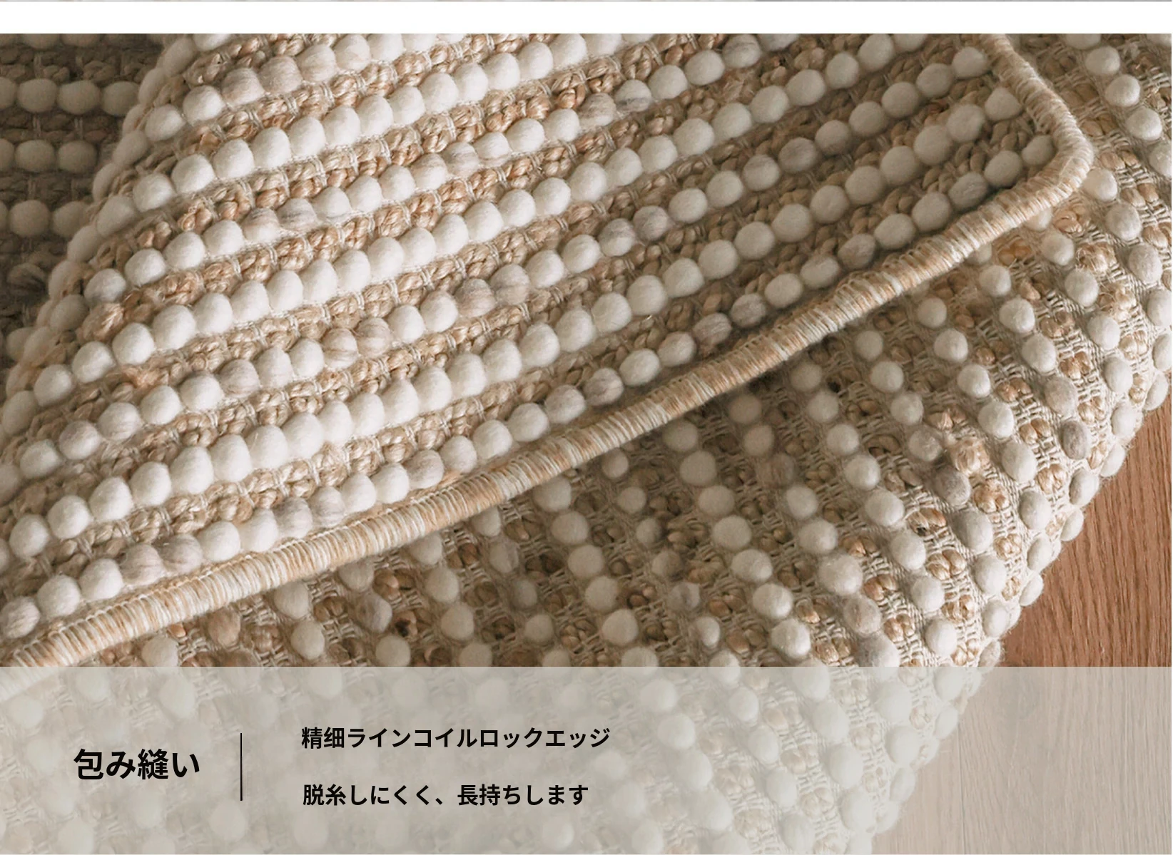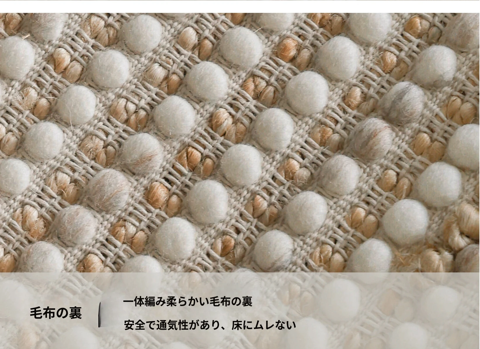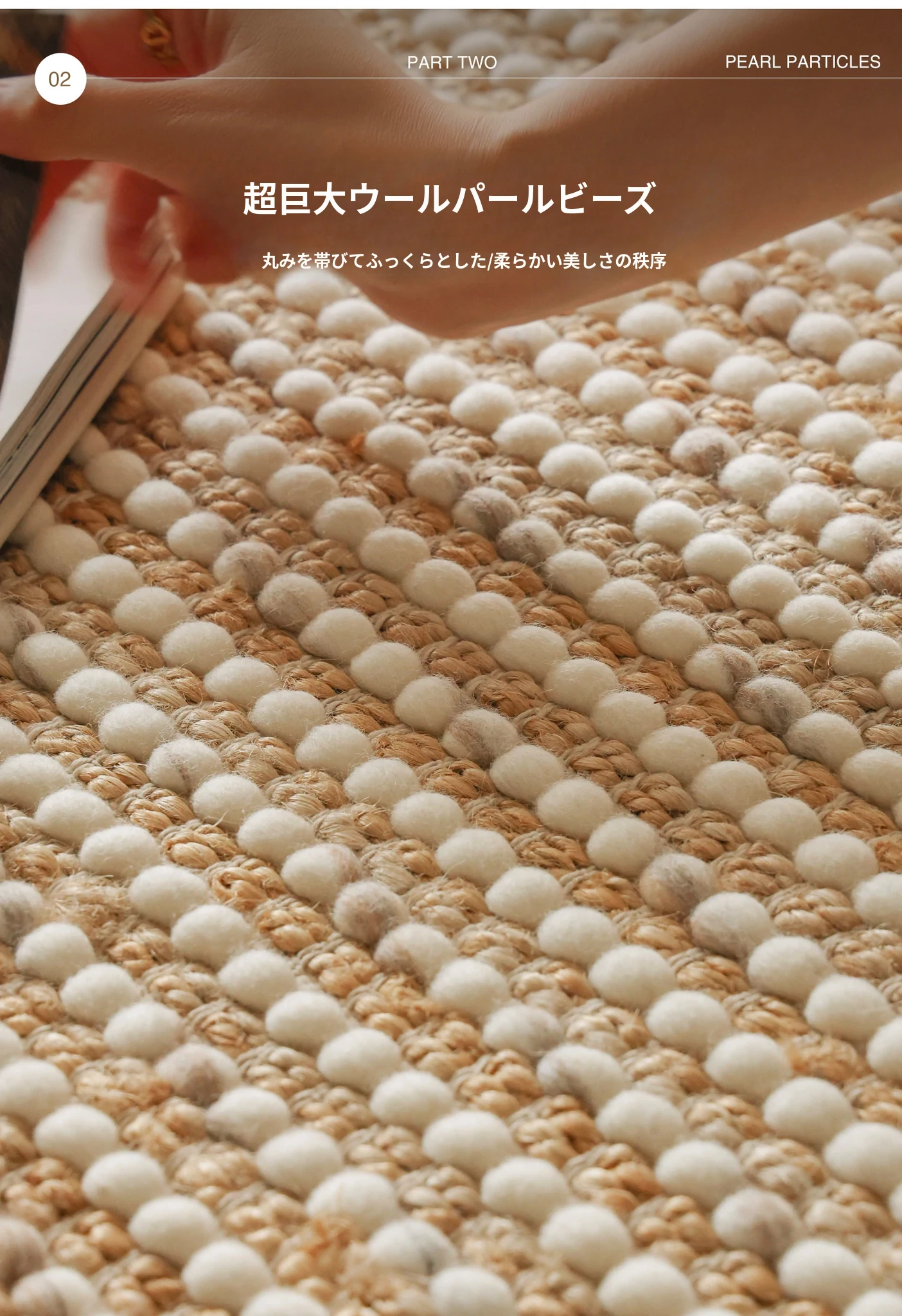 サイボス香りのパール輸入ウールジュートノンアドヒーシブ編みラグ - リビングルームにぴったりの軽やかなラグ、上質なソファや寝室に最適な高級感を演出!