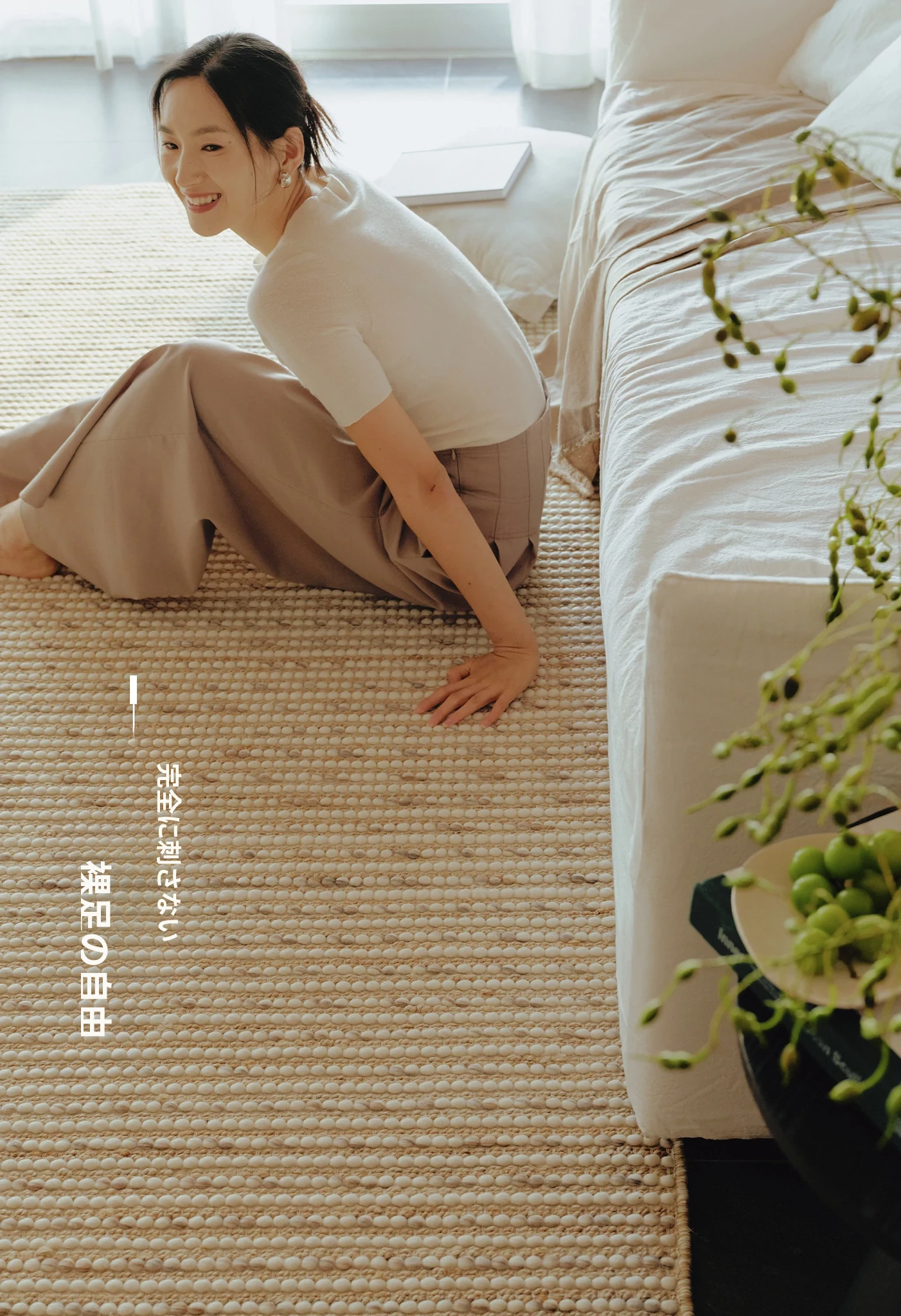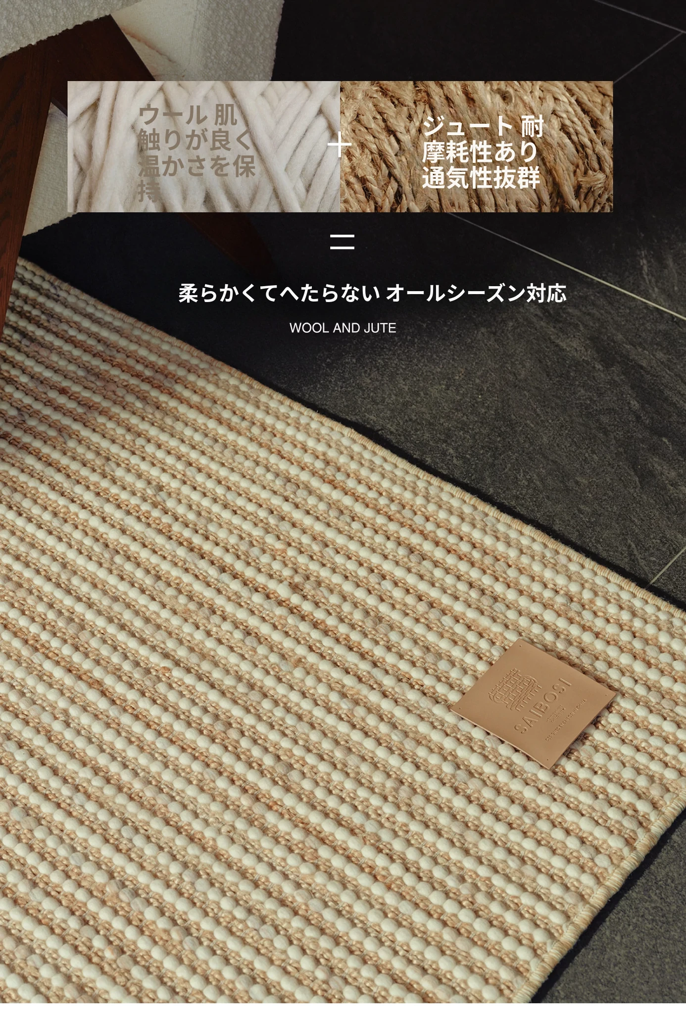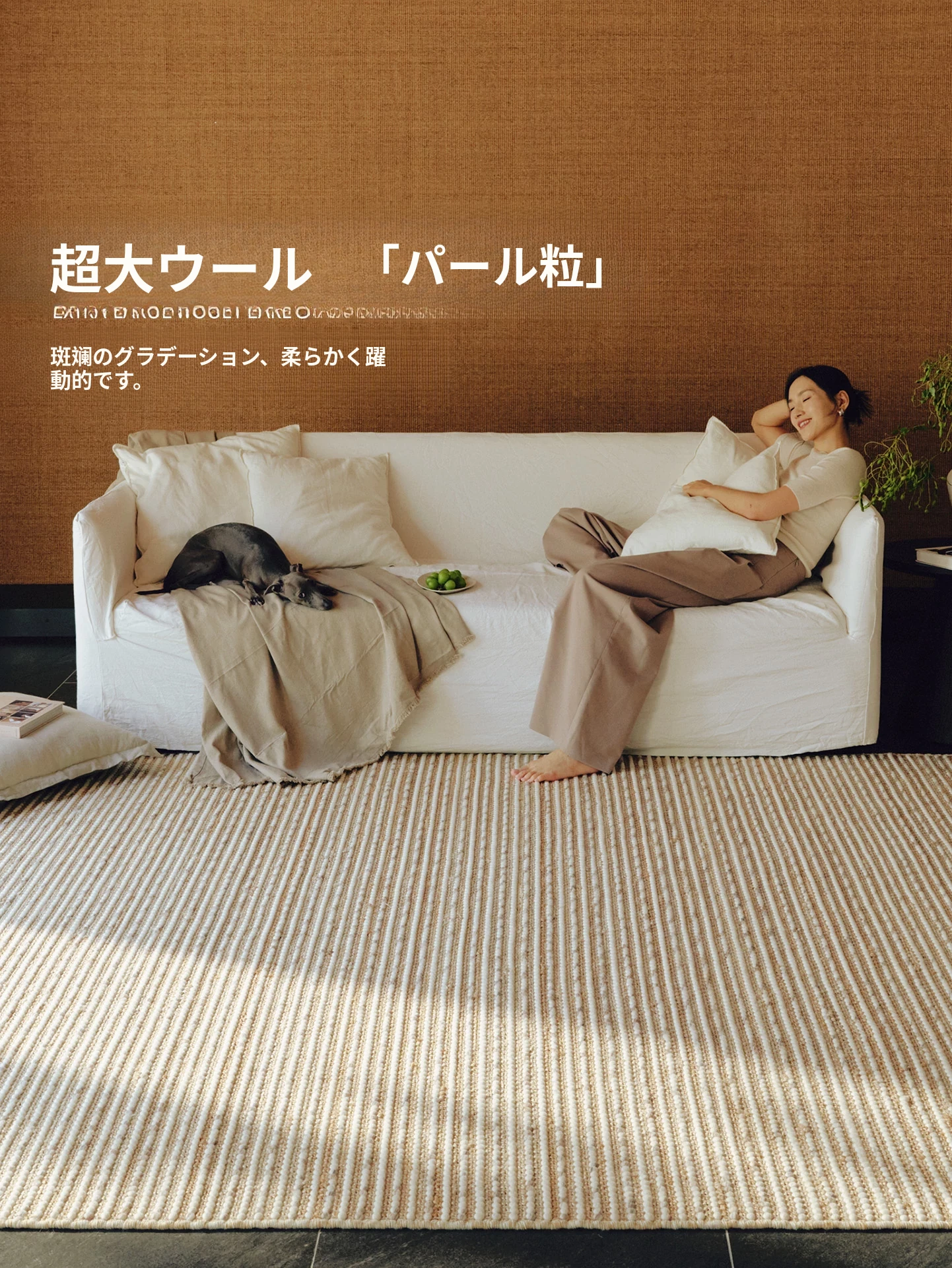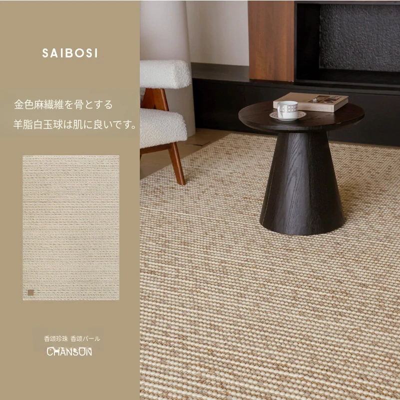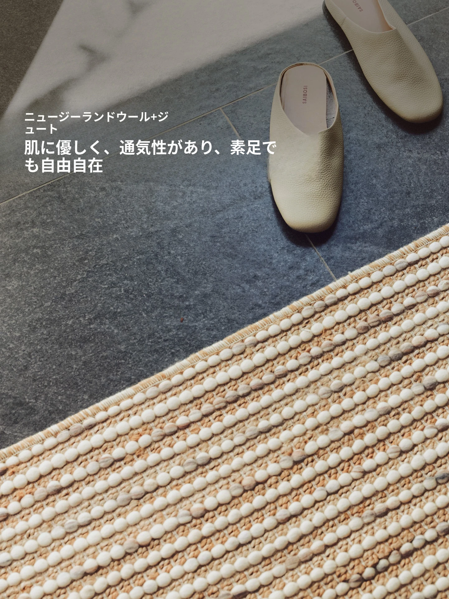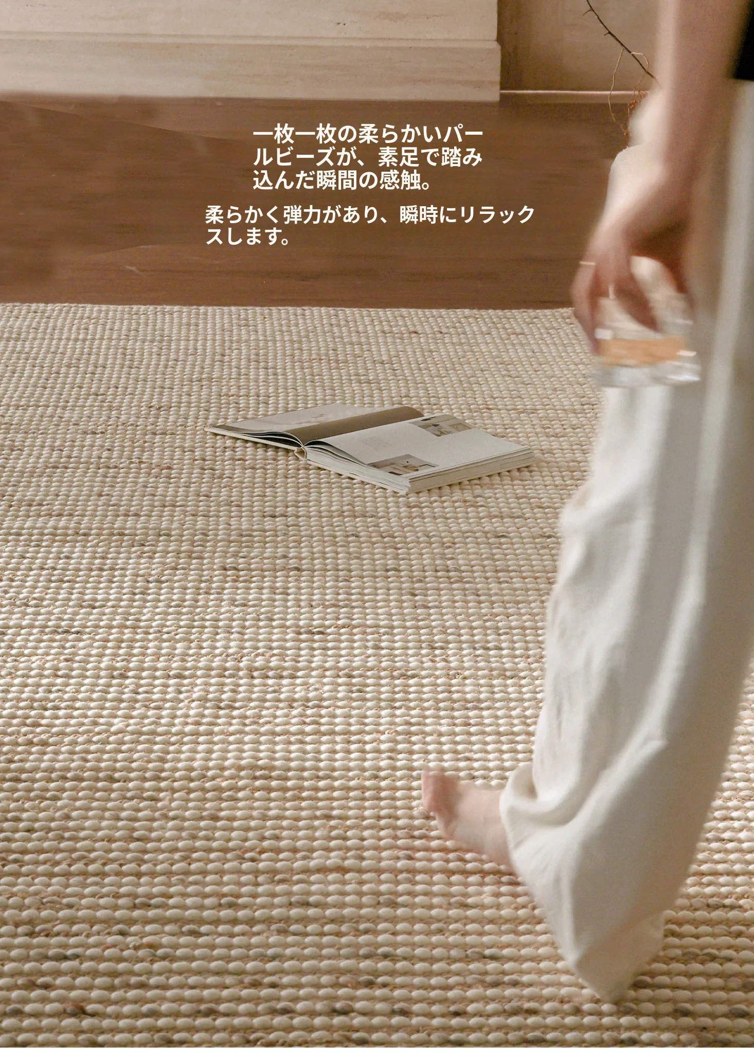 サイボス香りのパール輸入ウールジュートノンアドヒーシブ編みラグ - リビングルームにぴったりの軽やかなラグ、上質なソファや寝室に最適な高級感を演出!