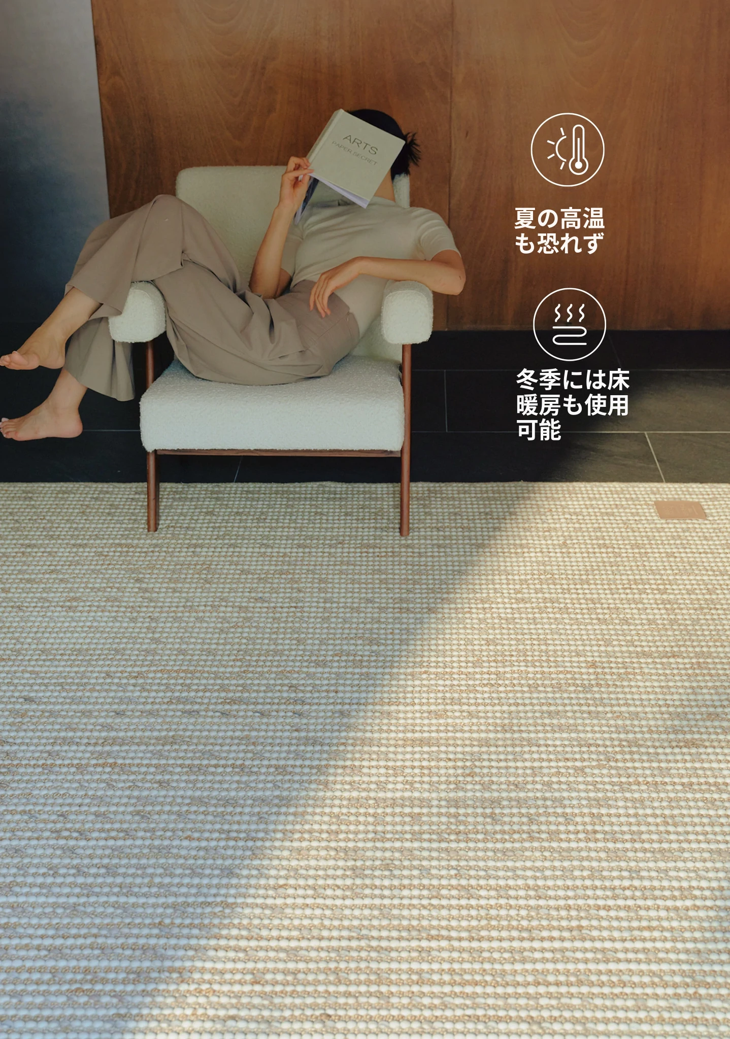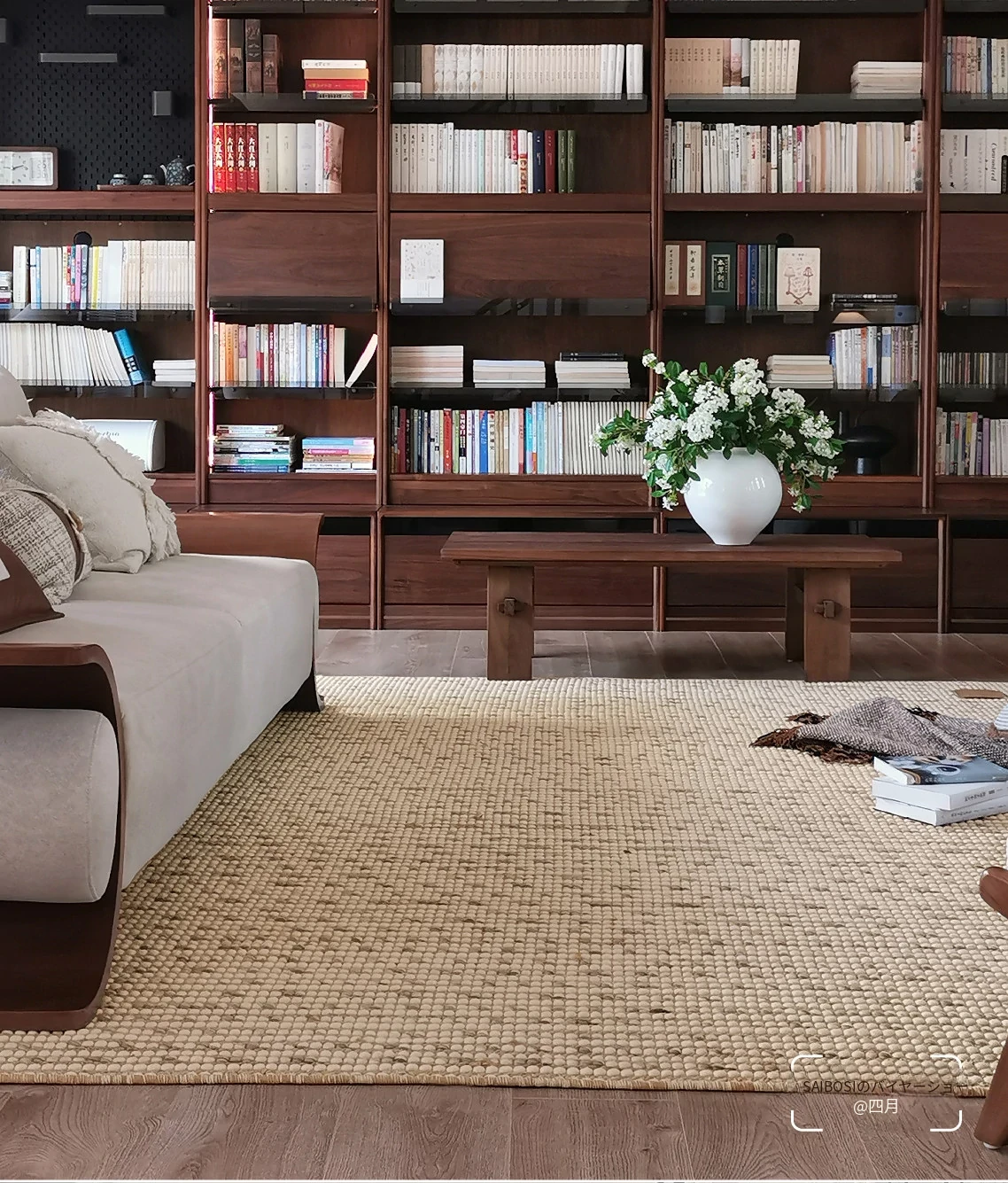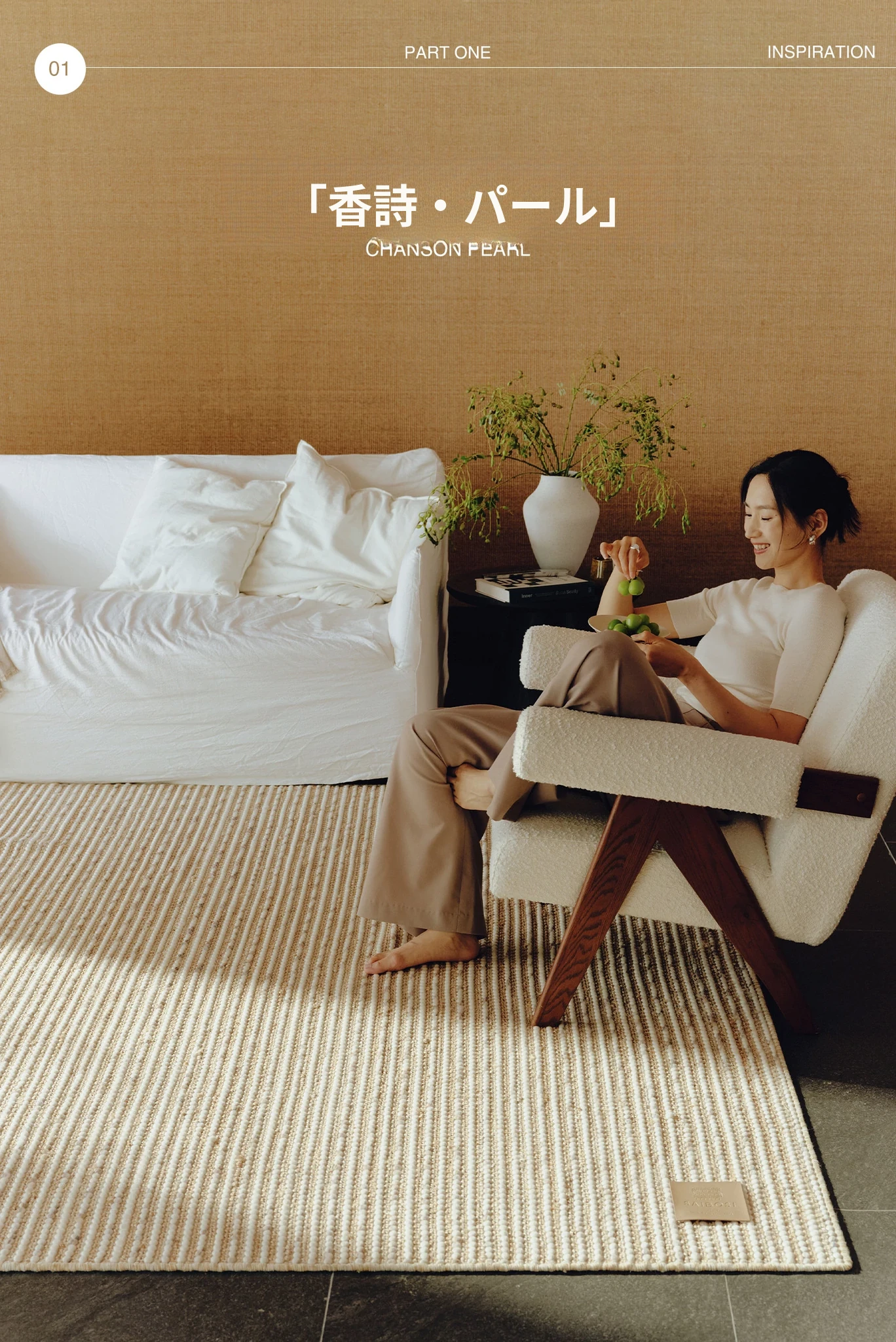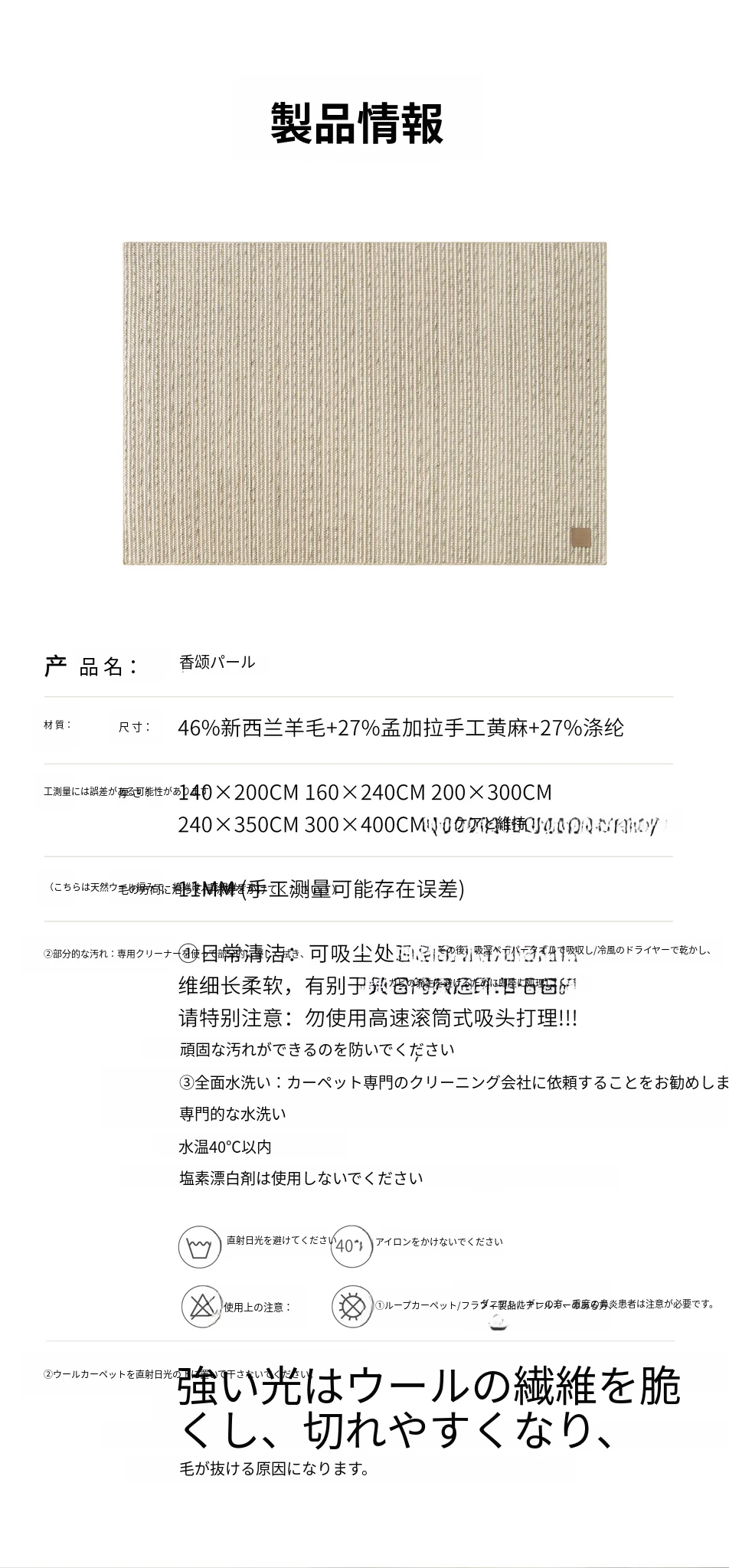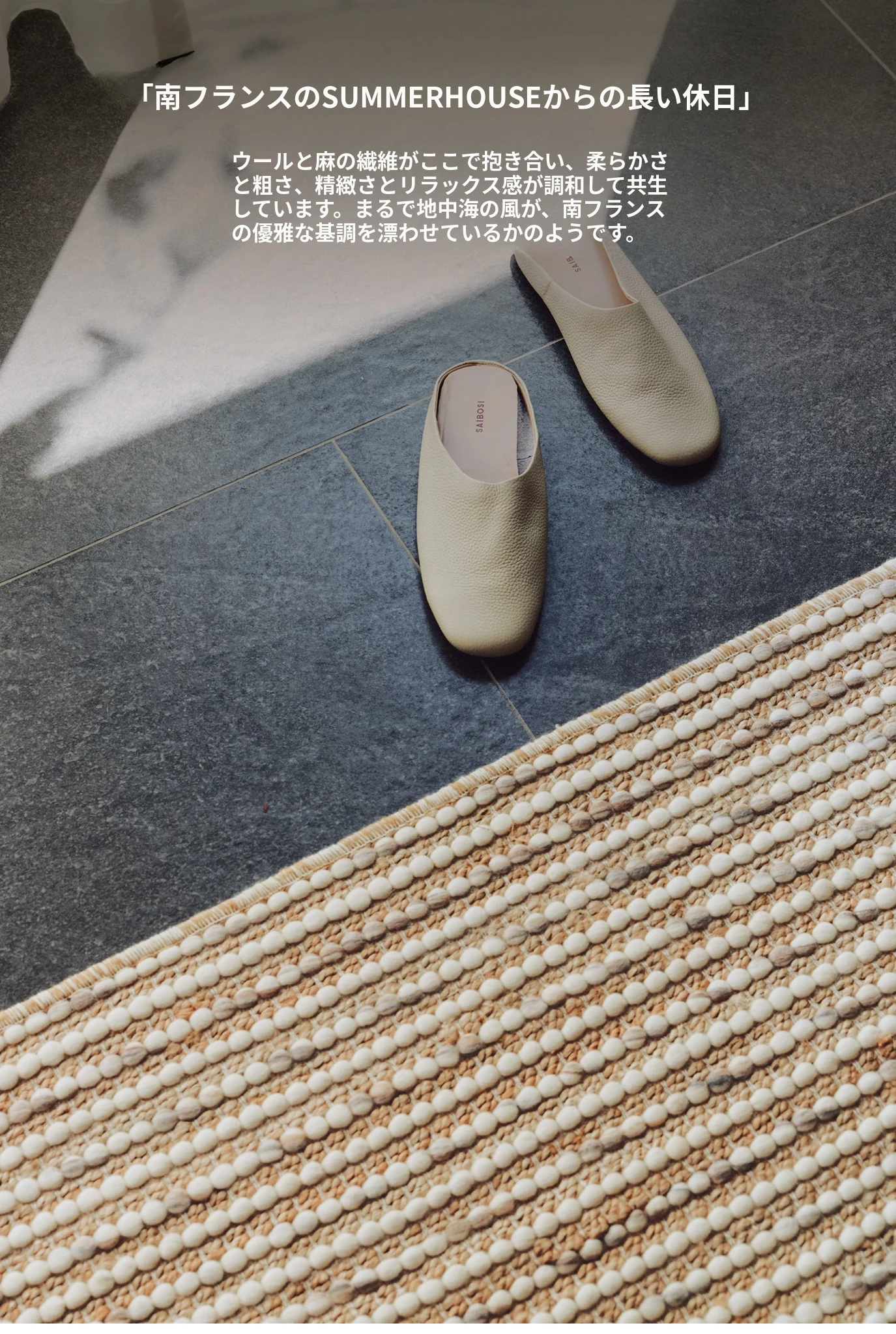 サイボス香りのパール輸入ウールジュートノンアドヒーシブ編みラグ - リビングルームにぴったりの軽やかなラグ、上質なソファや寝室に最適な高級感を演出!