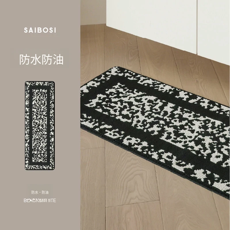 セイポス 洗えるキッチンマット 防水・吸油・汚れに強い 滑り止め付き シンプルでラグジュアリーなデザイン 高級感あふれるロングカーペット