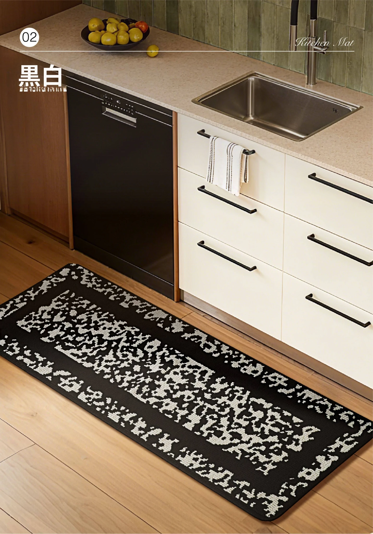 キッチンマット (黒白)