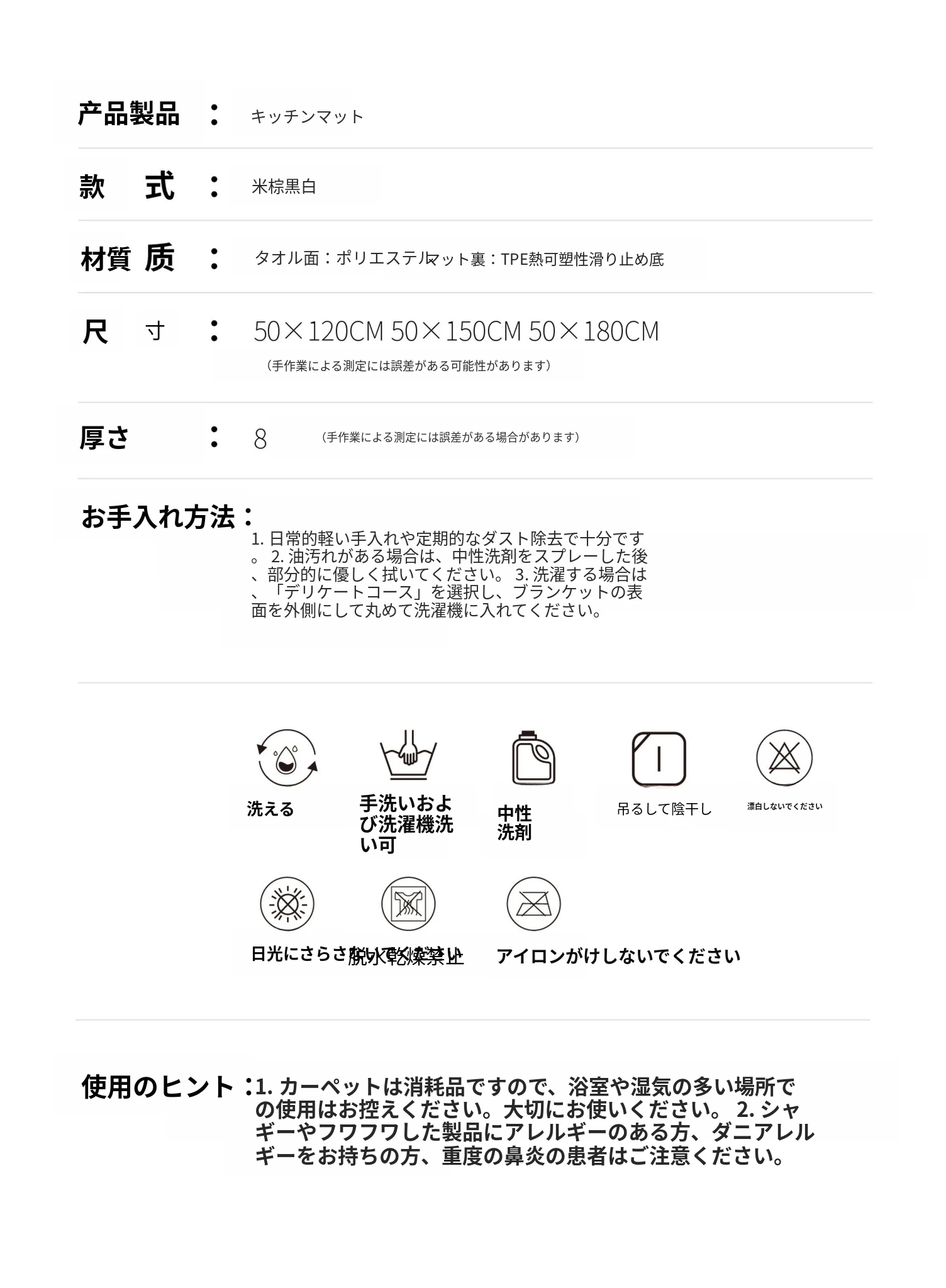 50×180CM