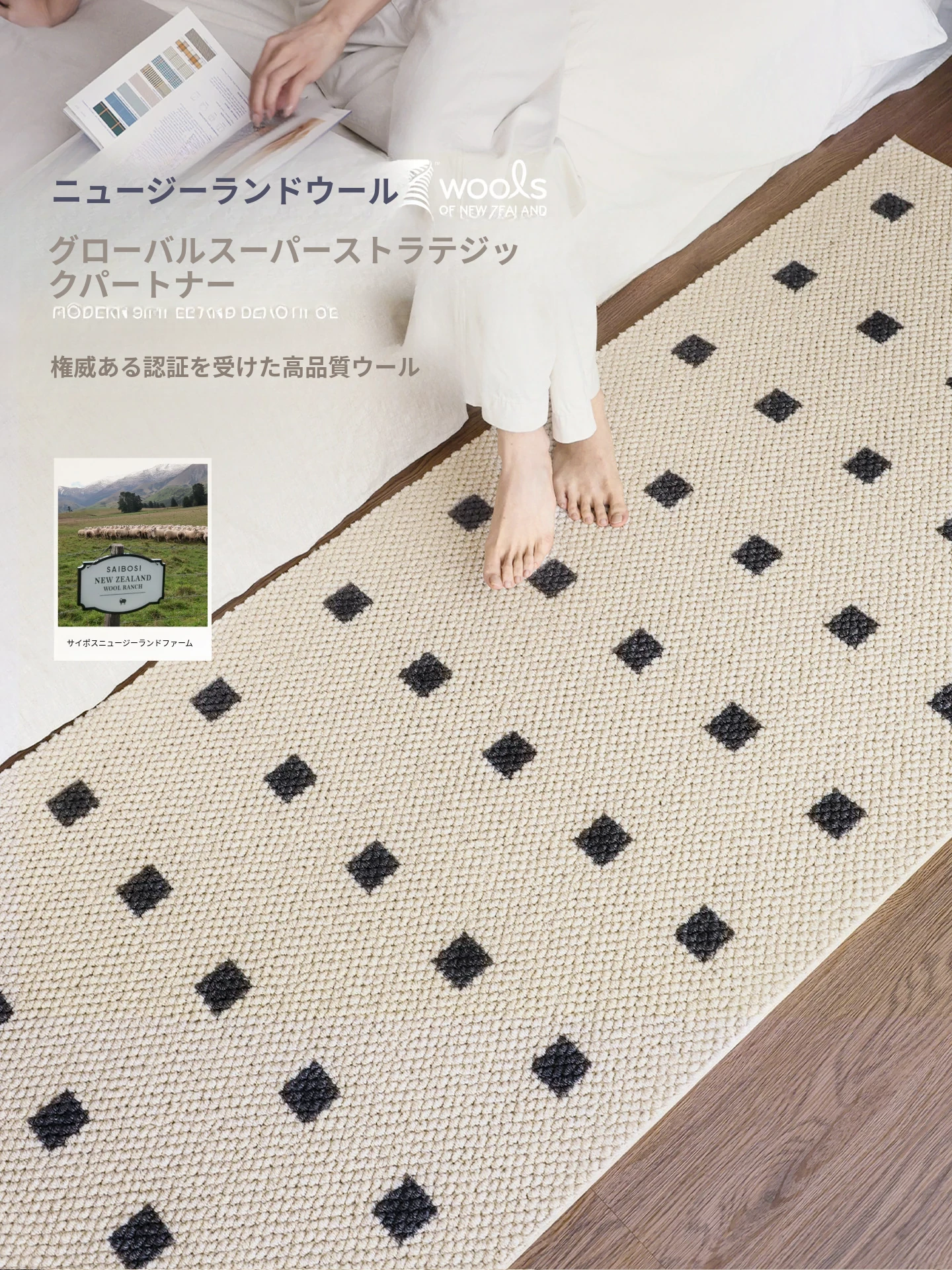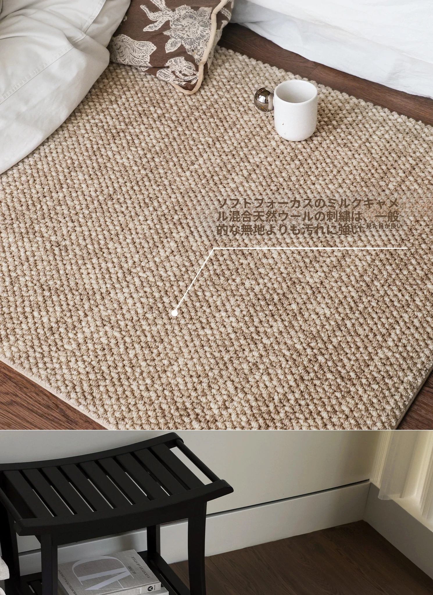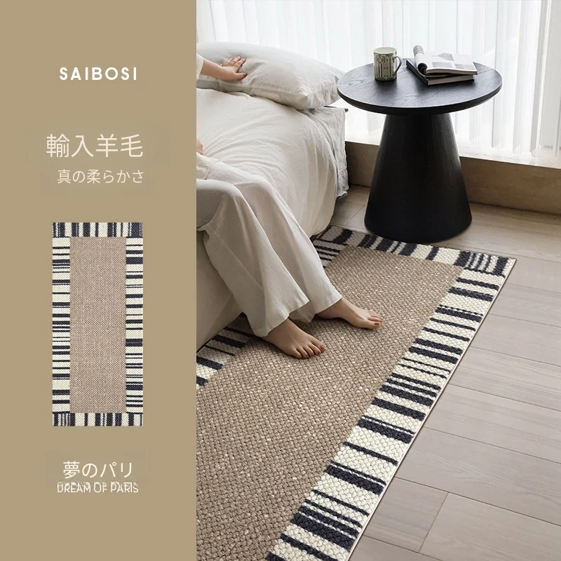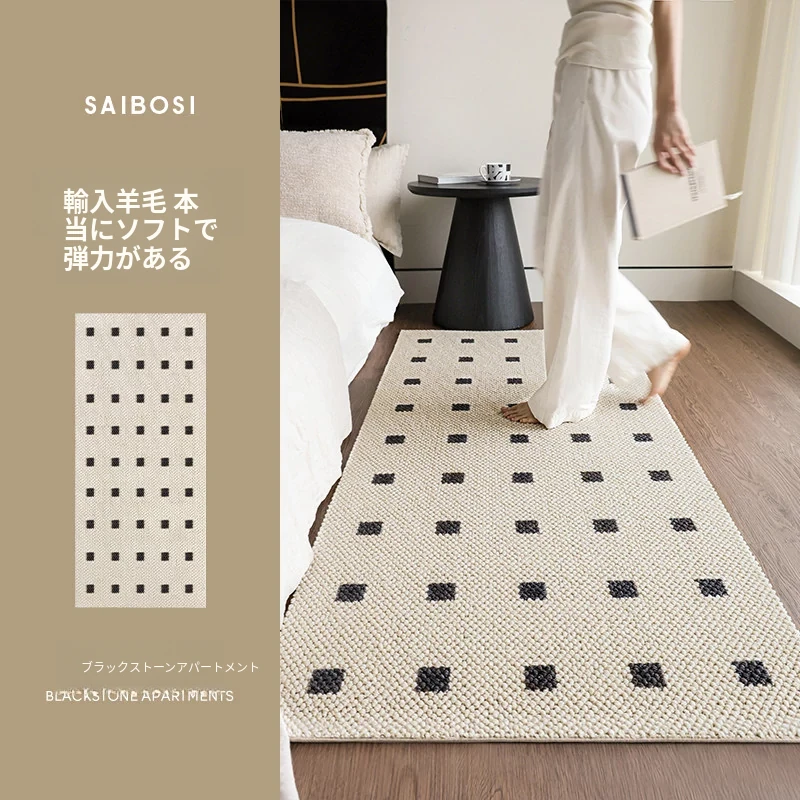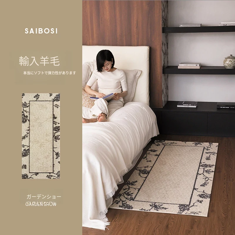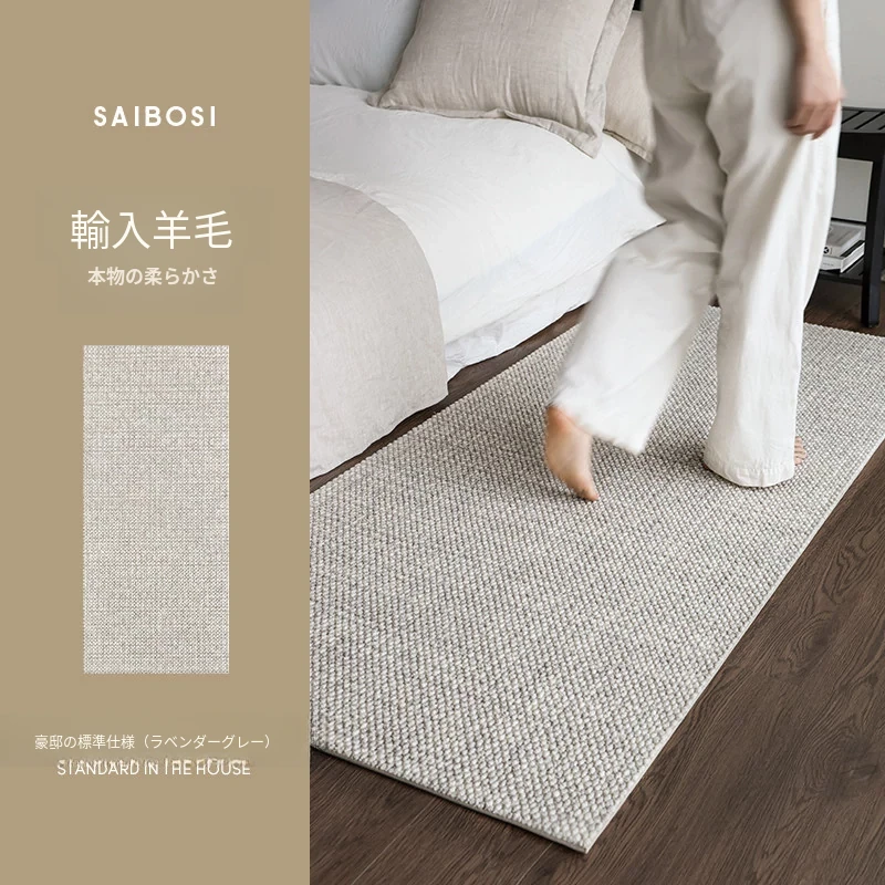 サイボス ベッドサイドカーペット 高級感溢れるウールラグ 寝室・リビングにぴったり!おしゃれなベッドフットマットで、青山の美宿のような洗練された空間を演出します。