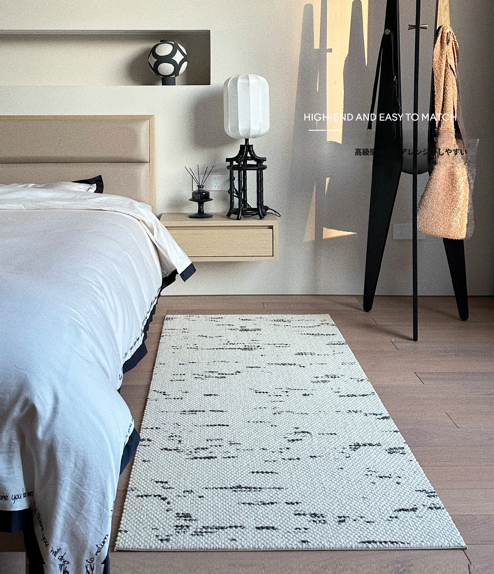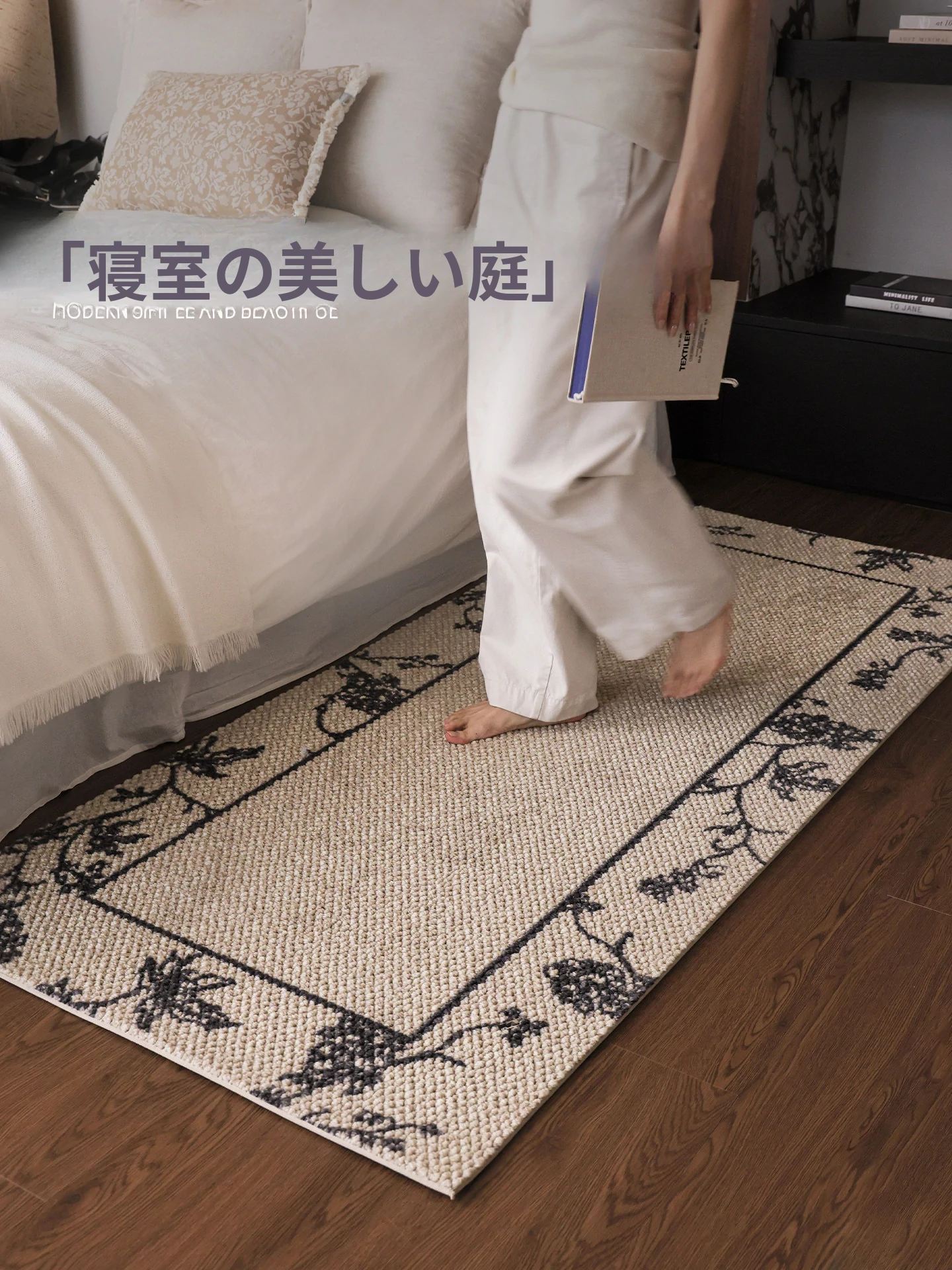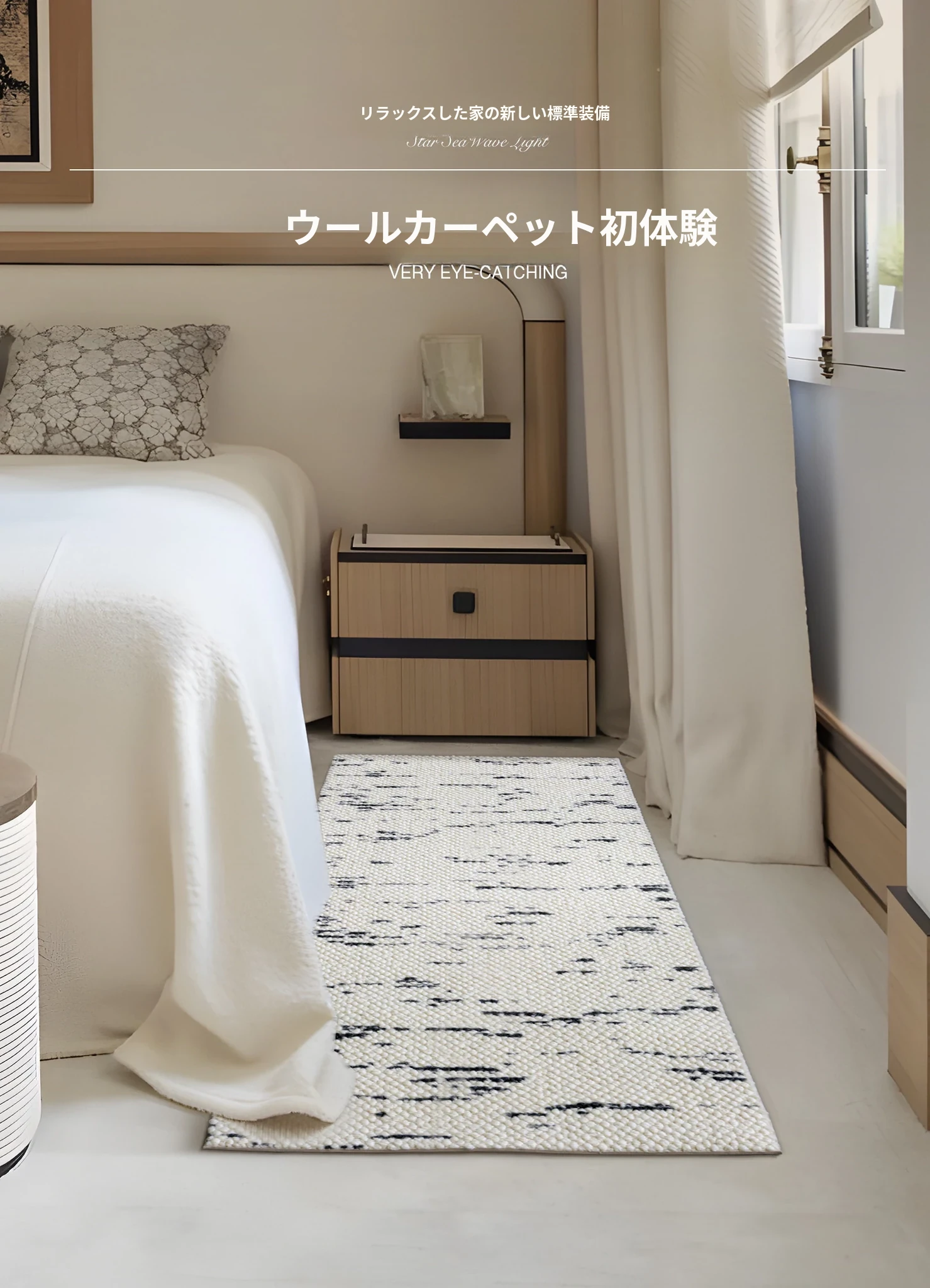 サイボス ベッドサイドカーペット 高級感溢れるウールラグ 寝室・リビングにぴったり!おしゃれなベッドフットマットで、青山の美宿のような洗練された空間を演出します。
