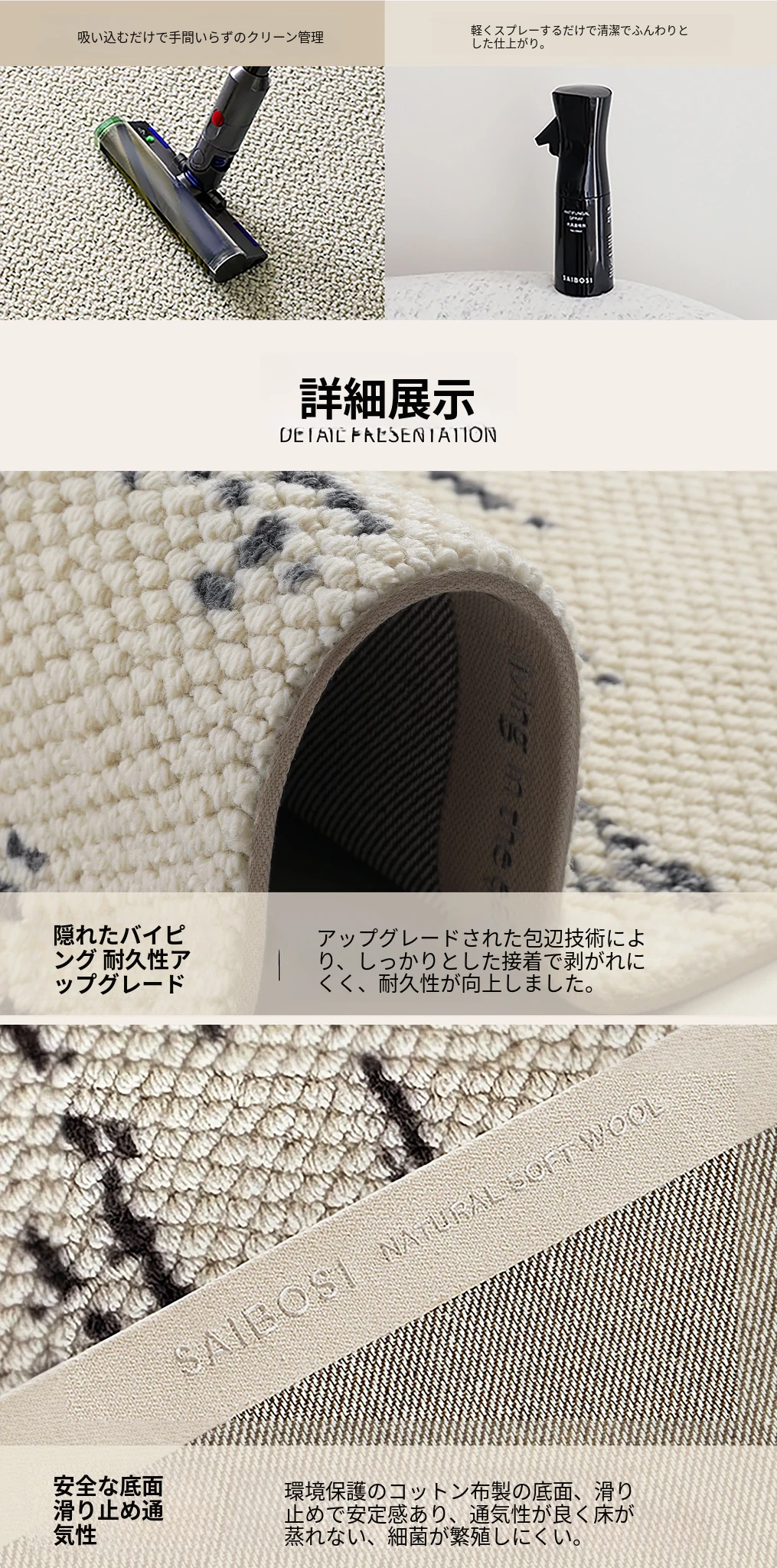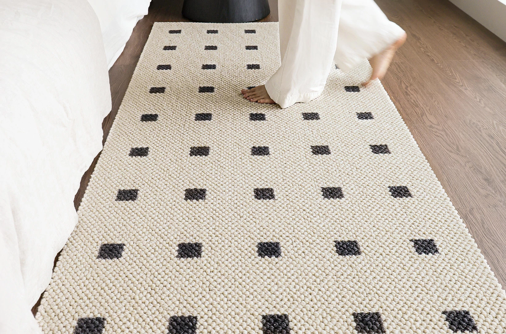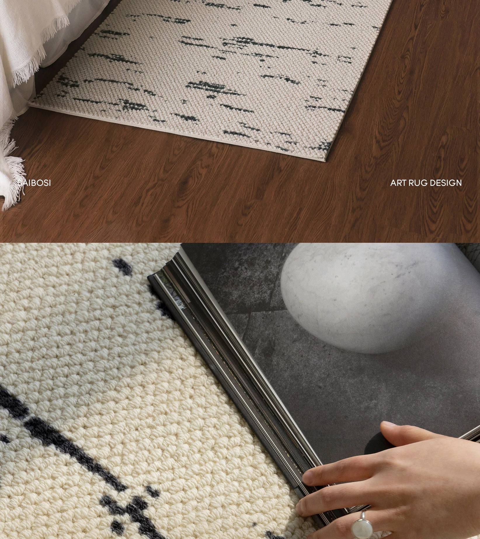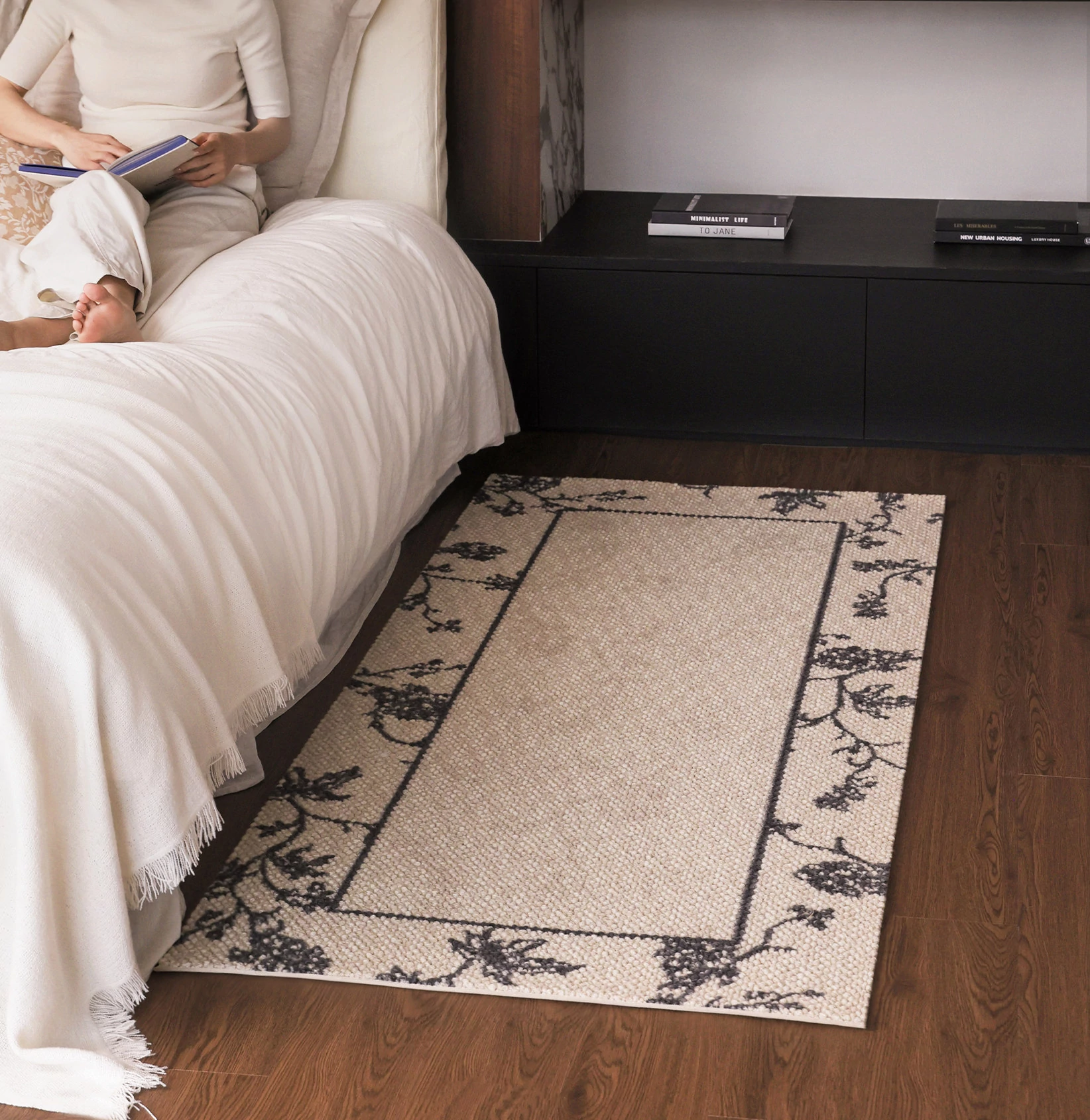 サイボス ベッドサイドカーペット 高級感溢れるウールラグ 寝室・リビングにぴったり!おしゃれなベッドフットマットで、青山の美宿のような洗練された空間を演出します。