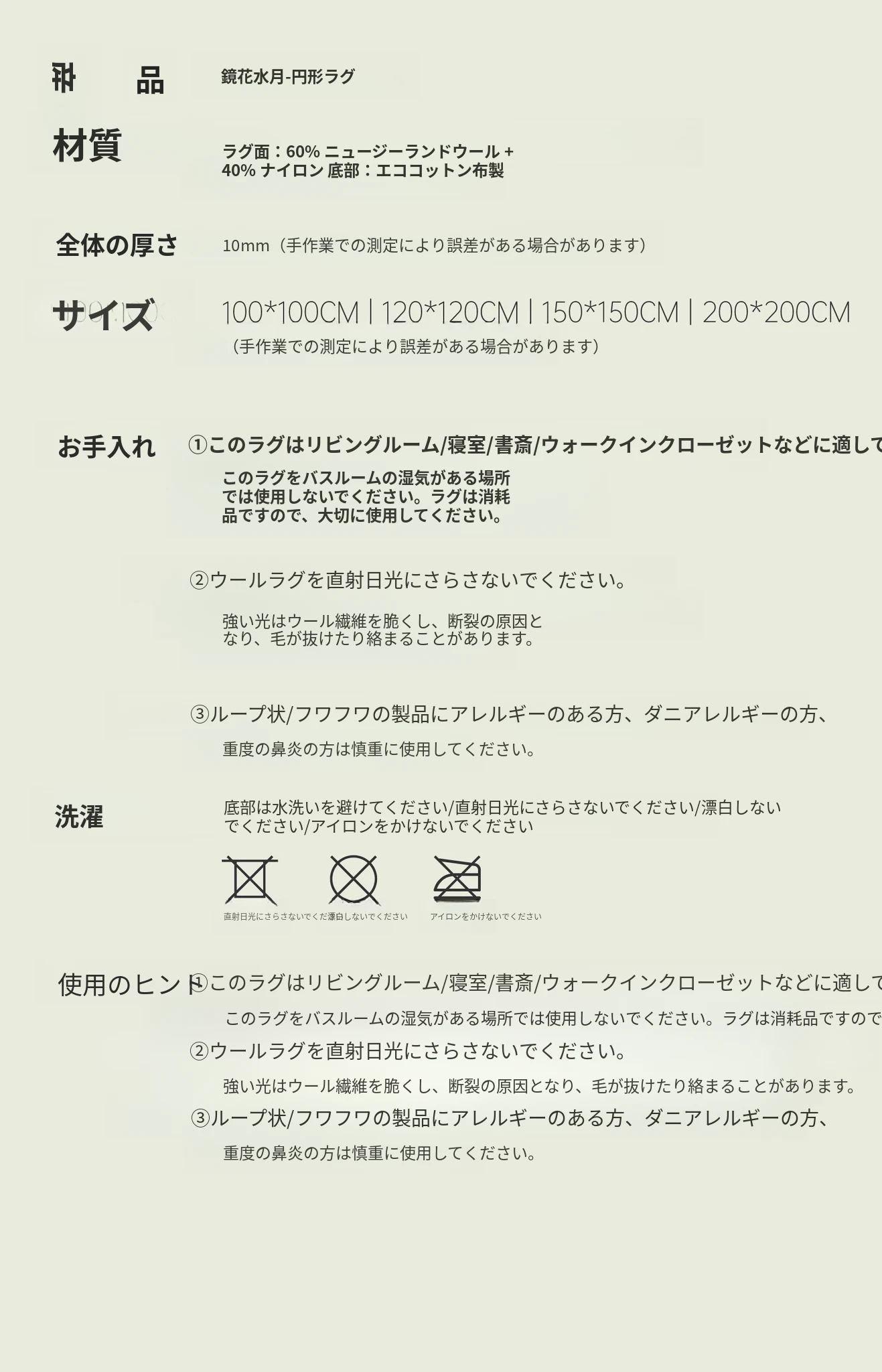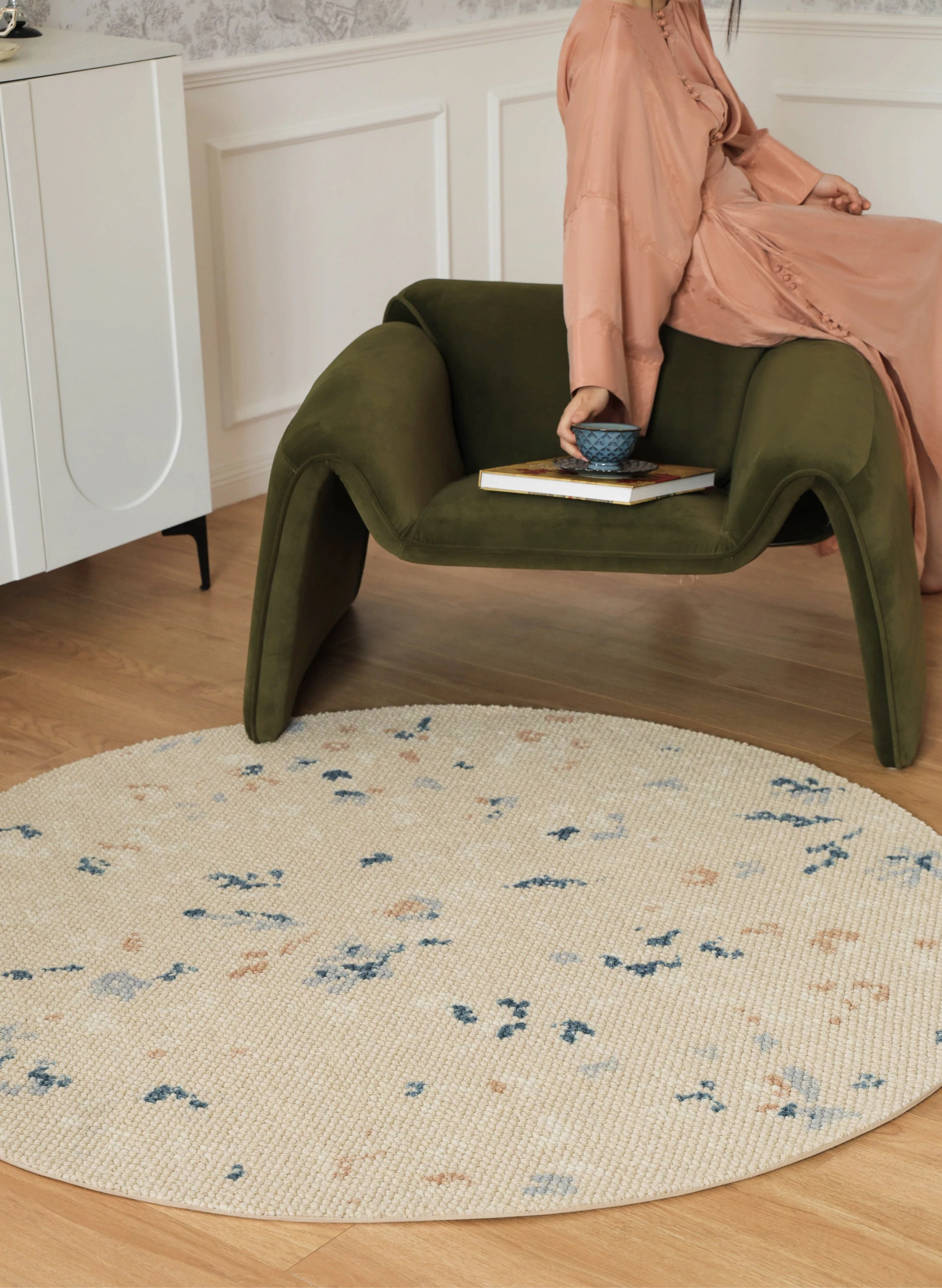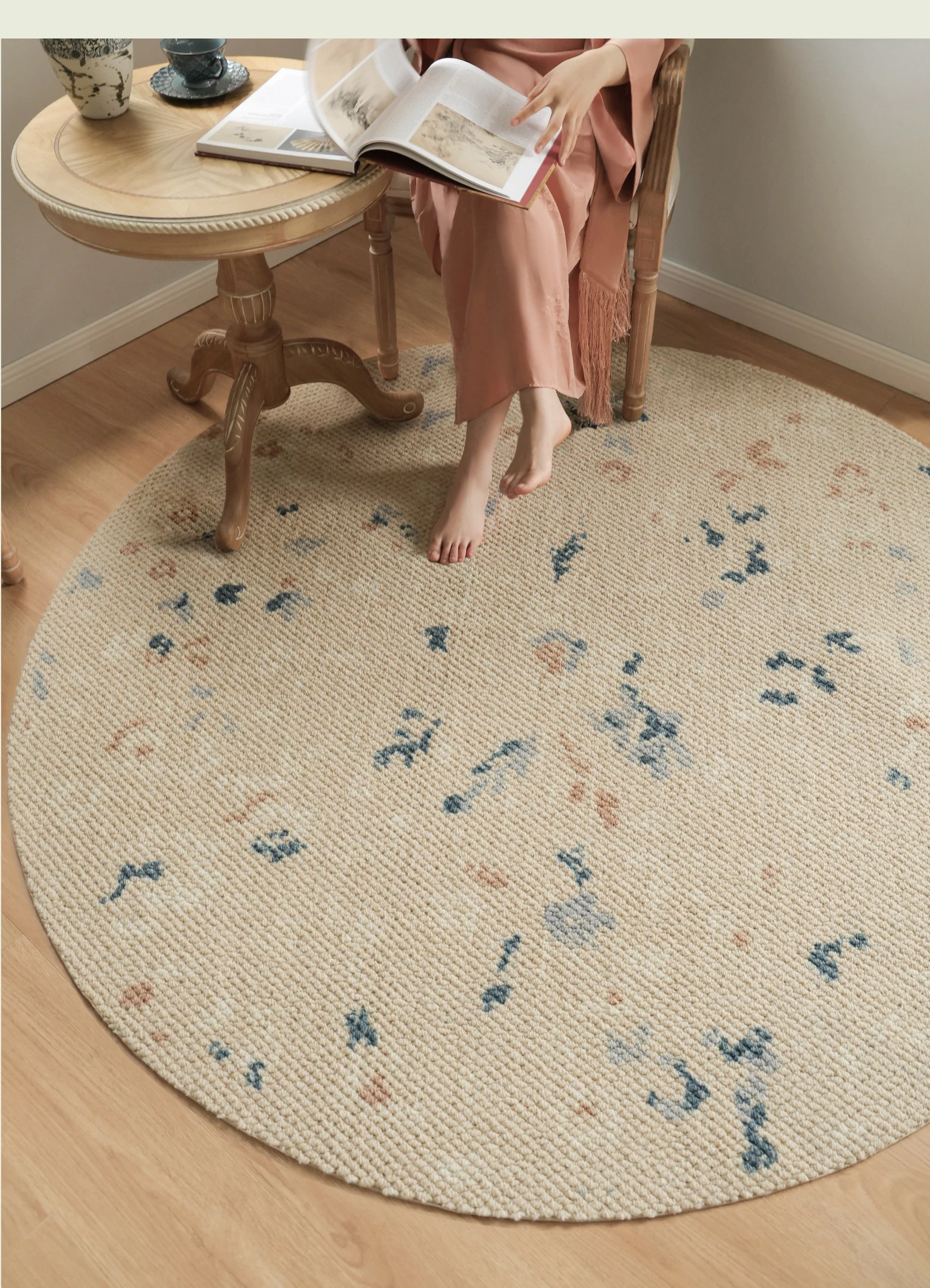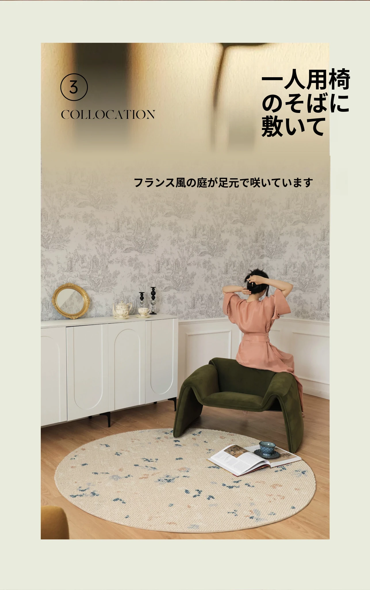 サイボス ミラー フラワー 水月 カーペット 羊毛 軽やかな フランス風 クローゼット 丸形 寝室 ベッドサイド カーペット リビング で 高級感 あふれる空間を演出!