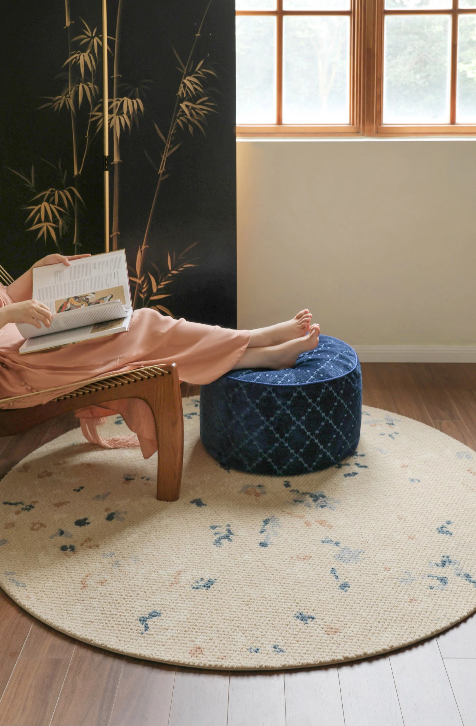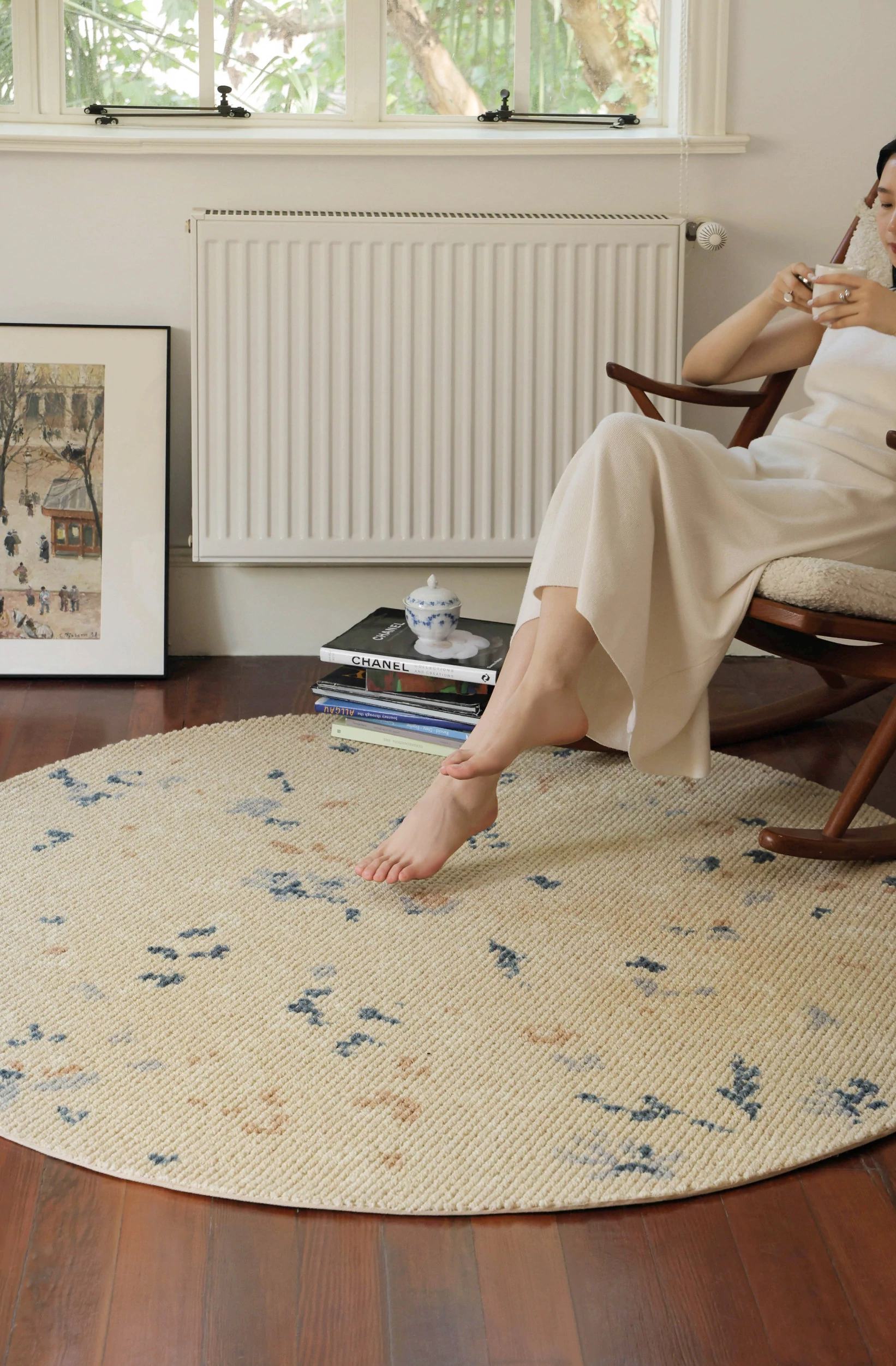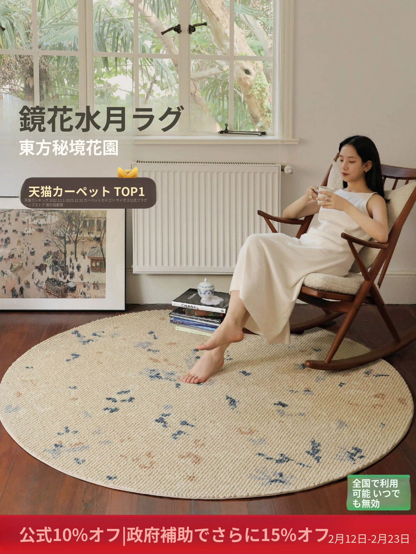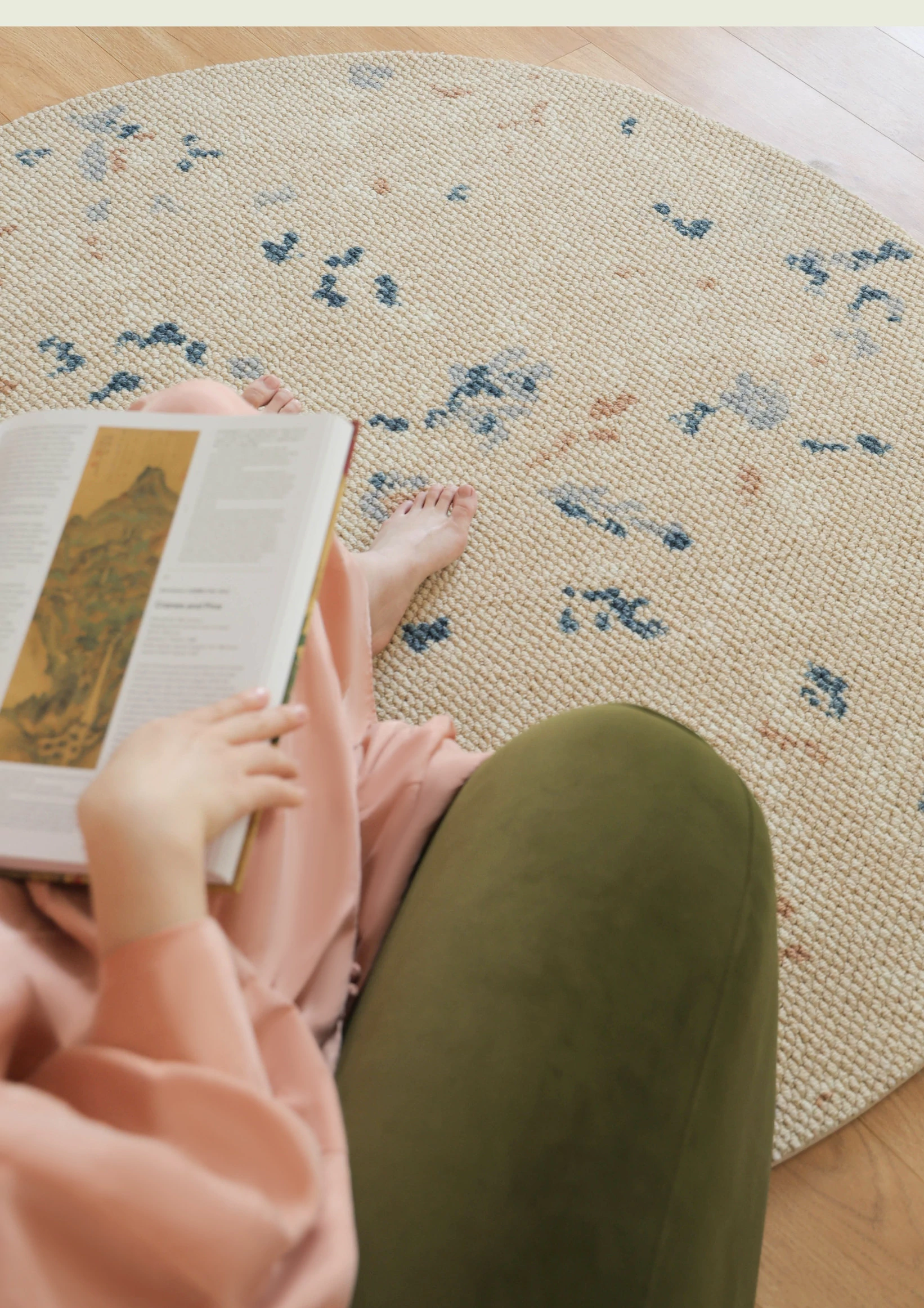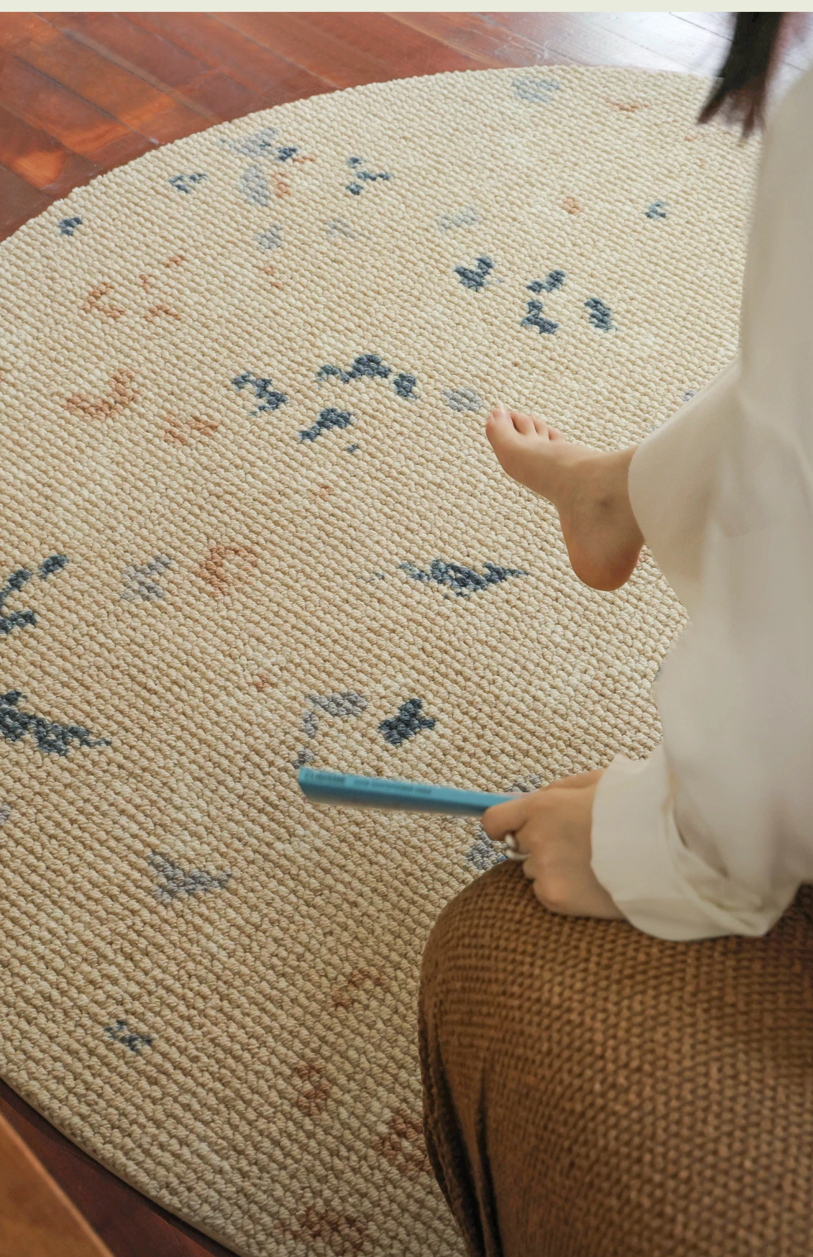 サイボス ミラー フラワー 水月 カーペット 羊毛 軽やかな フランス風 クローゼット 丸形 寝室 ベッドサイド カーペット リビング で 高級感 あふれる空間を演出!