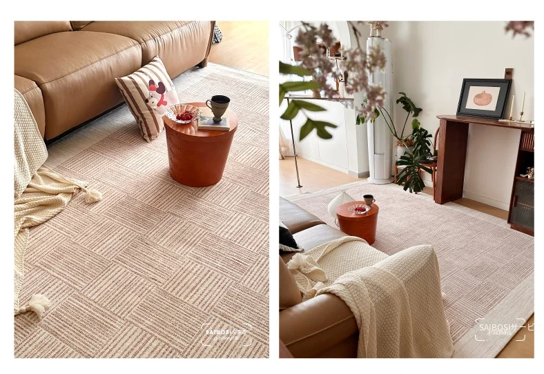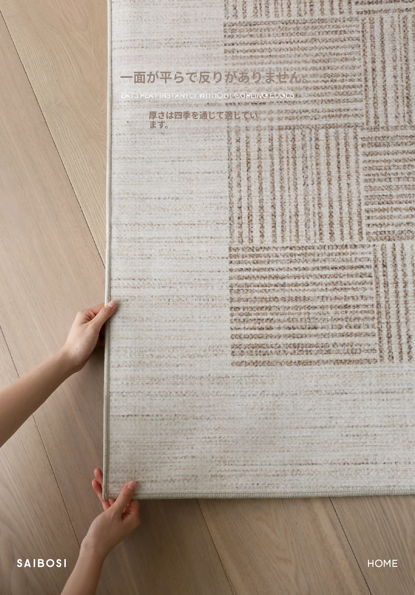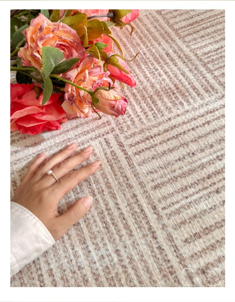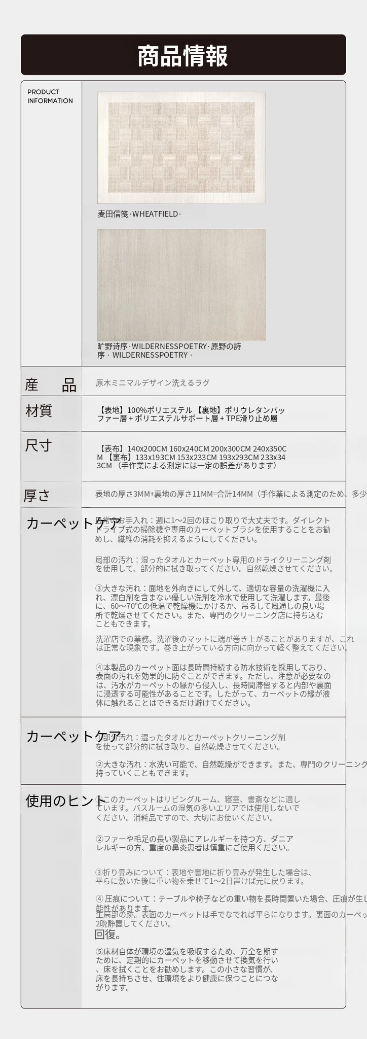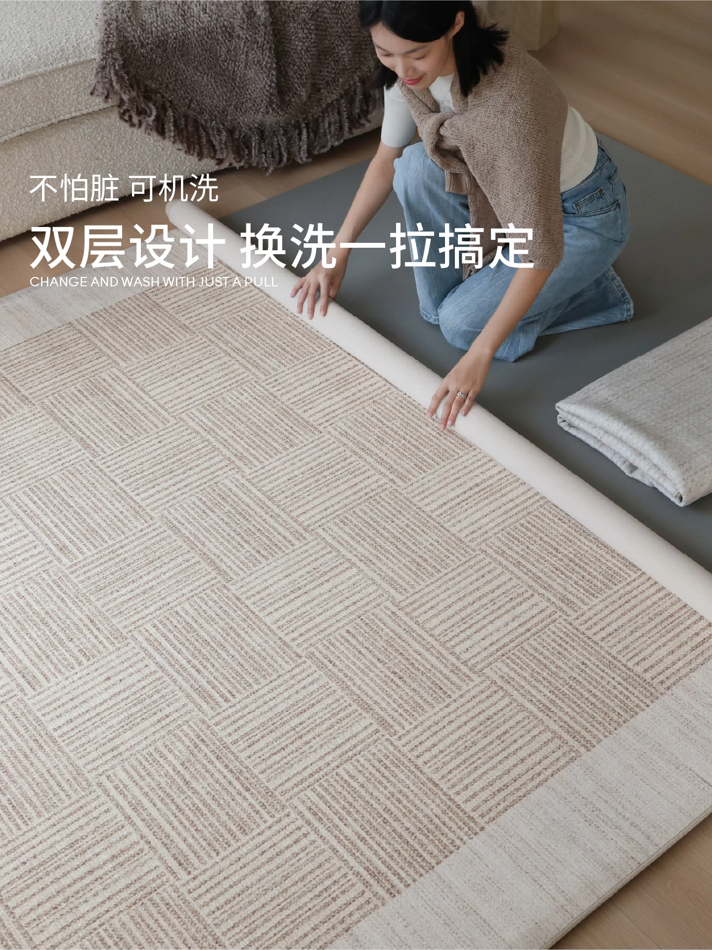 サイボス麦田デザインの洗える二重層ラグ - リビングルームやソファにぴったりの軽奢で高級感あふれる原木風ミニマルスタイル!手軽に洗えて、いつでも清潔に保てます。
