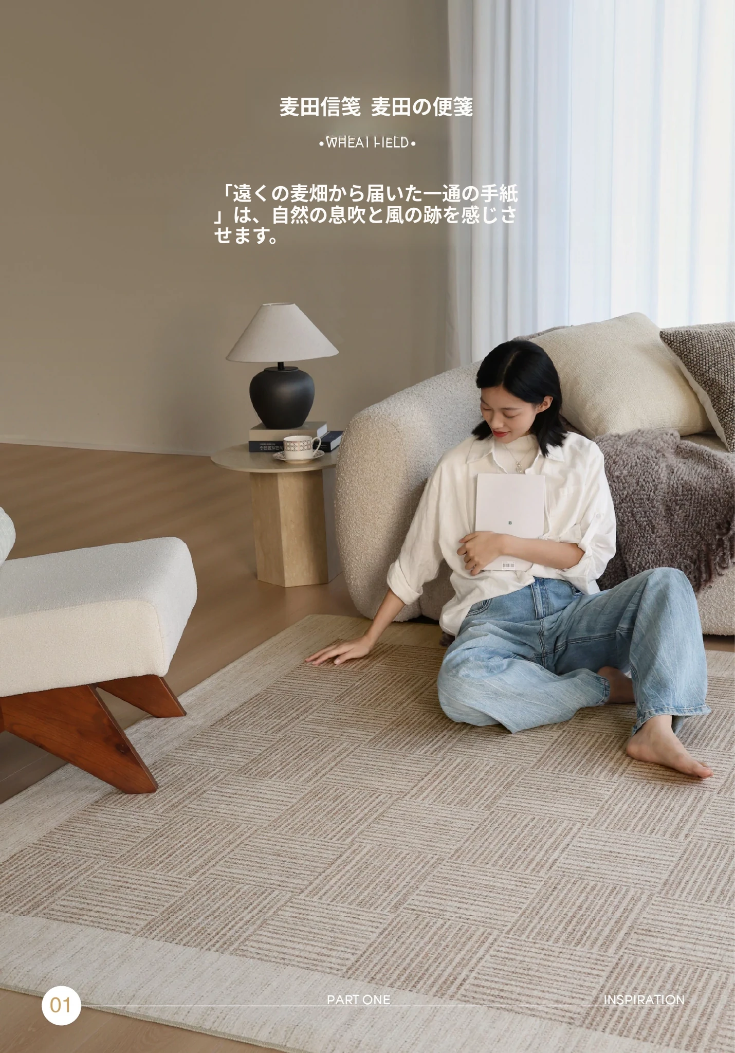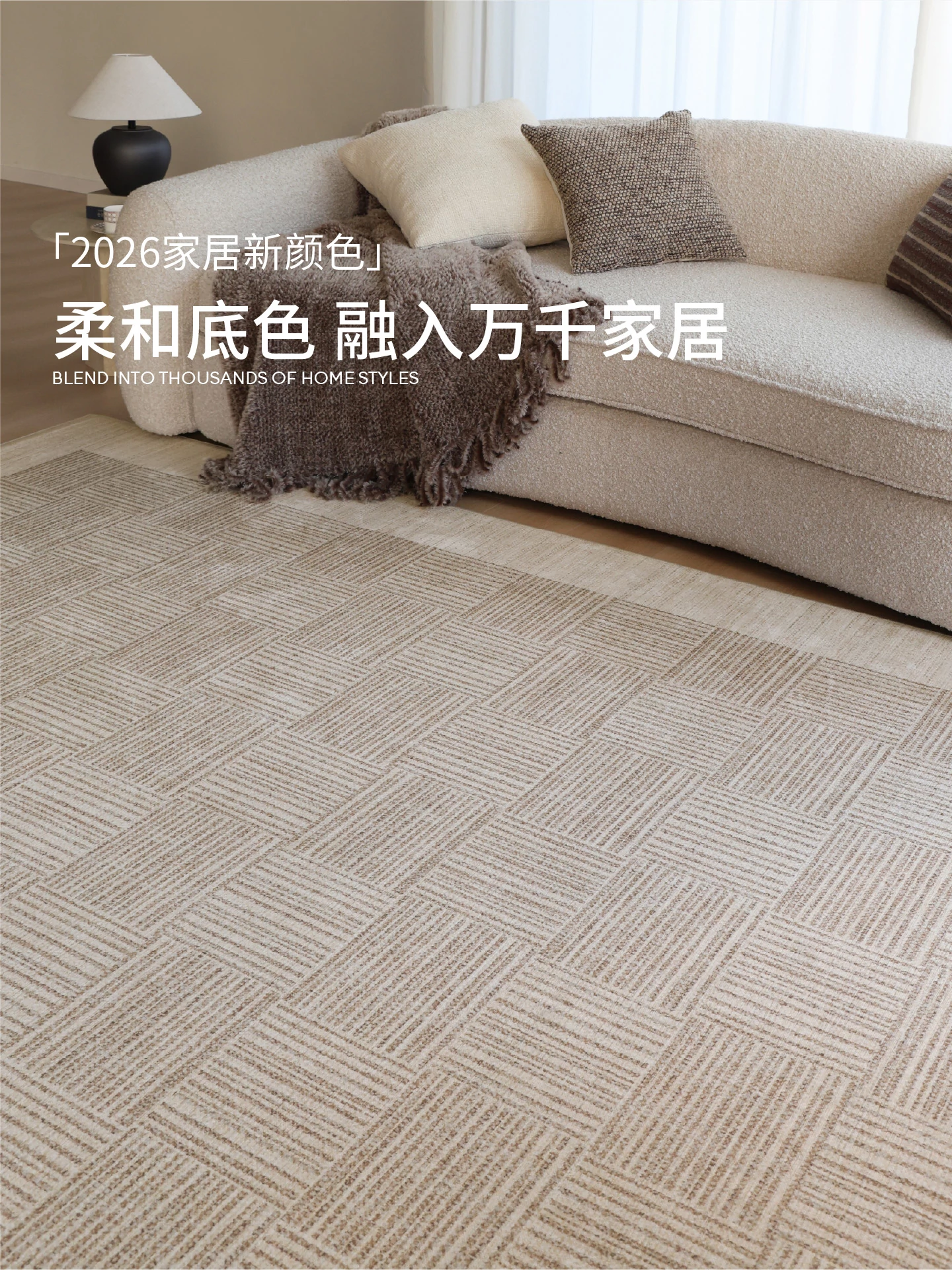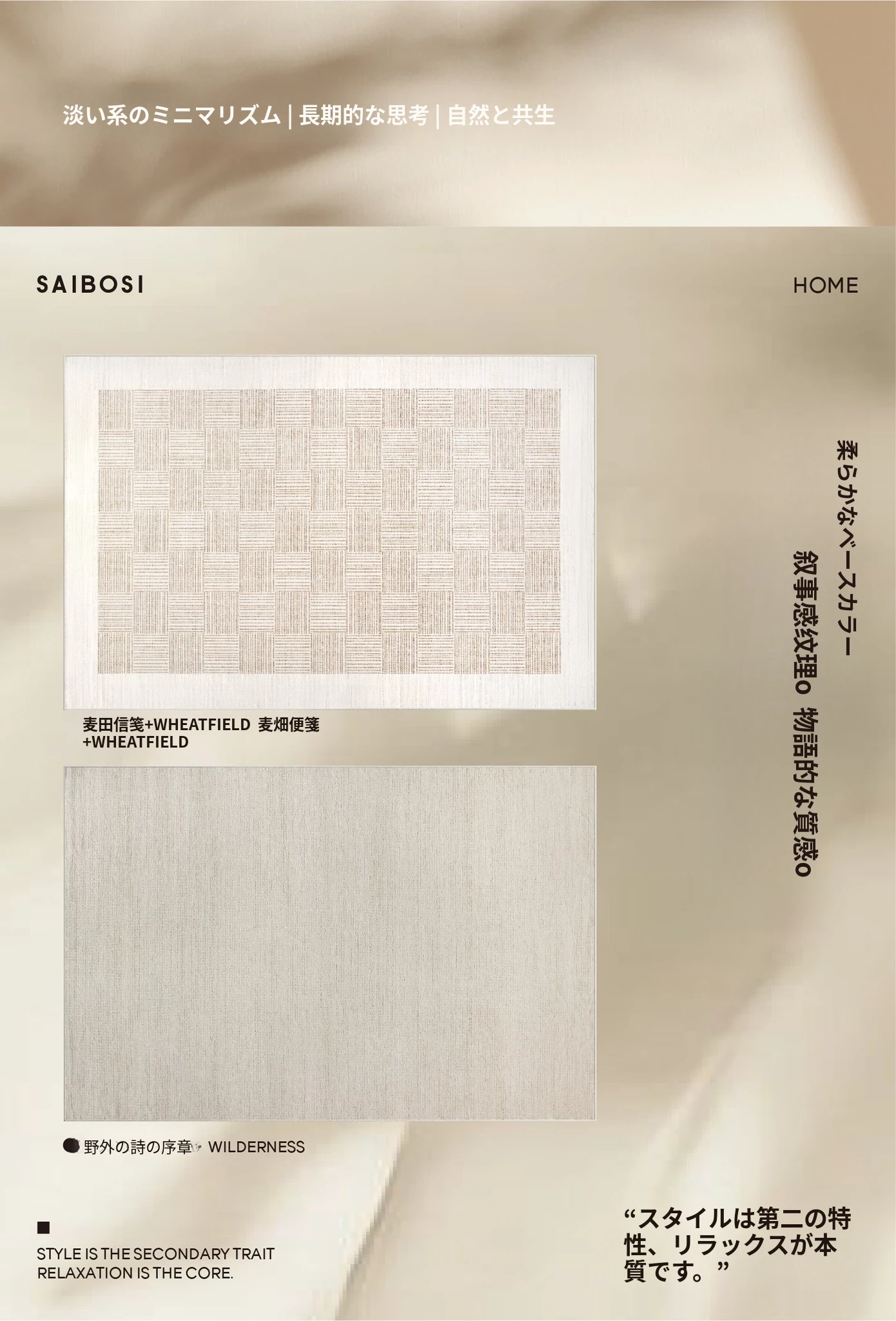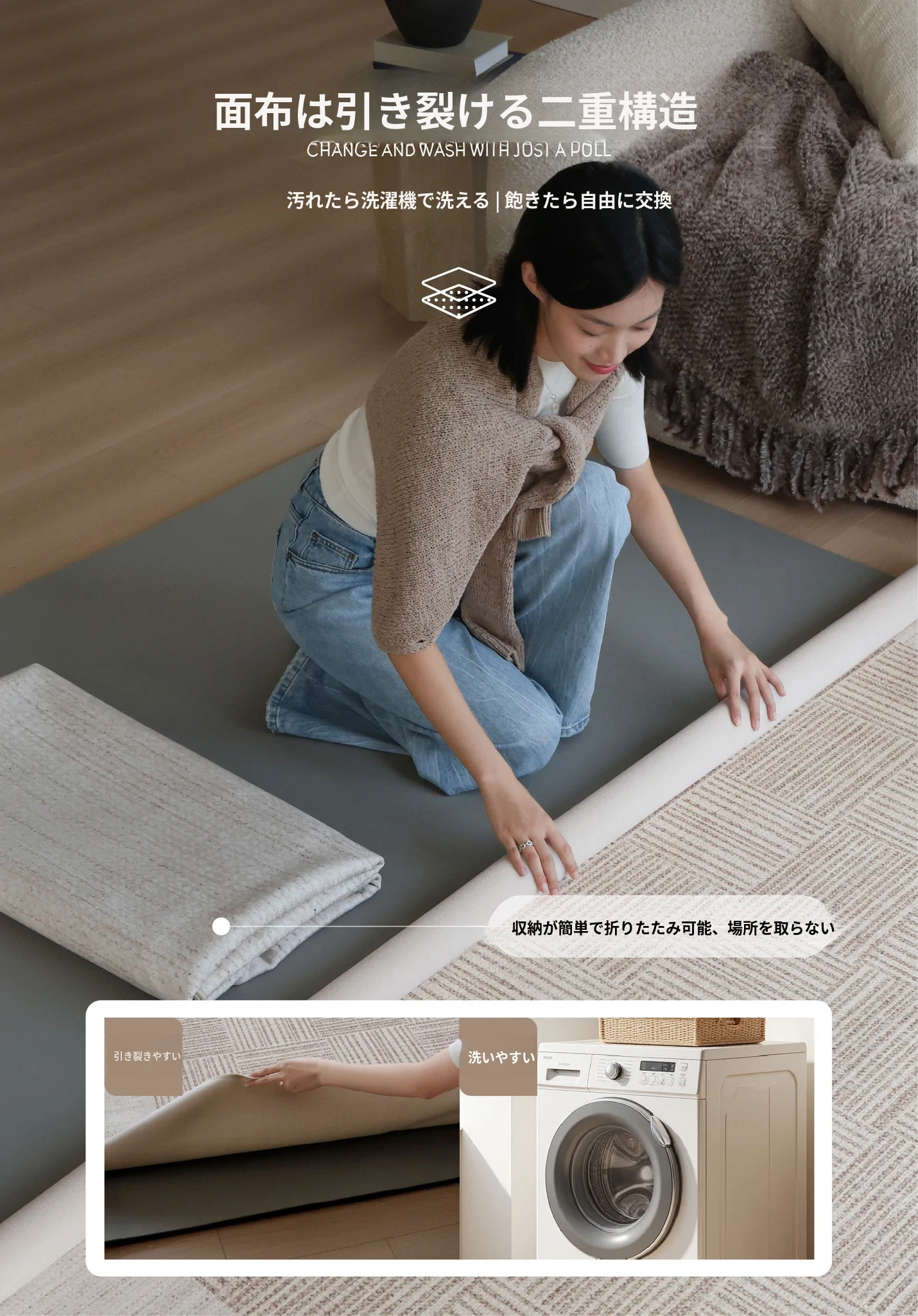 サイボス麦田デザインの洗える二重層ラグ - リビングルームやソファにぴったりの軽奢で高級感あふれる原木風ミニマルスタイル!手軽に洗えて、いつでも清潔に保てます。