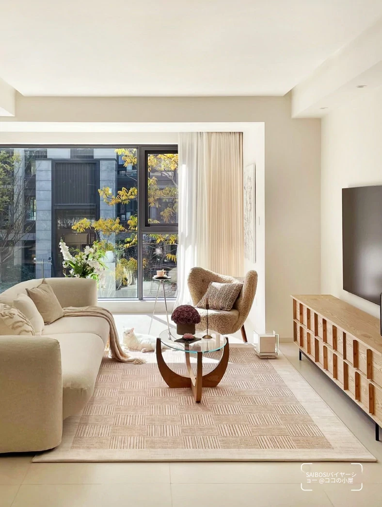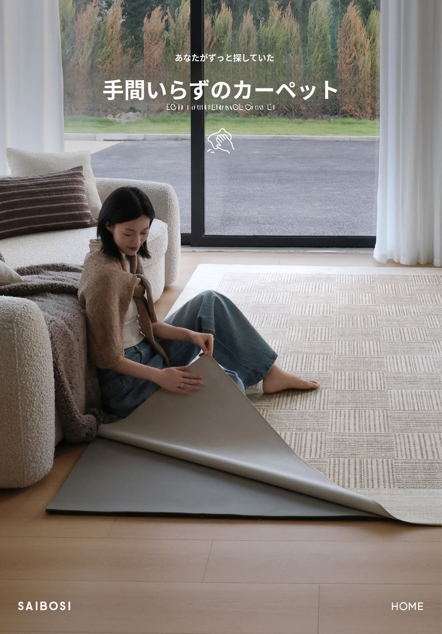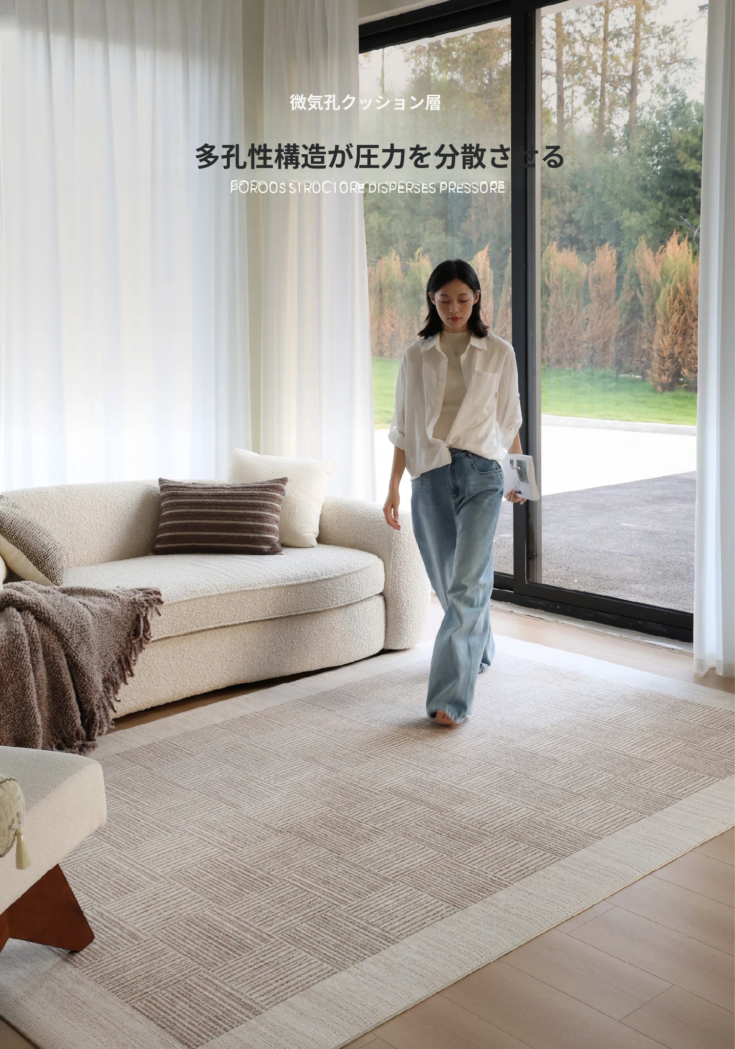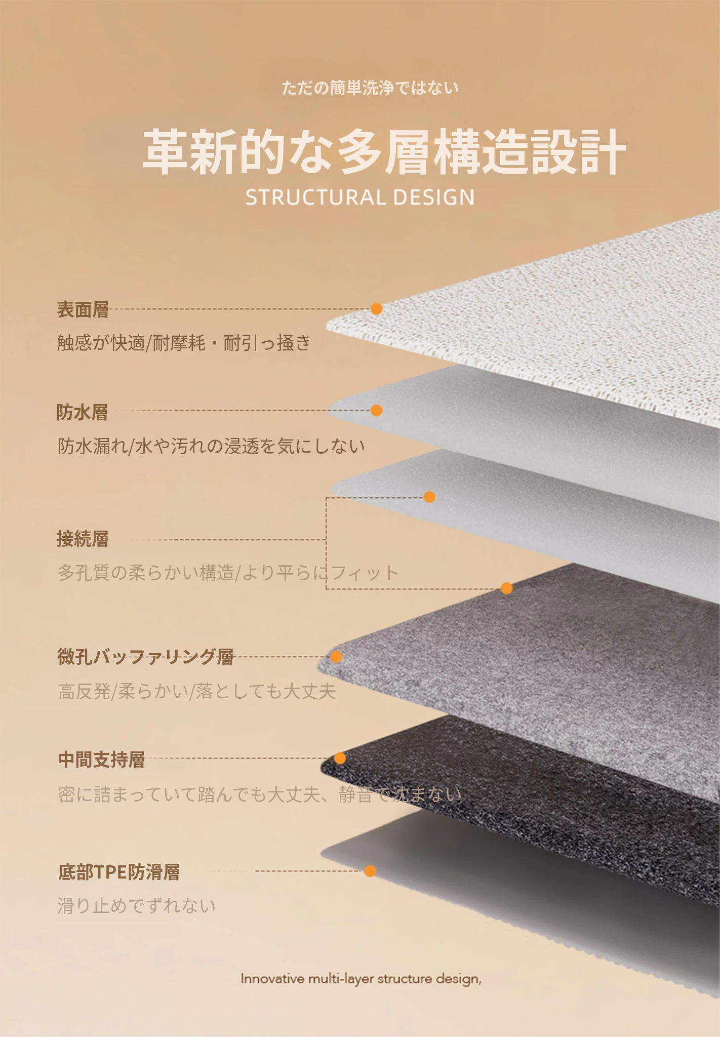 サイボス麦田デザインの洗える二重層ラグ - リビングルームやソファにぴったりの軽奢で高級感あふれる原木風ミニマルスタイル!手軽に洗えて、いつでも清潔に保てます。