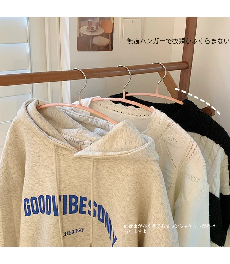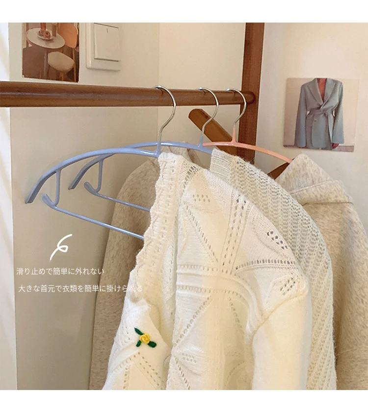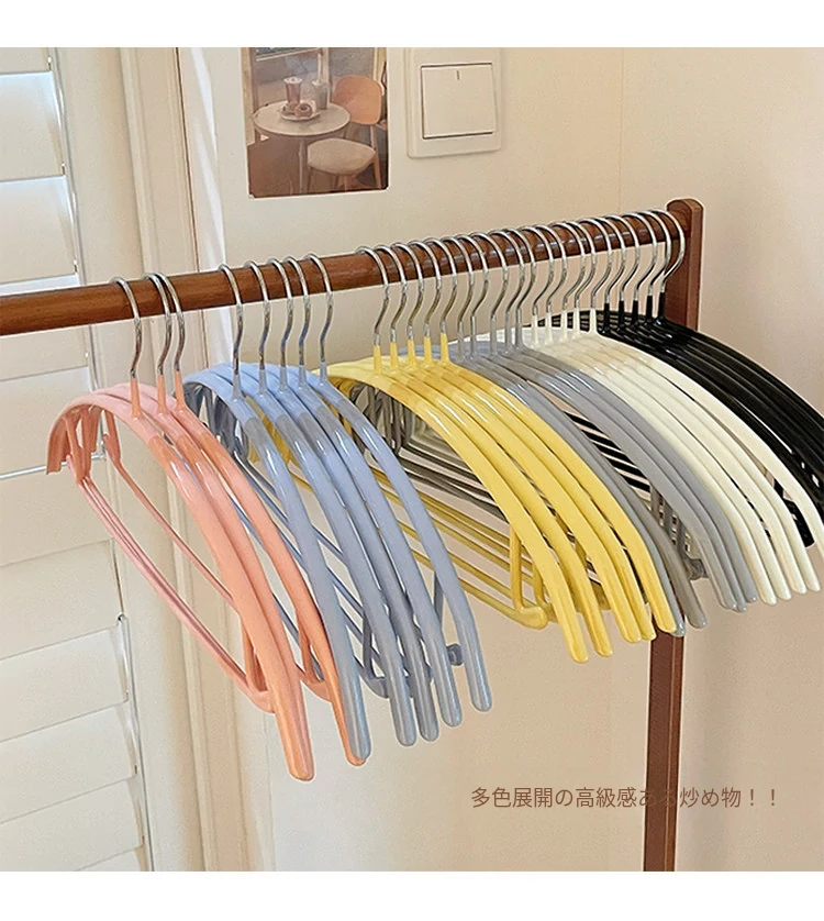 無痕衣架 家庭用プラスチック製 洗濯物が滑らない肩角保護デザイン 収納力抜群のハンガー フック付き しっかりとした耐久性で、衣類を美しく保つ!