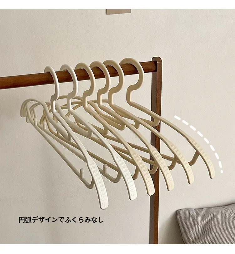 滑り止め機能付き無痕ハンガー - 幅広肩サポートで衣類をしっかり保持!多機能デザインで、寮や家庭で大活躍。肩のラインを守り、衣服を美しく保ちます。