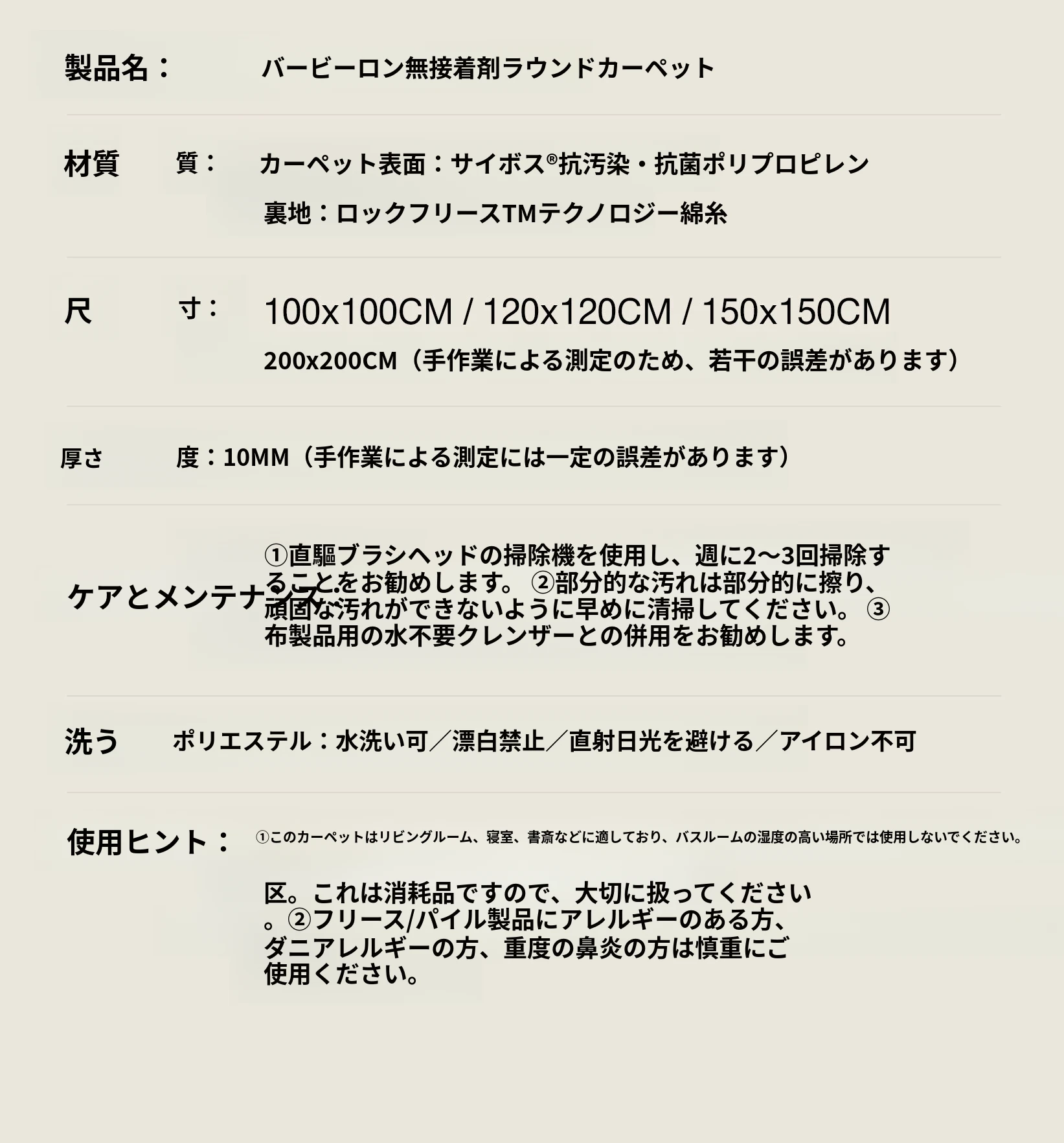 サイボス 無接着 円形カーペット バービー竜 寝室 リビング 高級感 洋服部屋 ベッドサイドカーペット 青山美宿の魅力を引き立てる!