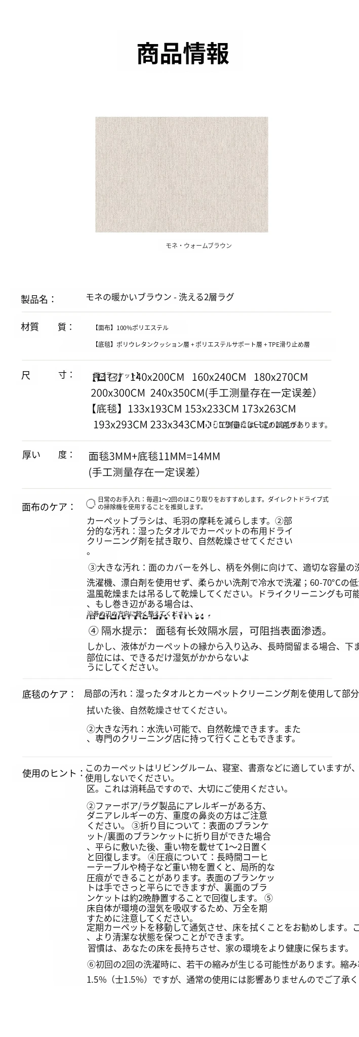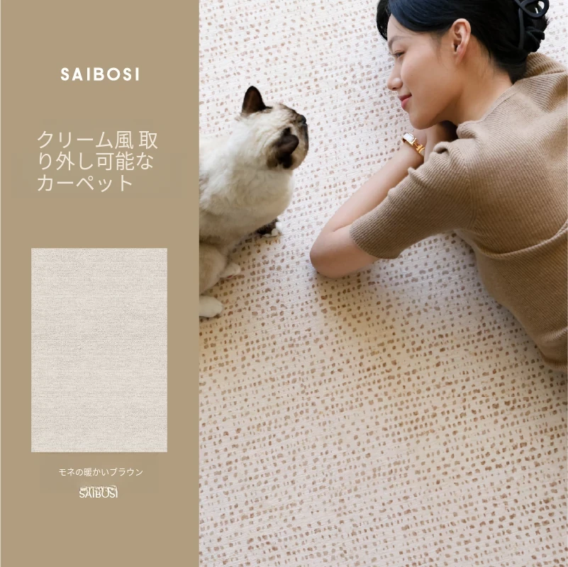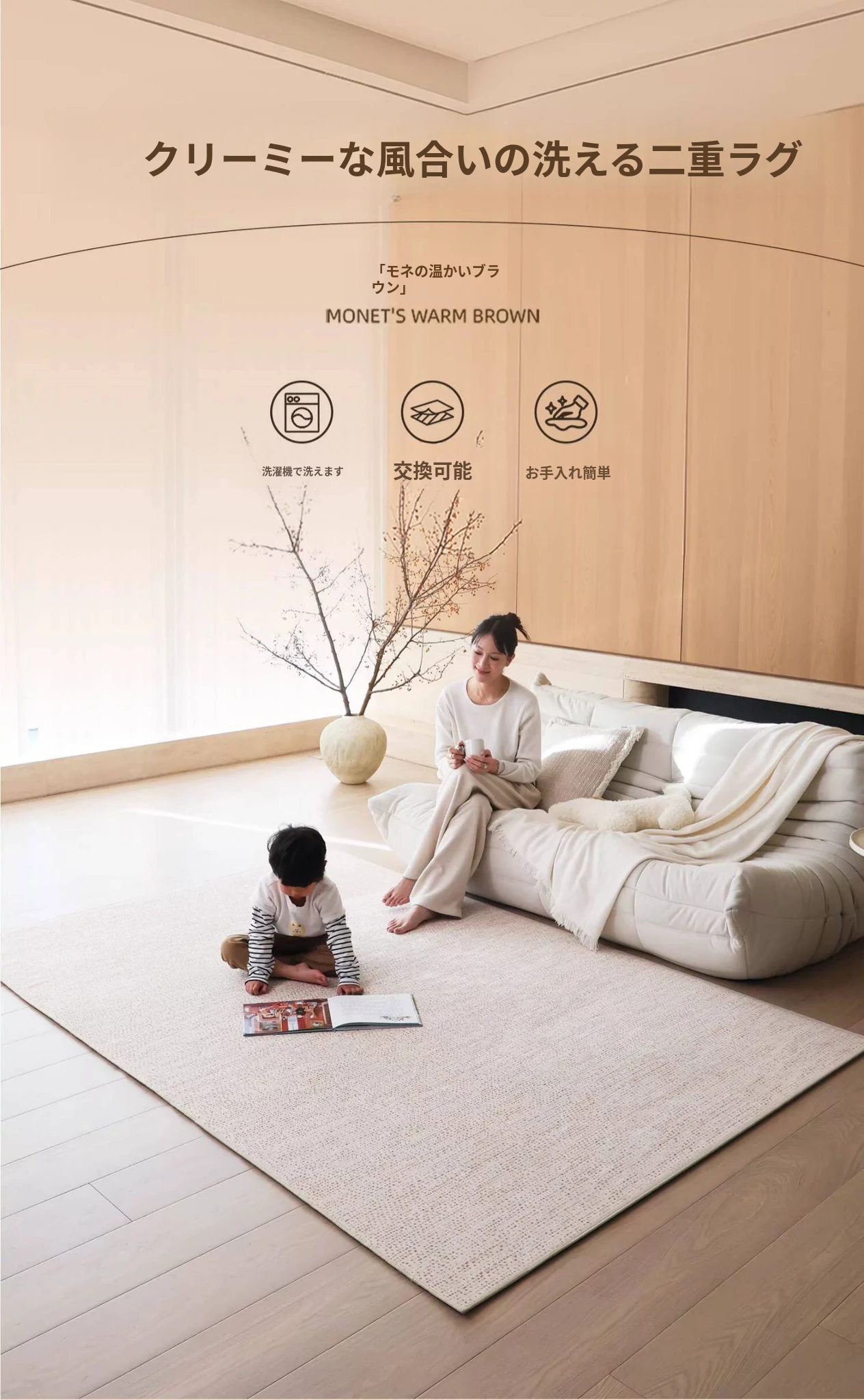 セイボス 洗える2層ラグ モネ風デザイン 暖かいブラウン 高級感あふれるリビング&ベッドルーム用 ソファマット - おしゃれで快適な空間を演出!