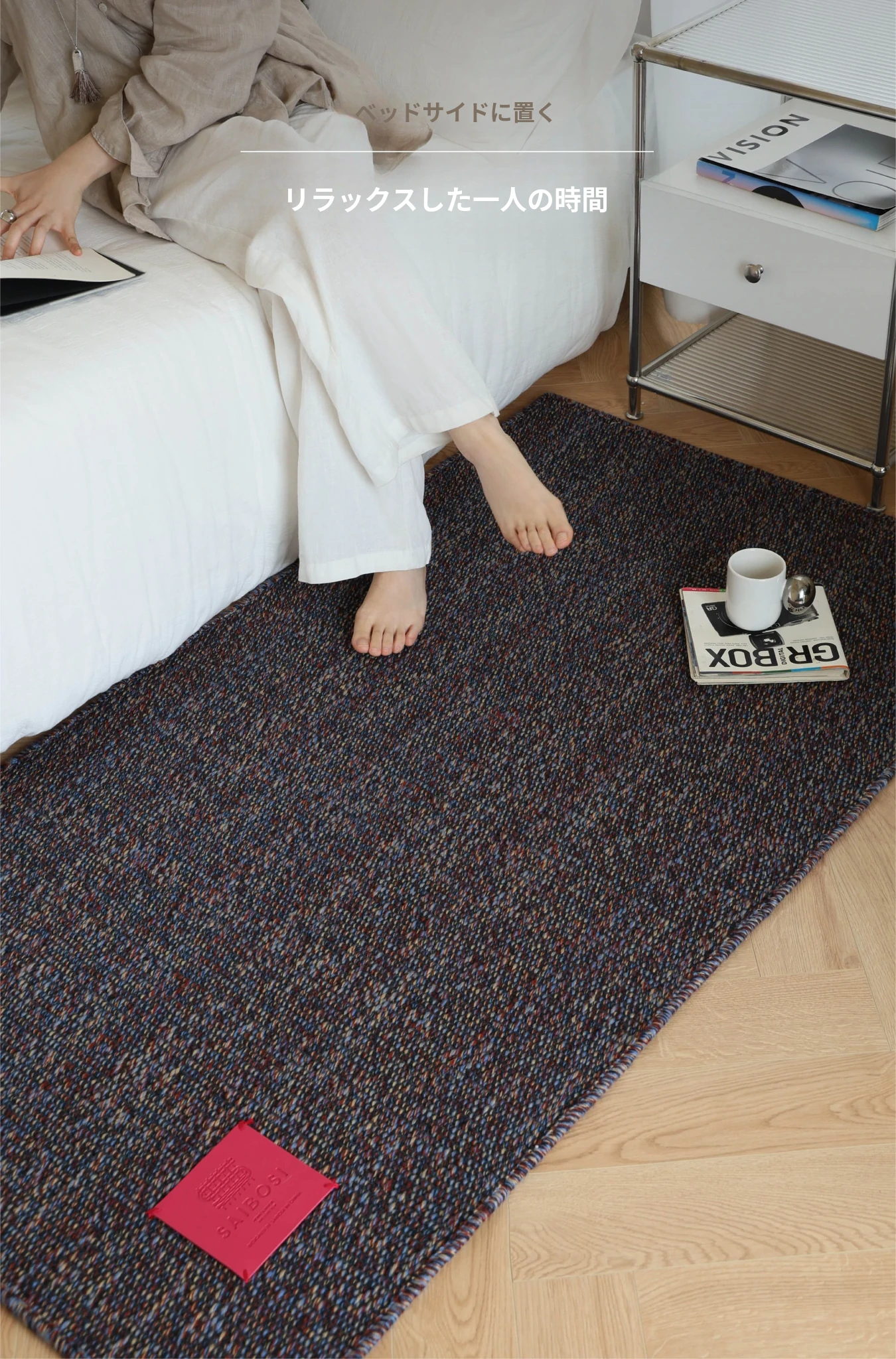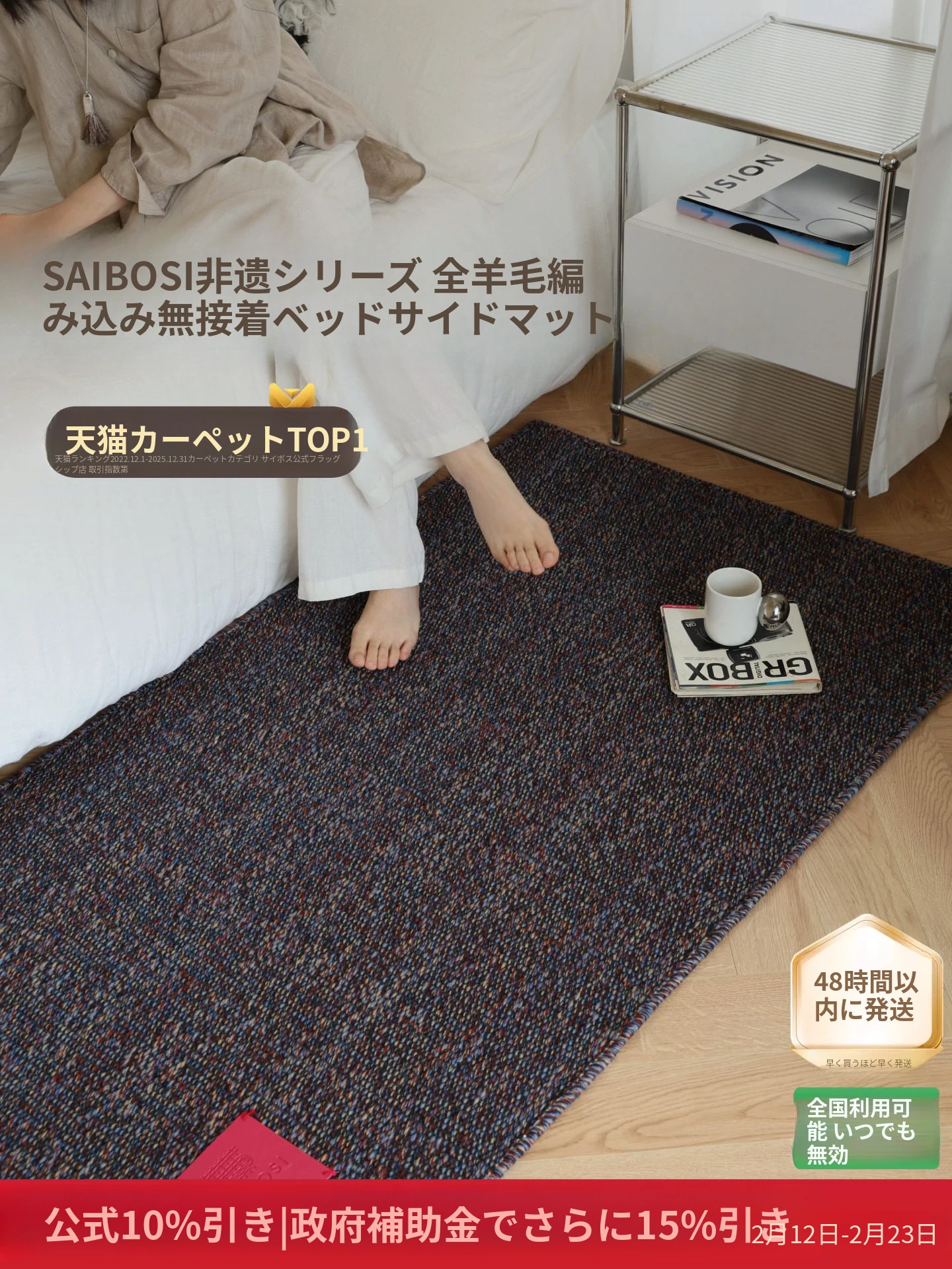 サイボス伝統工芸シリーズ 輸入全羊毛ベッドサイドカーペット 無接着剤・無フォルムアルデヒド 高級感溢れる軽やかな寝室カーペット