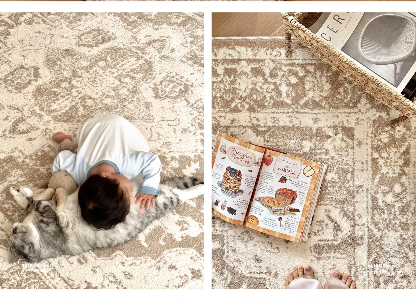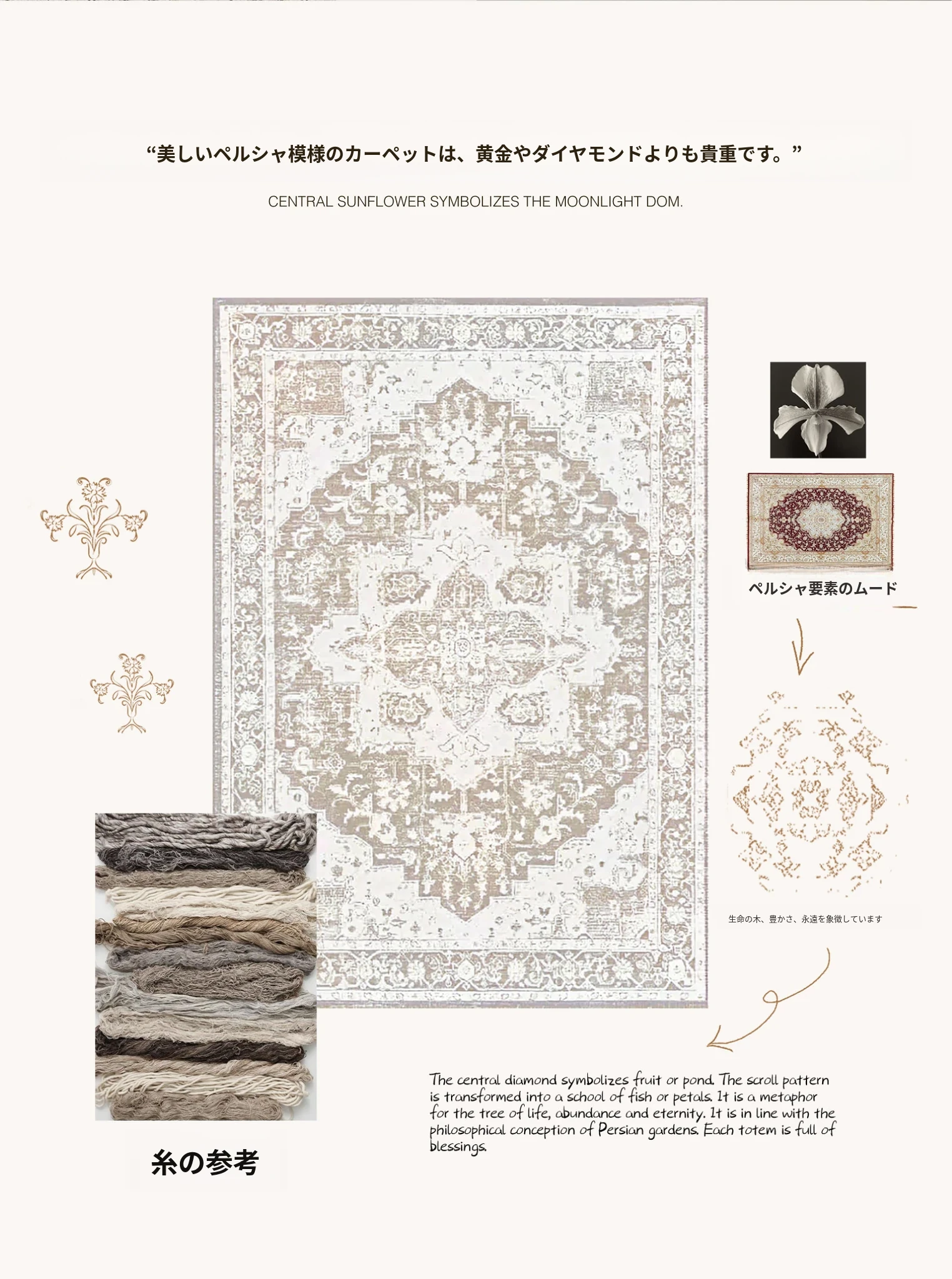 セイボス月神殿 無接着剤カーペット 中古風 防水 抗菌 フォルムデザイン 無ホルムアルデヒド リビングルーム用 ラグジュアリー フランス風 ベッドルームに最適!