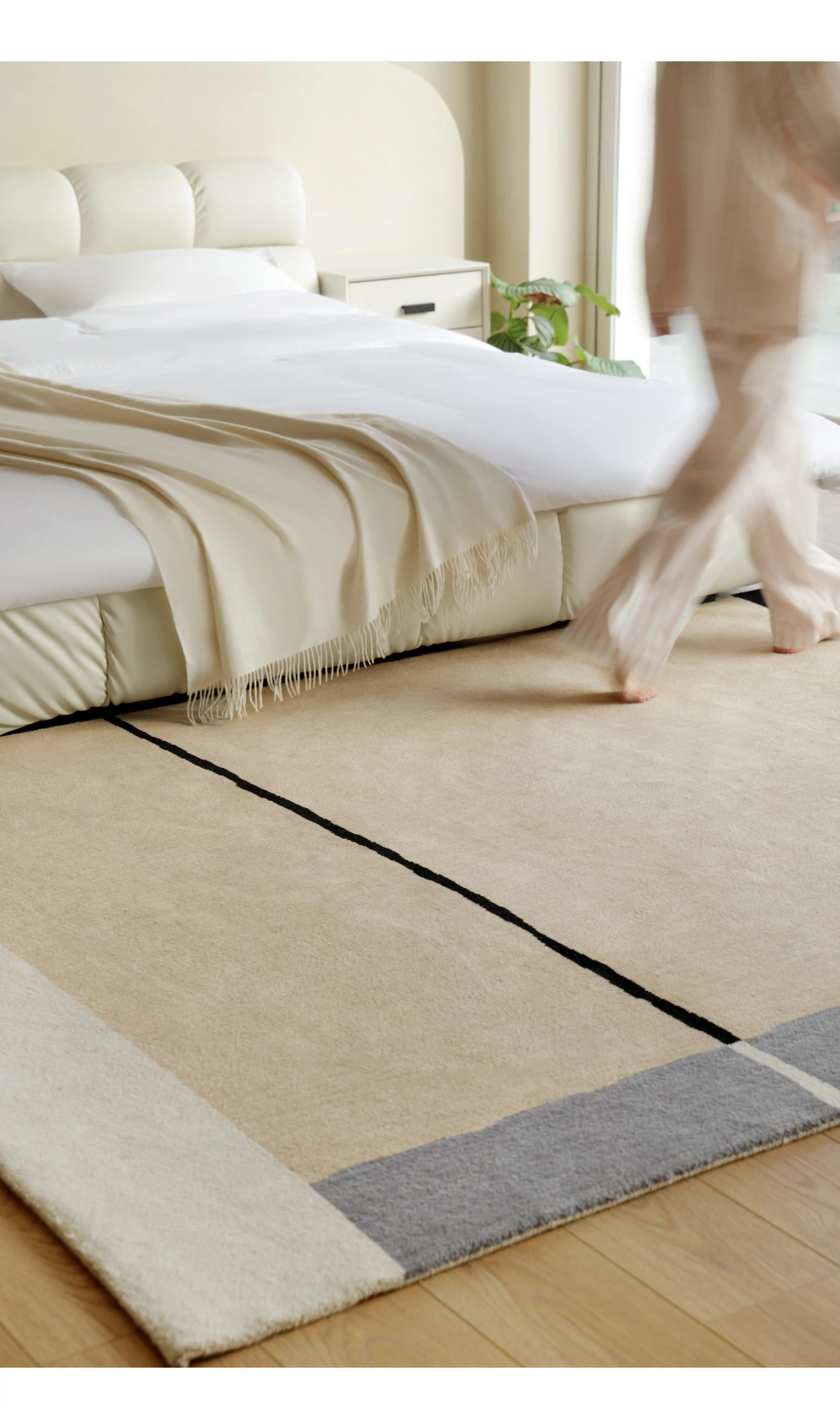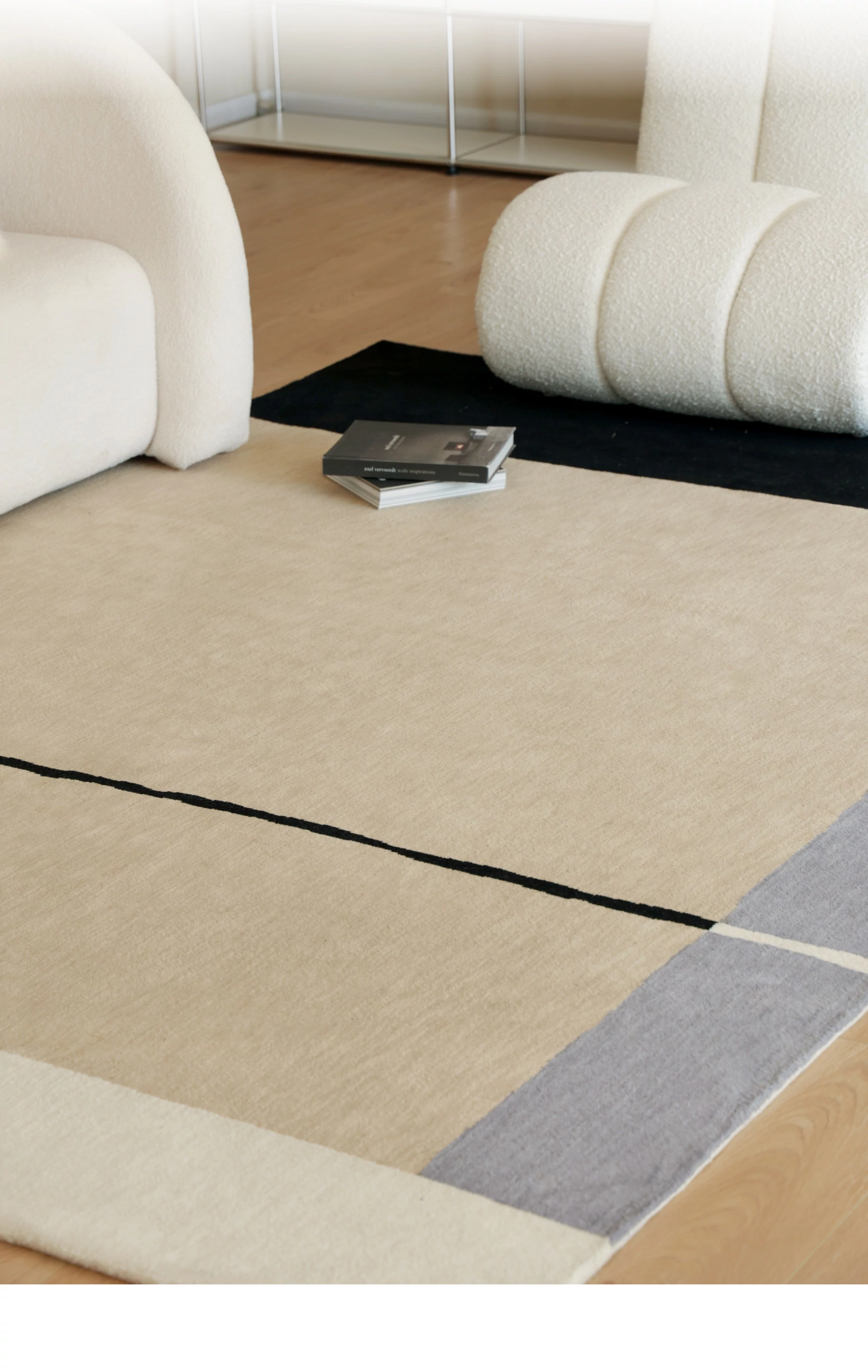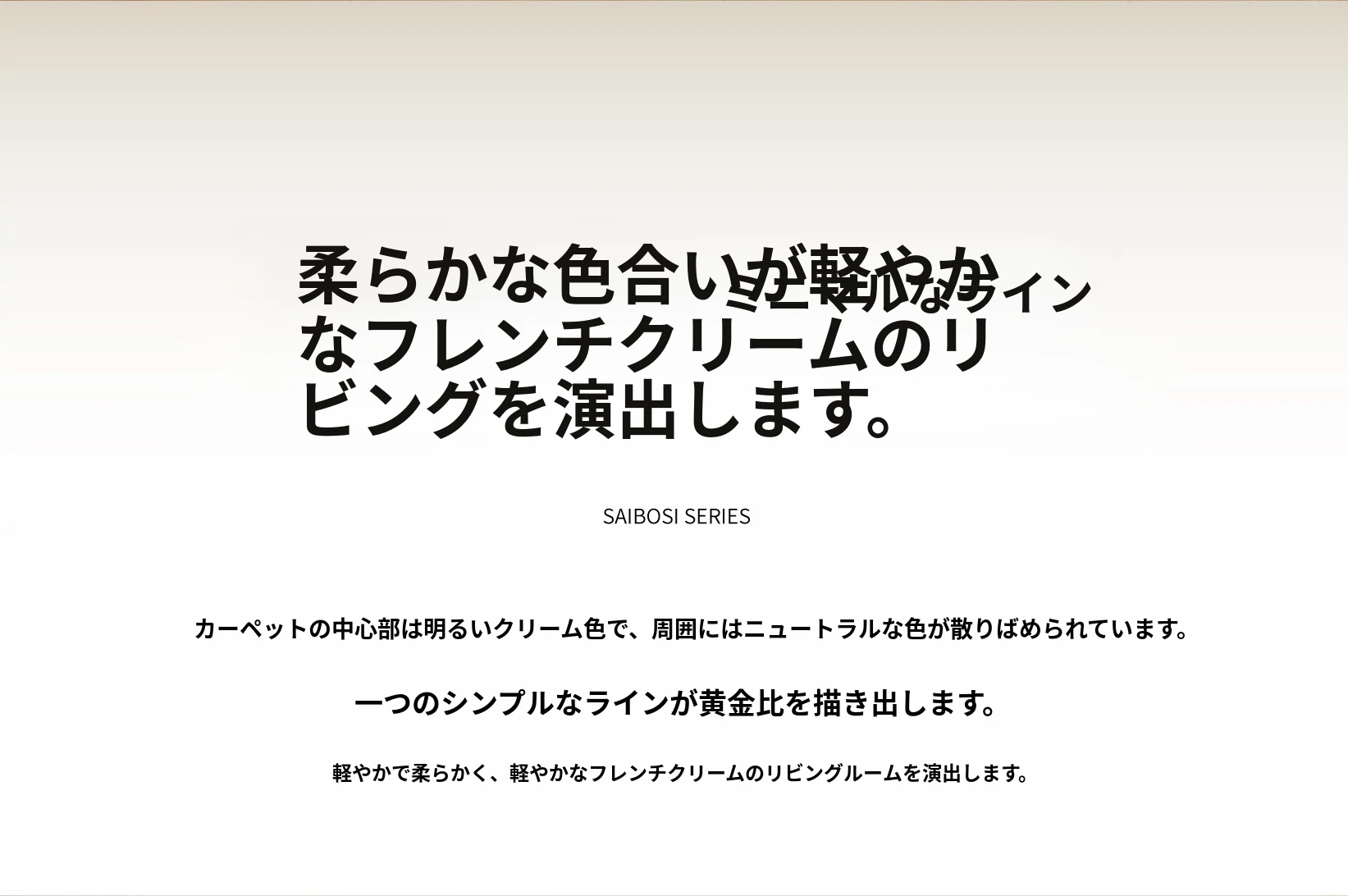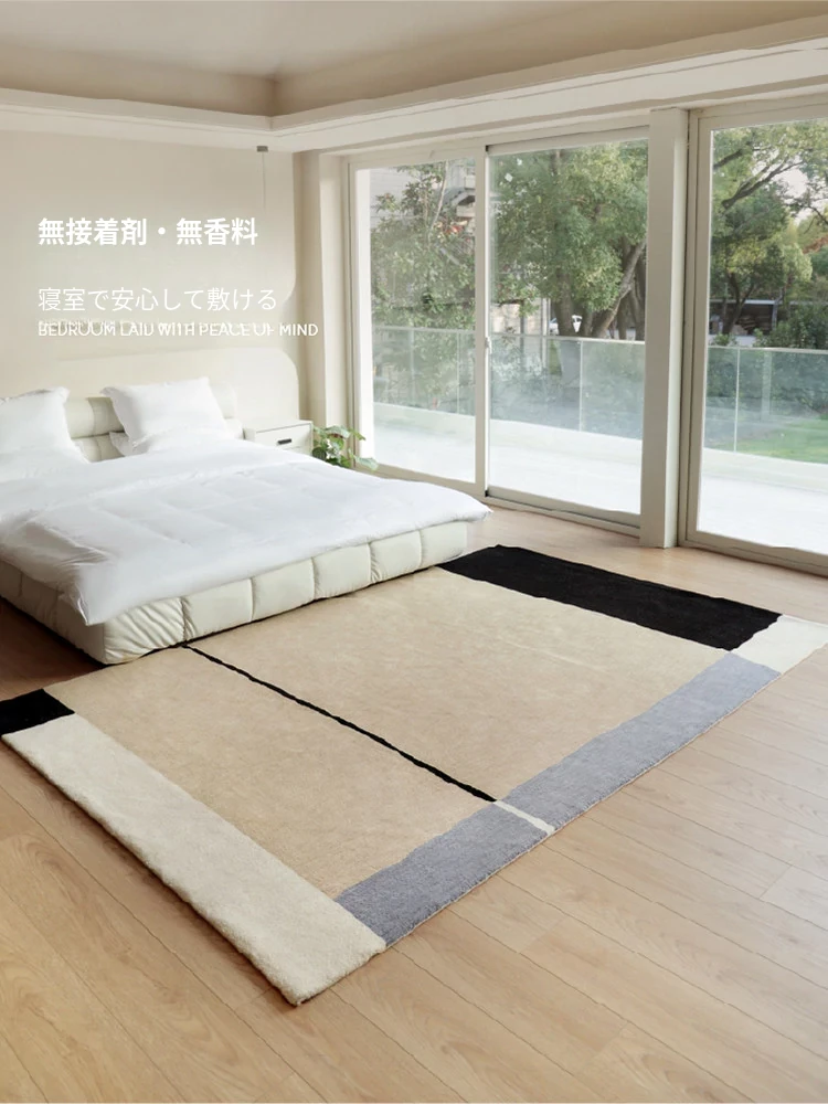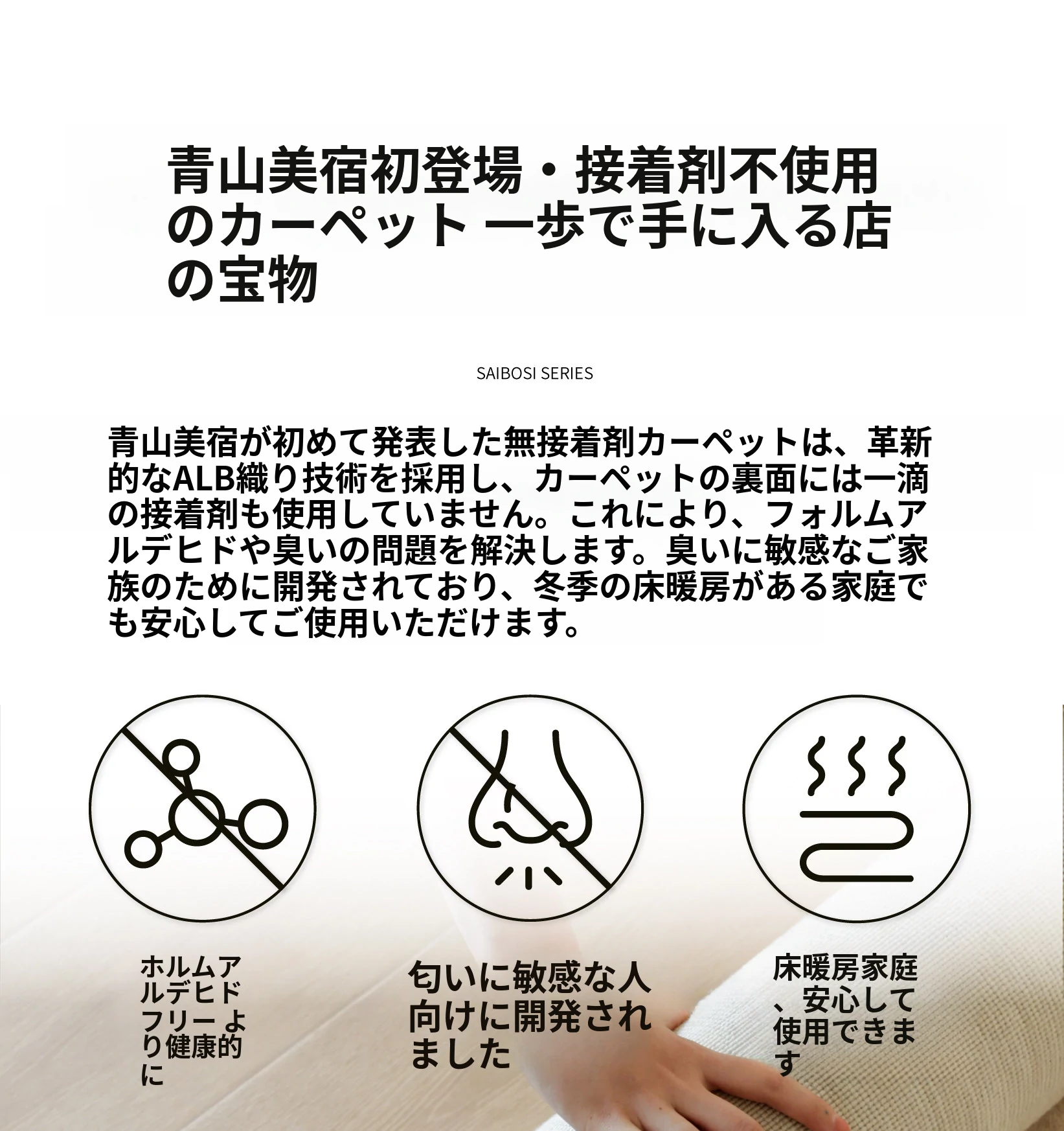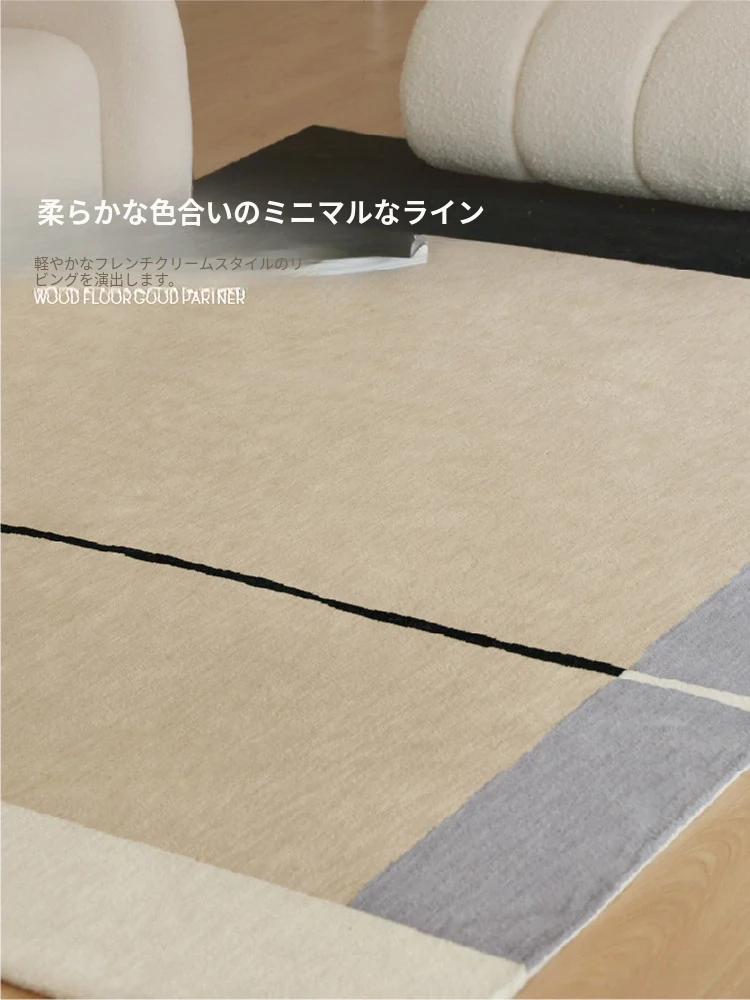 サイボス純ウール無フォルムアルデヒド・接着剤不使用のリビングルームカーペット、軽やかなラグジュアリーでミニマルなクリームフレンチスタイル、青山の美しい宿にぴったり!