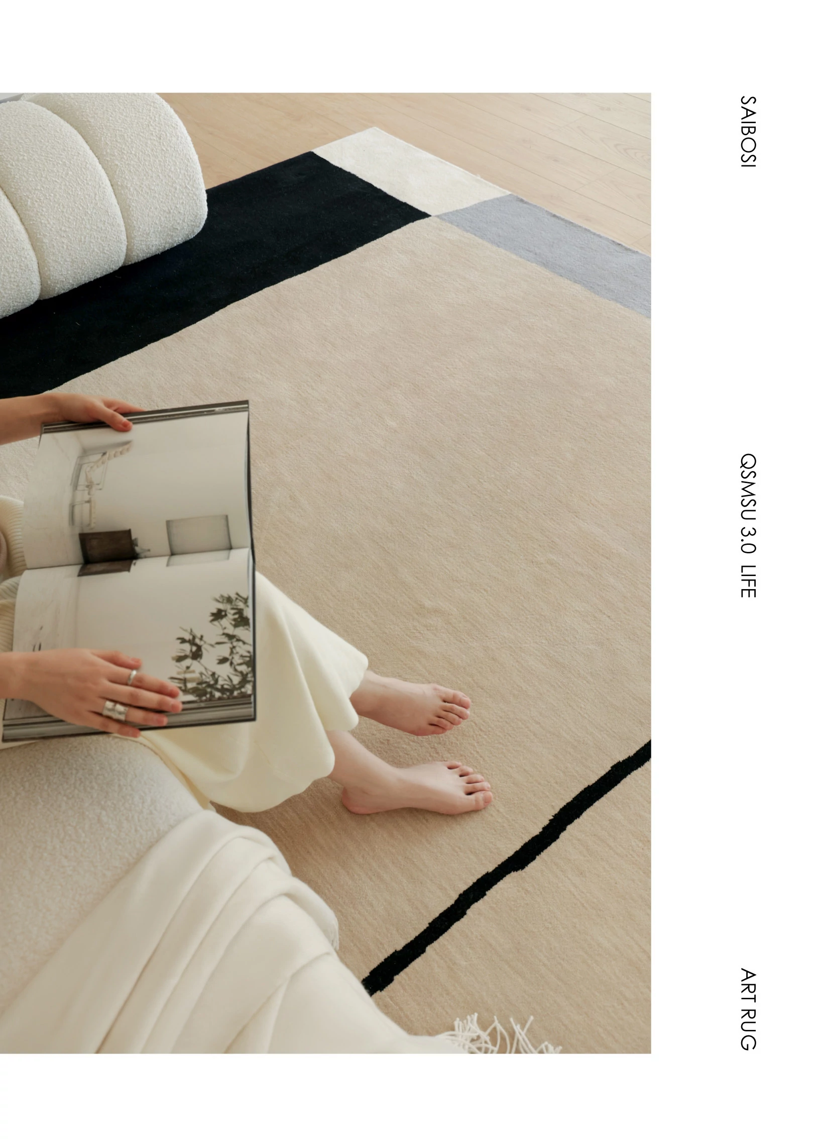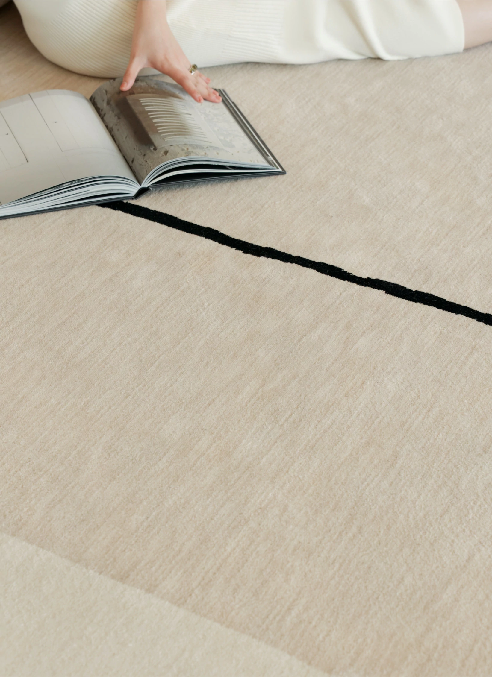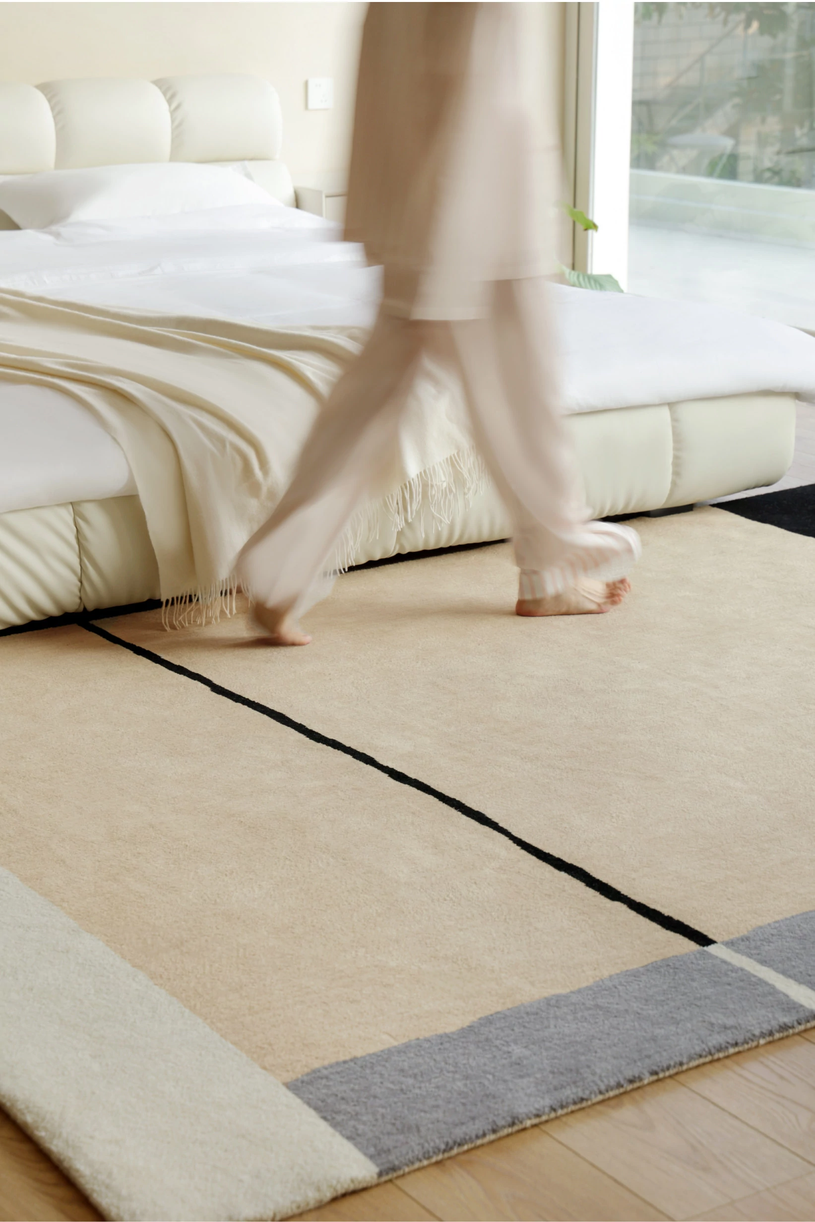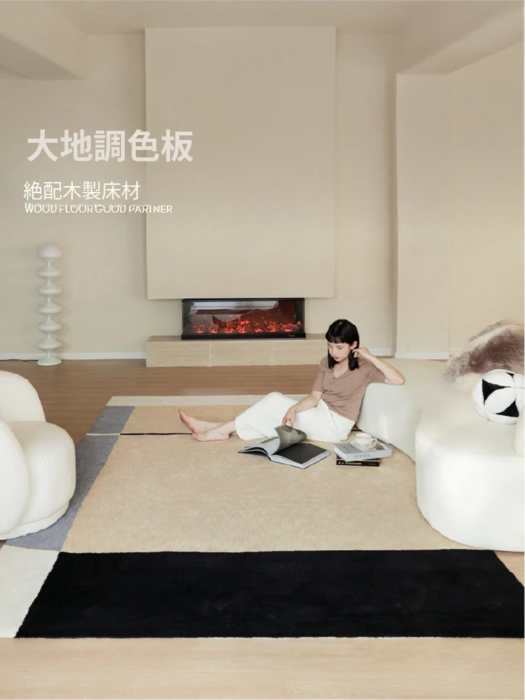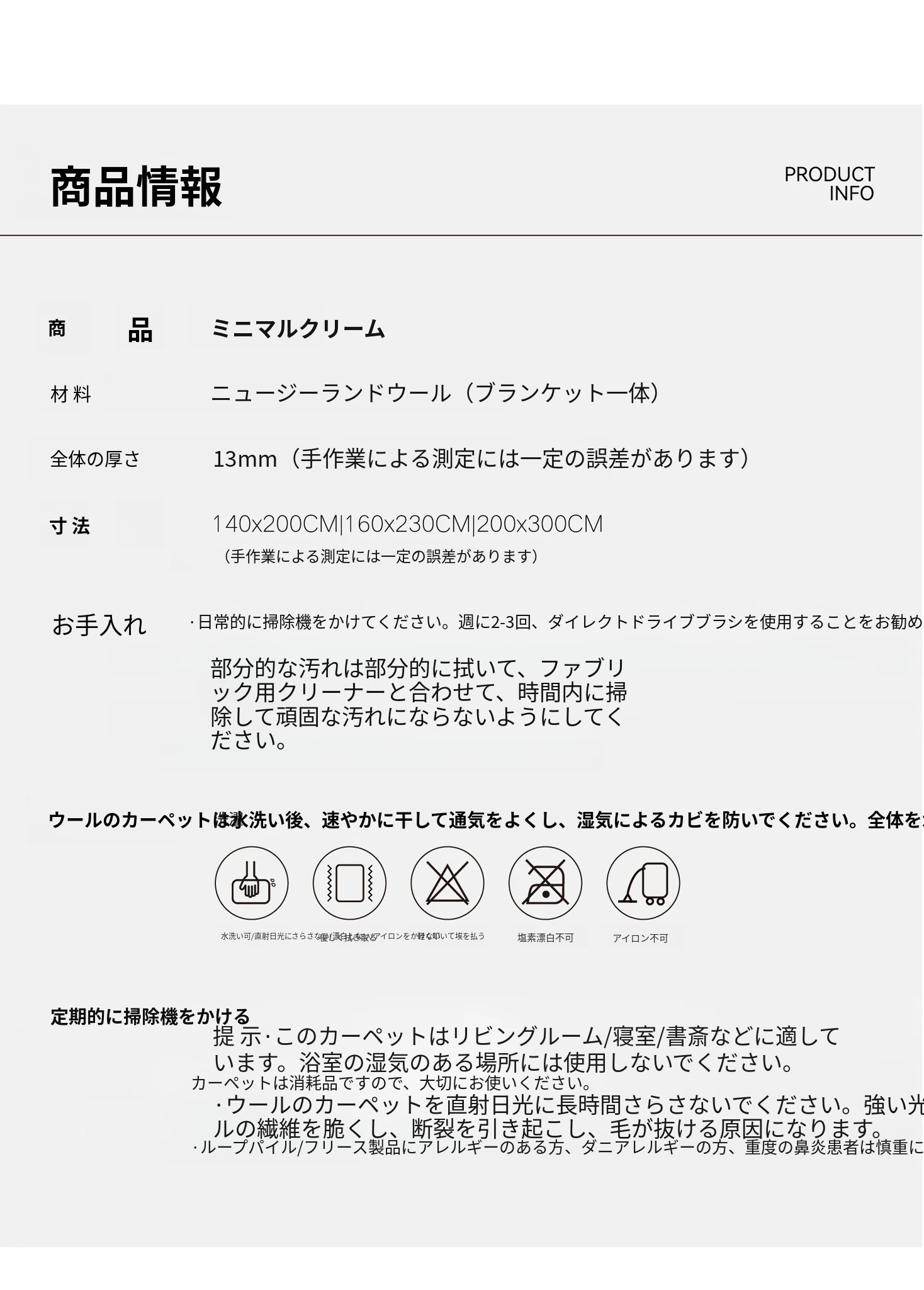 サイボス純ウール無フォルムアルデヒド・接着剤不使用のリビングルームカーペット、軽やかなラグジュアリーでミニマルなクリームフレンチスタイル、青山の美しい宿にぴったり!