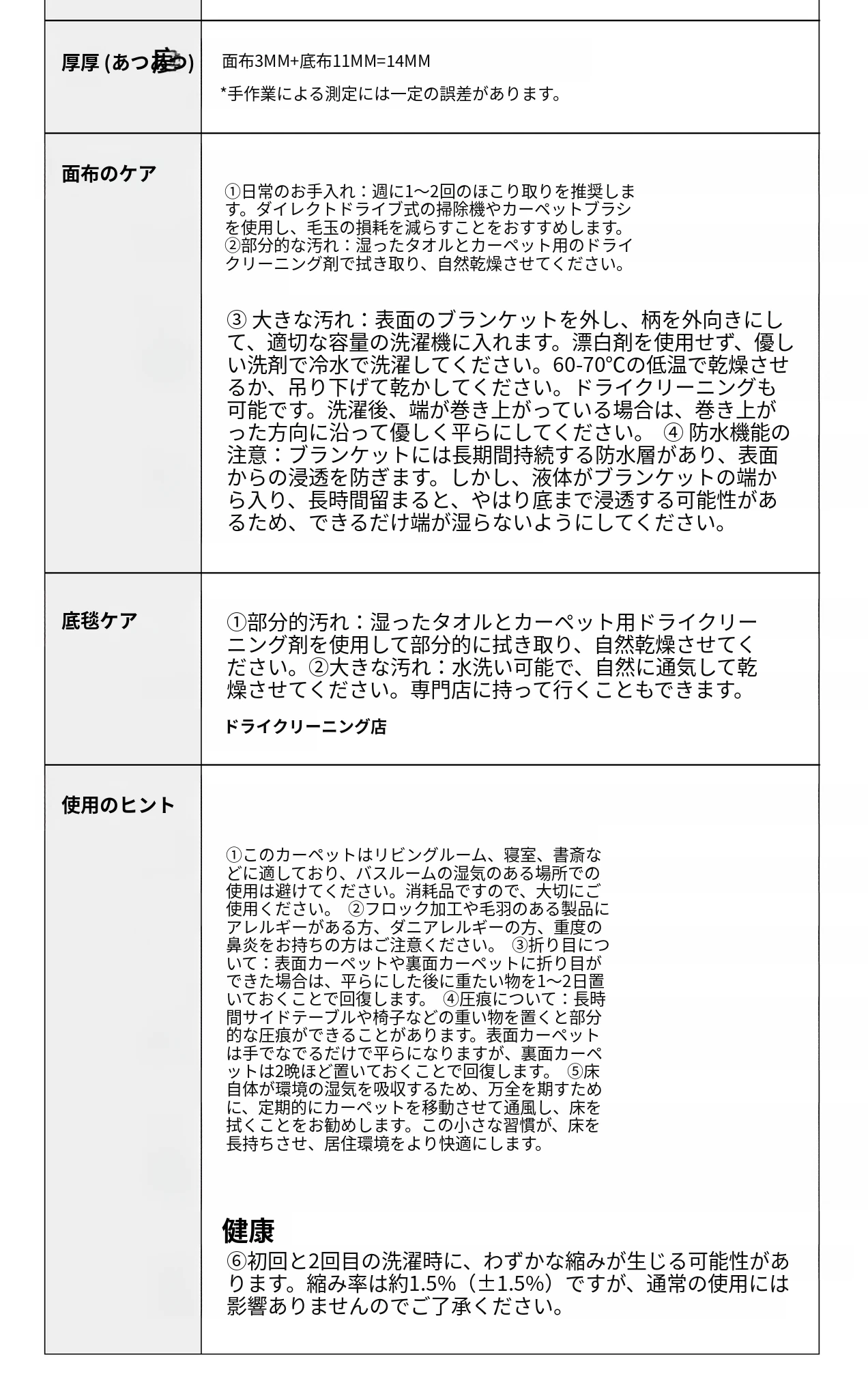 カーペットサイズ