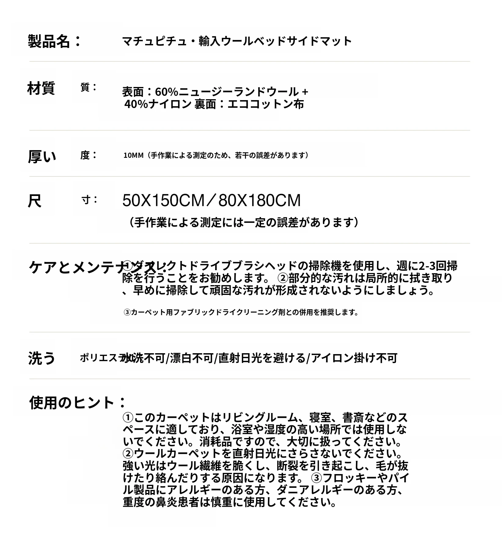 マチュピチュ ベッドサイドマット (輸入ウール)