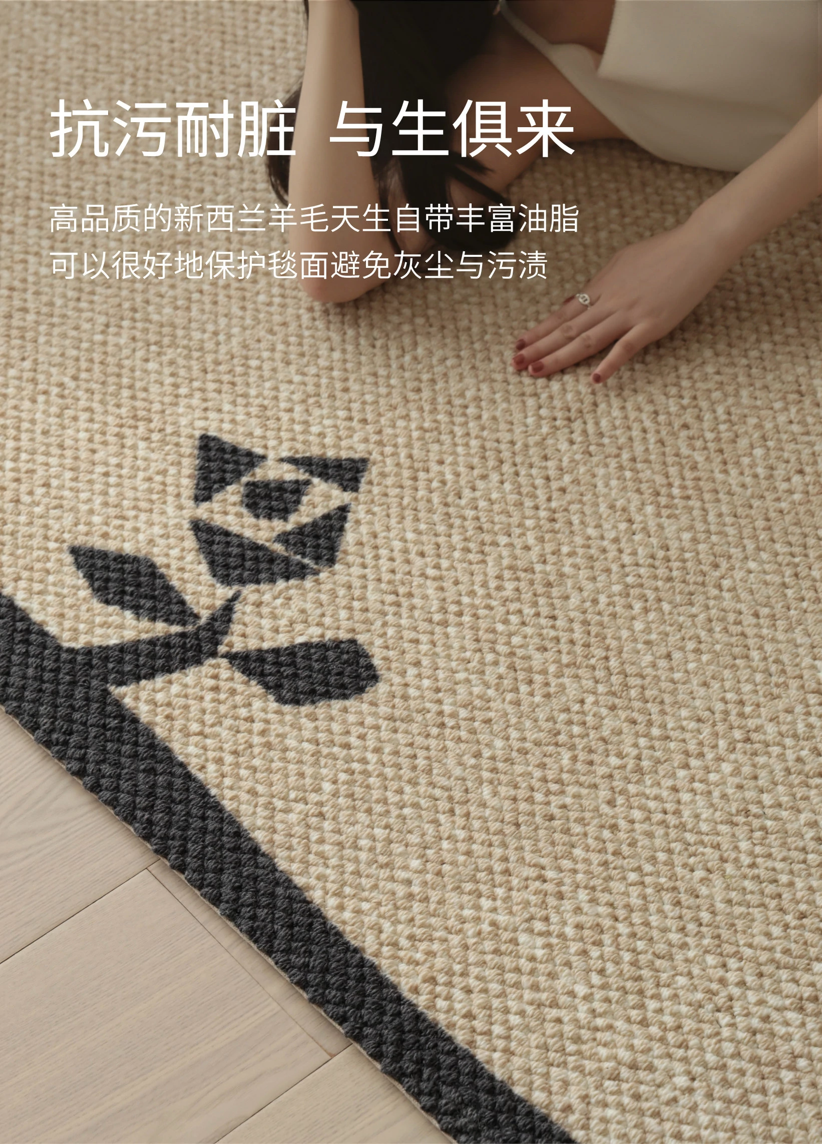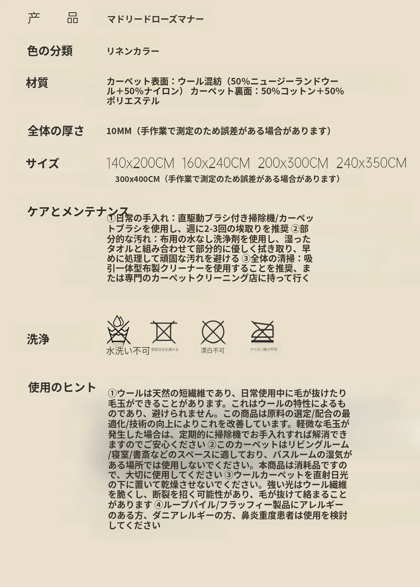 サイボス・マドリード・ローズガーデン カーペット 輸入ウール 軽奢華 フランス風 リビングソファ 寝室用 青山の美宿のような上品さを演出!