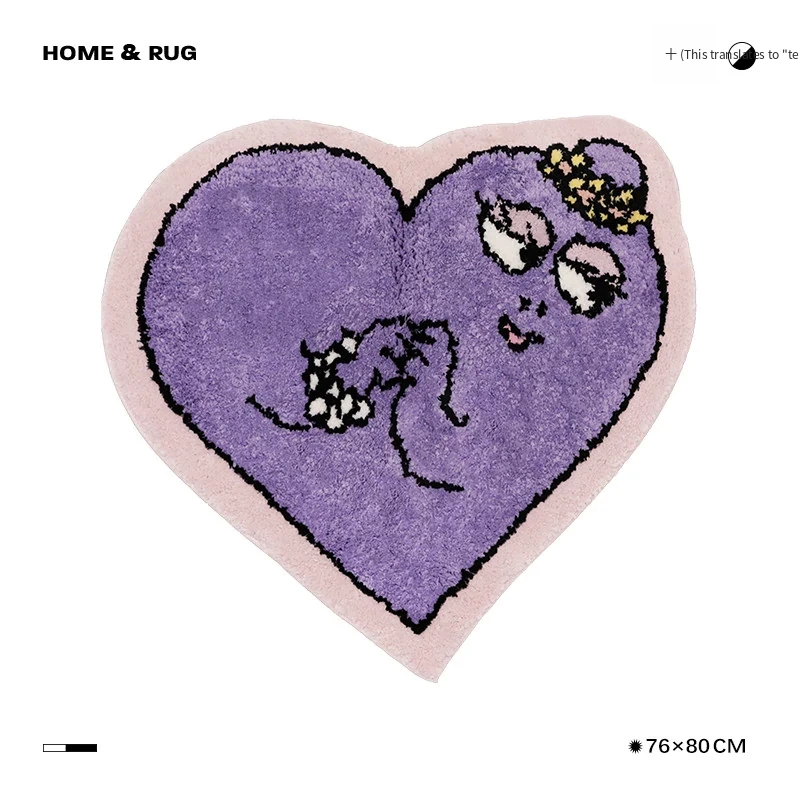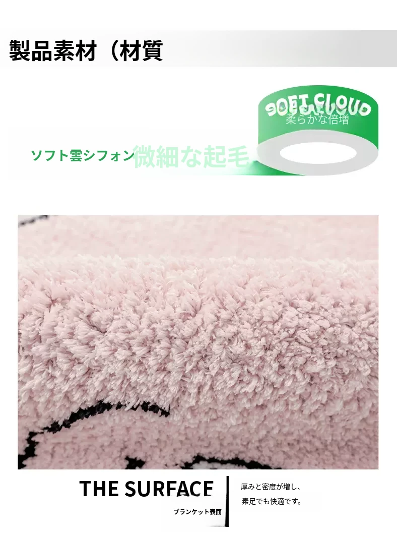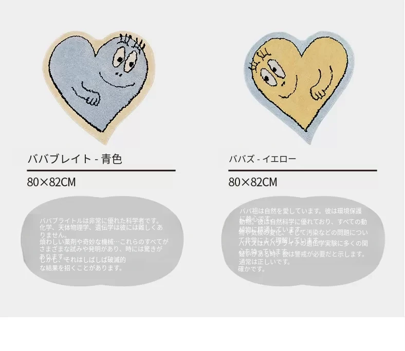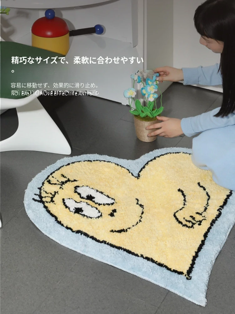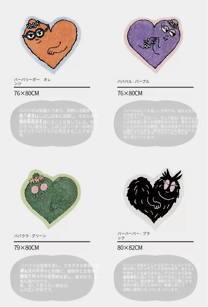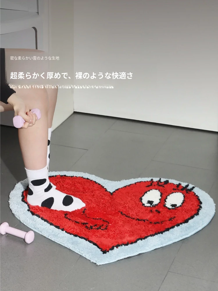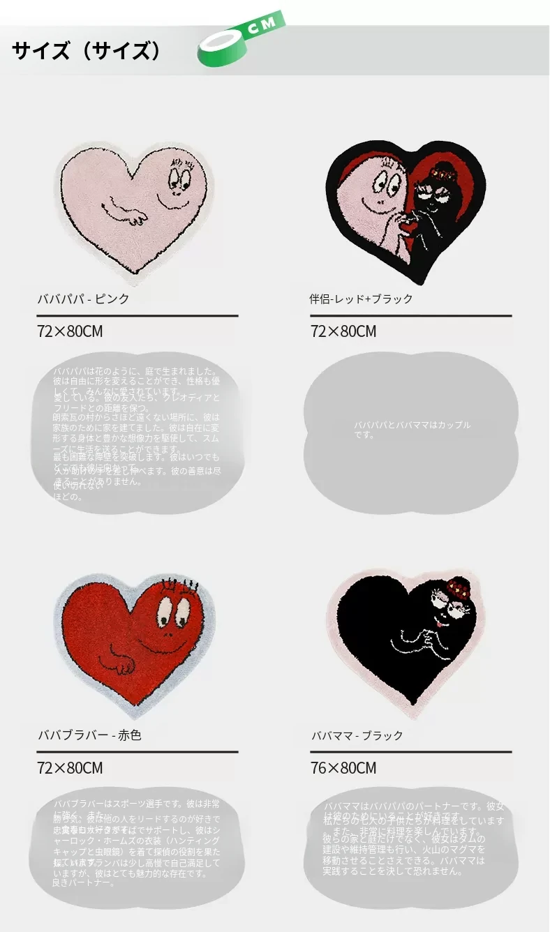 サイボス・ババパパコラボマット 心形デザイン おしゃれな子供部屋用ベッドサイドマット 吸水性抜群!インスタ映えするスタイルで、快適な寝室を演出!
