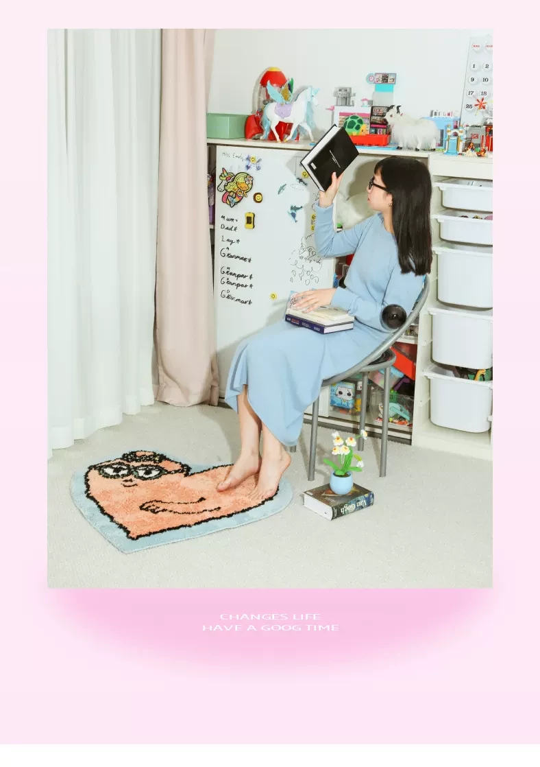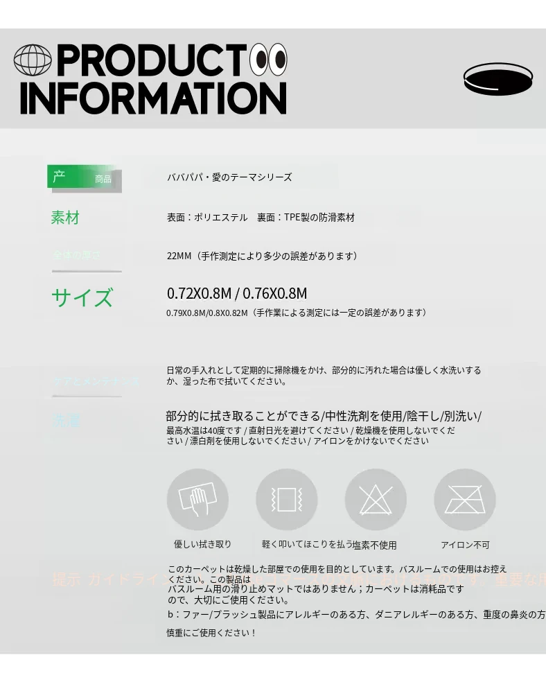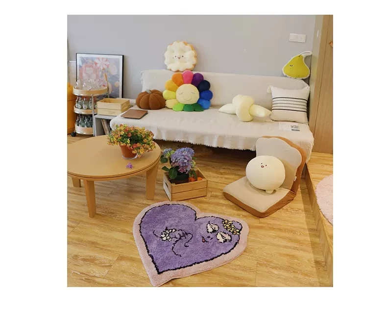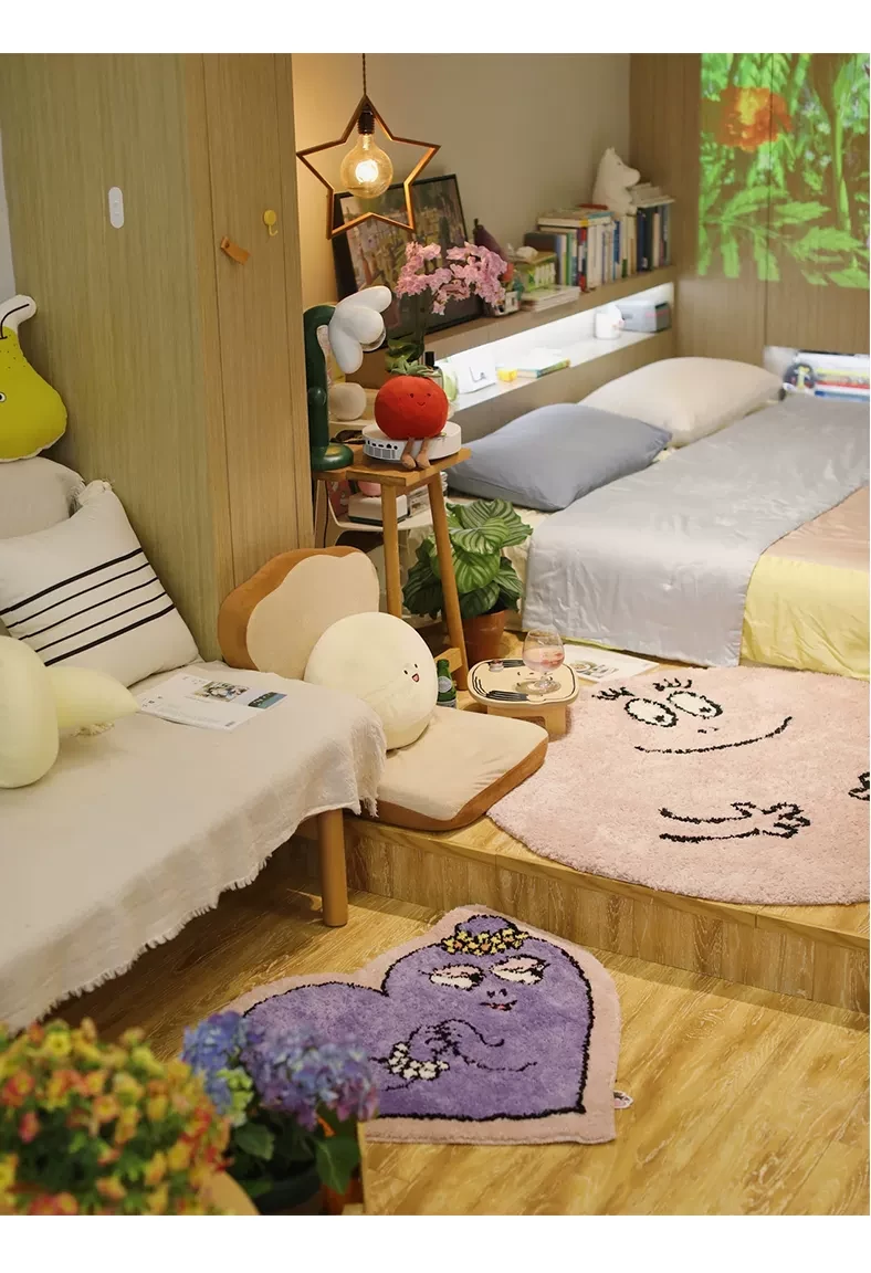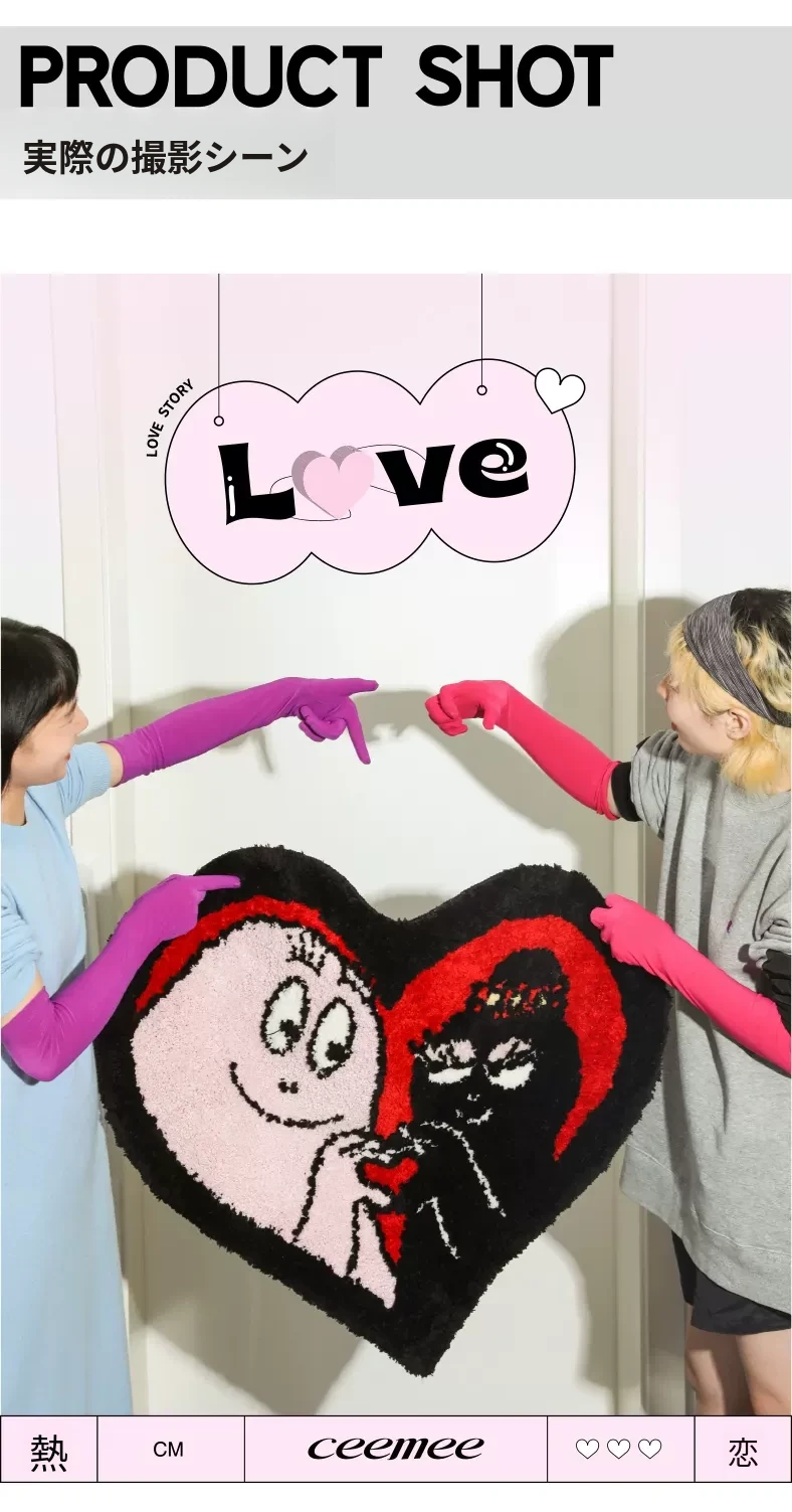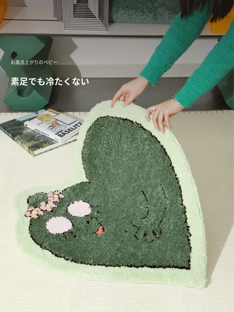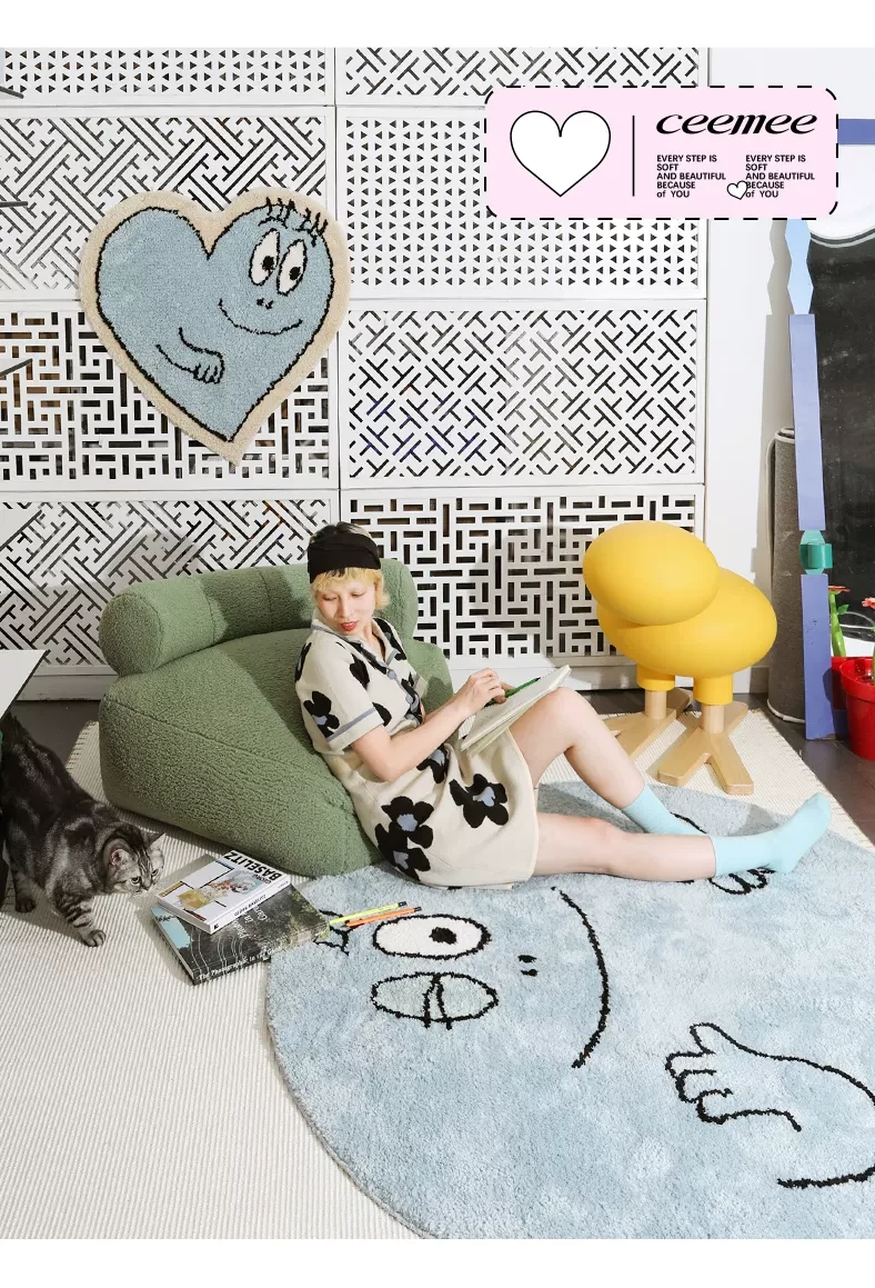 サイボス・ババパパコラボマット 心形デザイン おしゃれな子供部屋用ベッドサイドマット 吸水性抜群!インスタ映えするスタイルで、快適な寝室を演出!