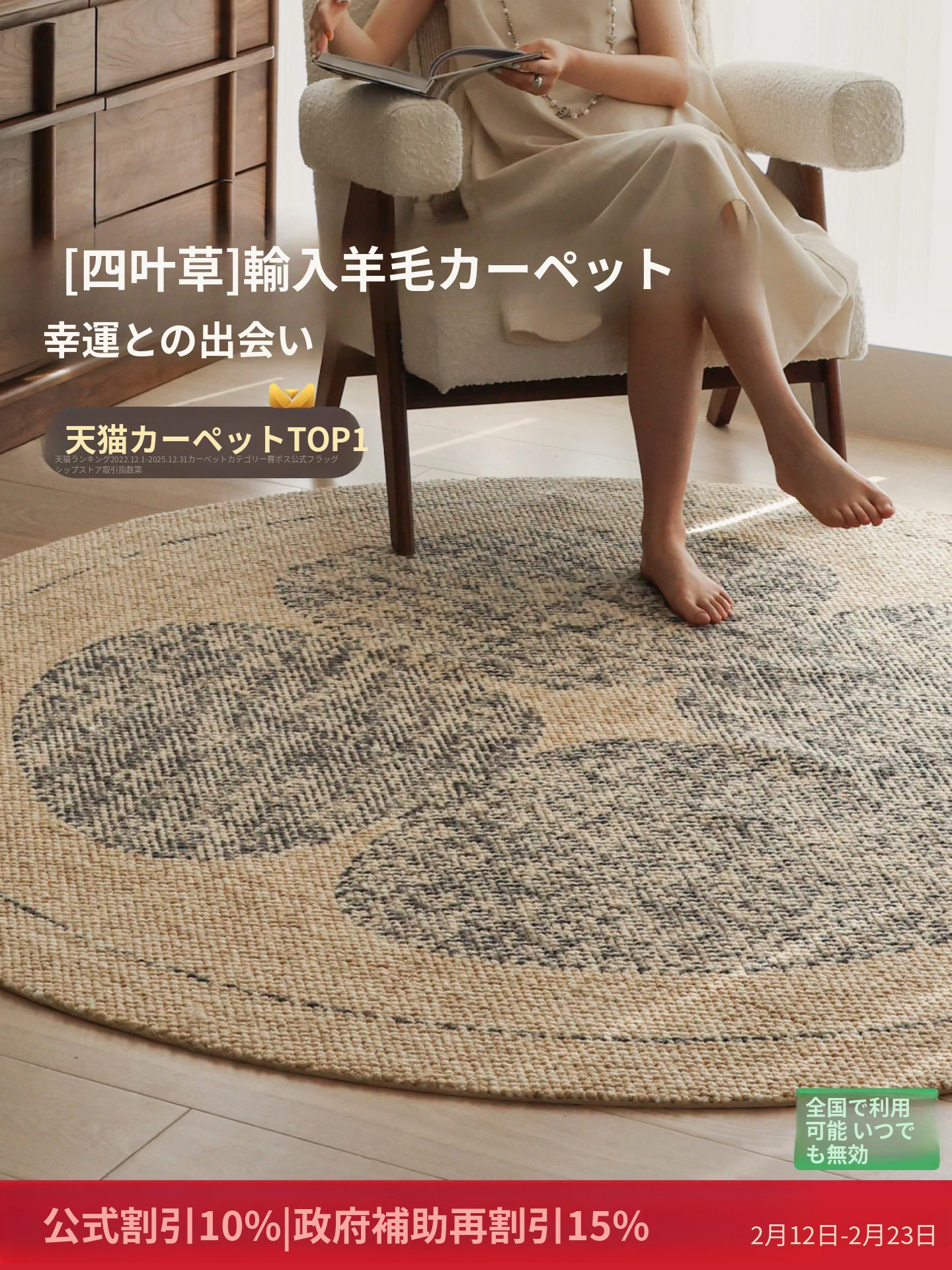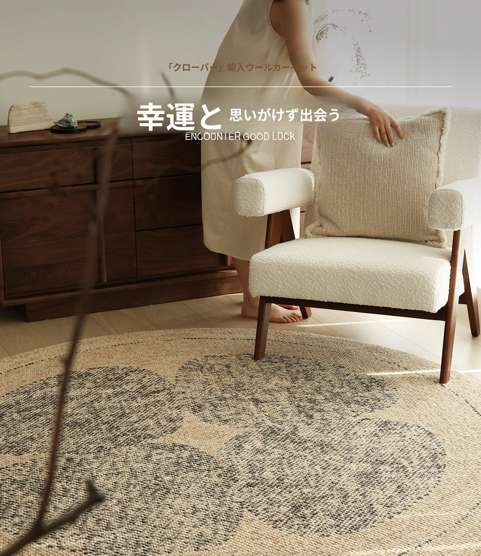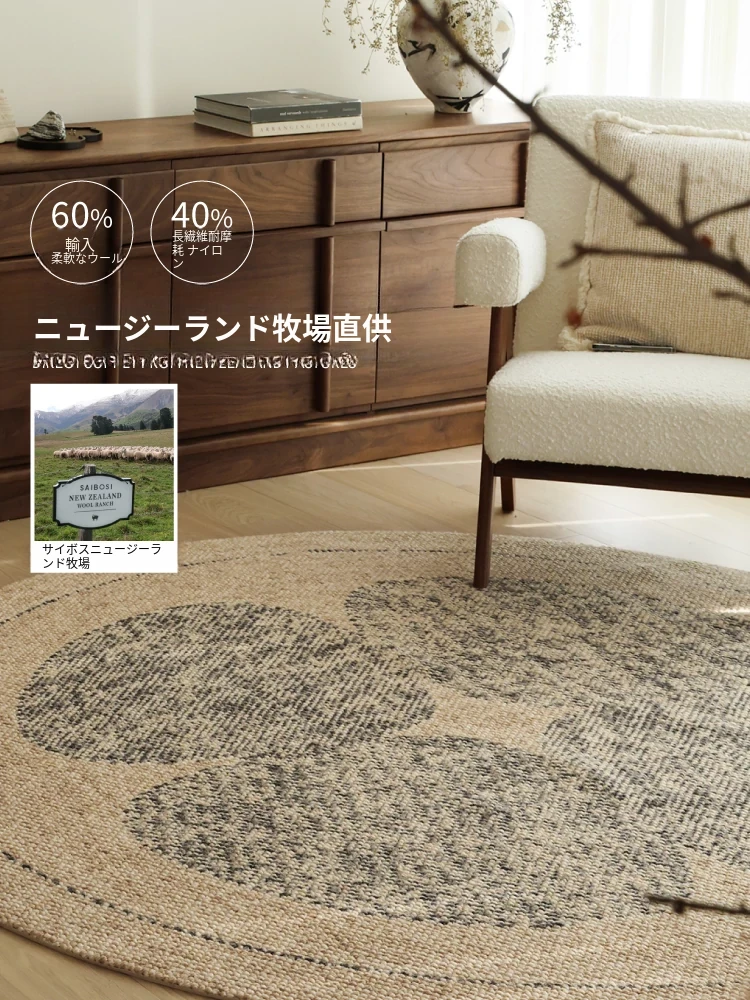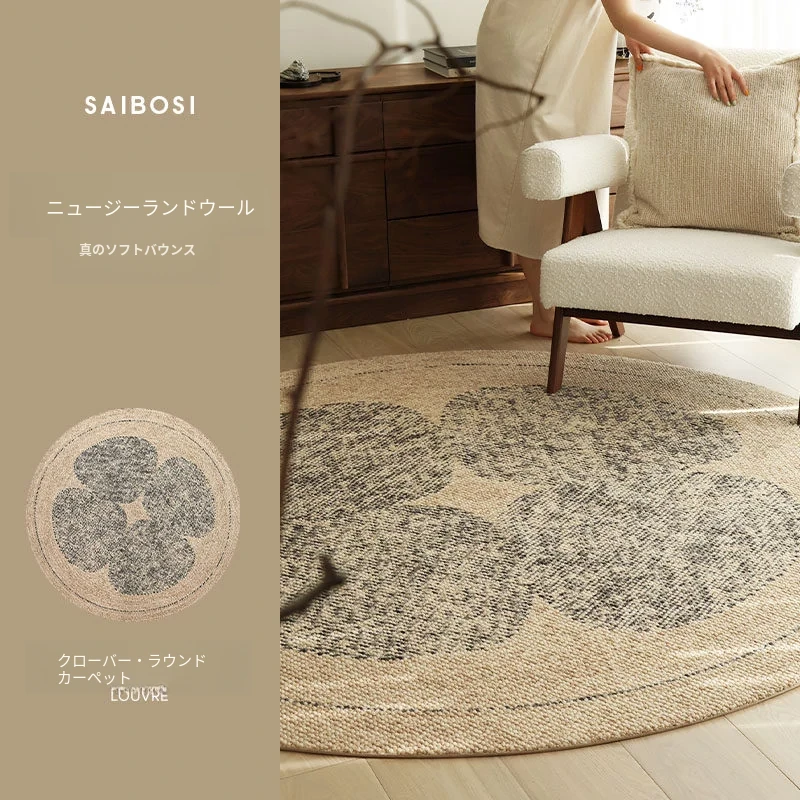 セイボス四葉クローバー輸入ウールラウンドカーペット 高級感溢れる新中式原木風 リビングや寝室にぴったりなベッドサイドマット