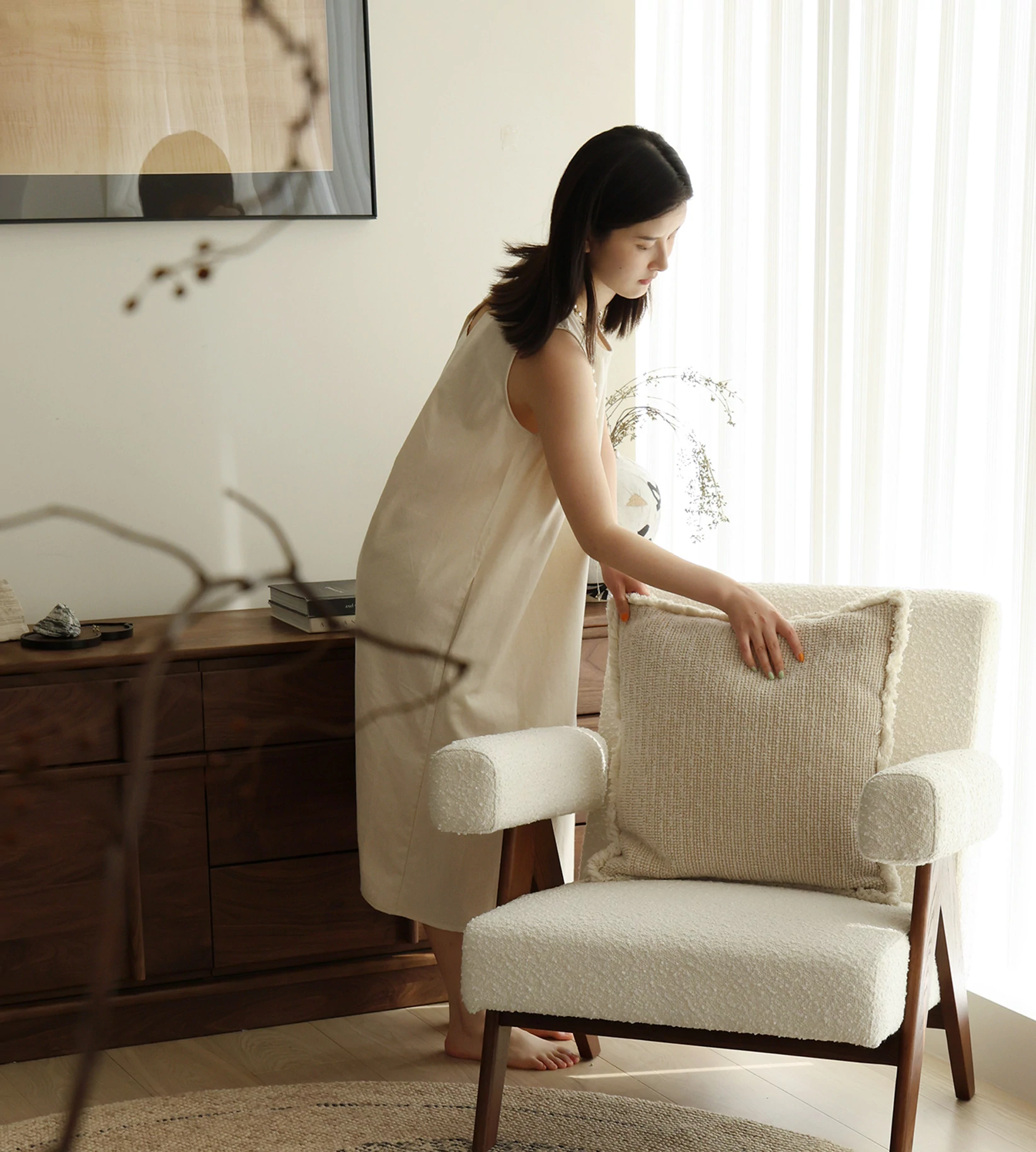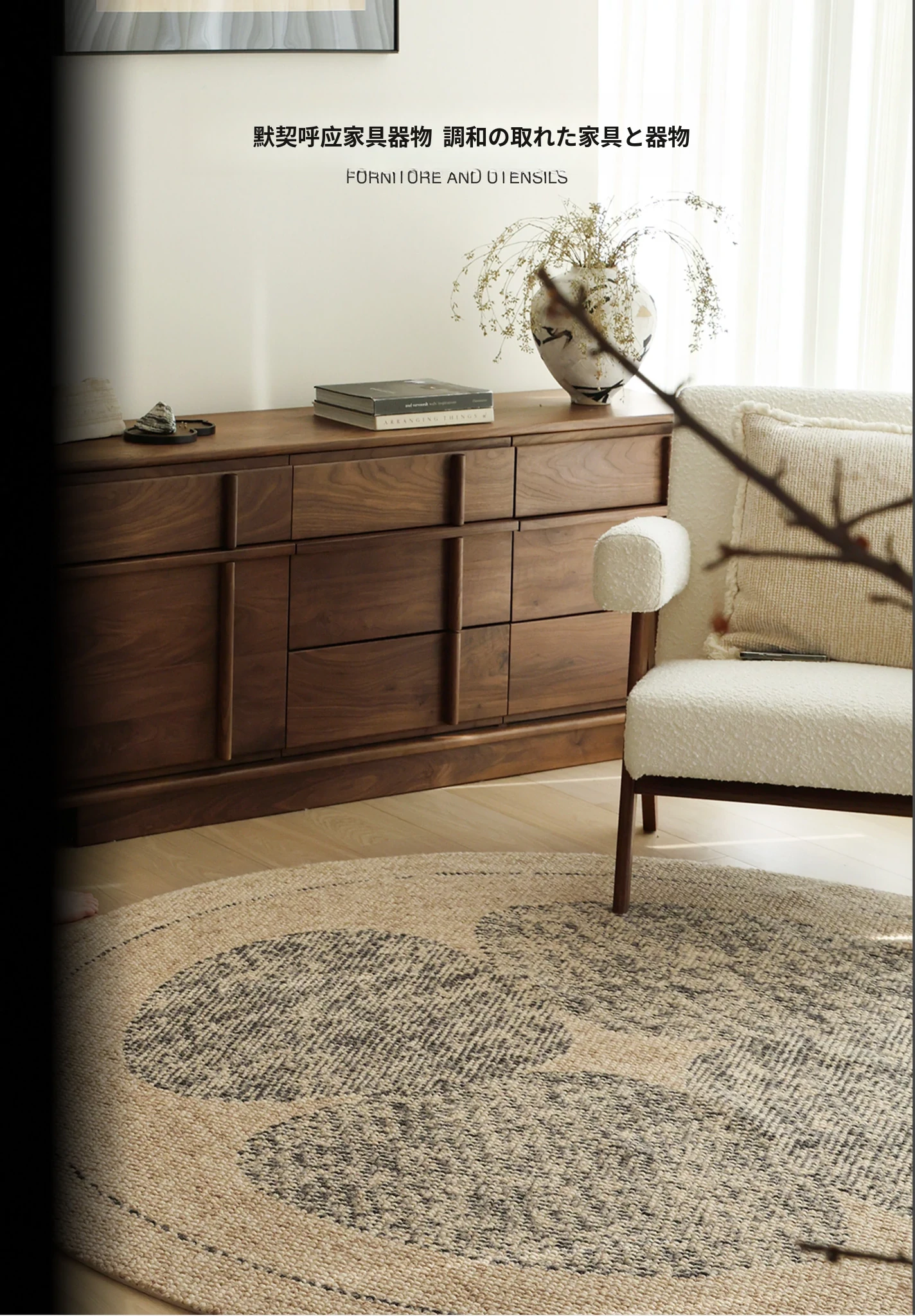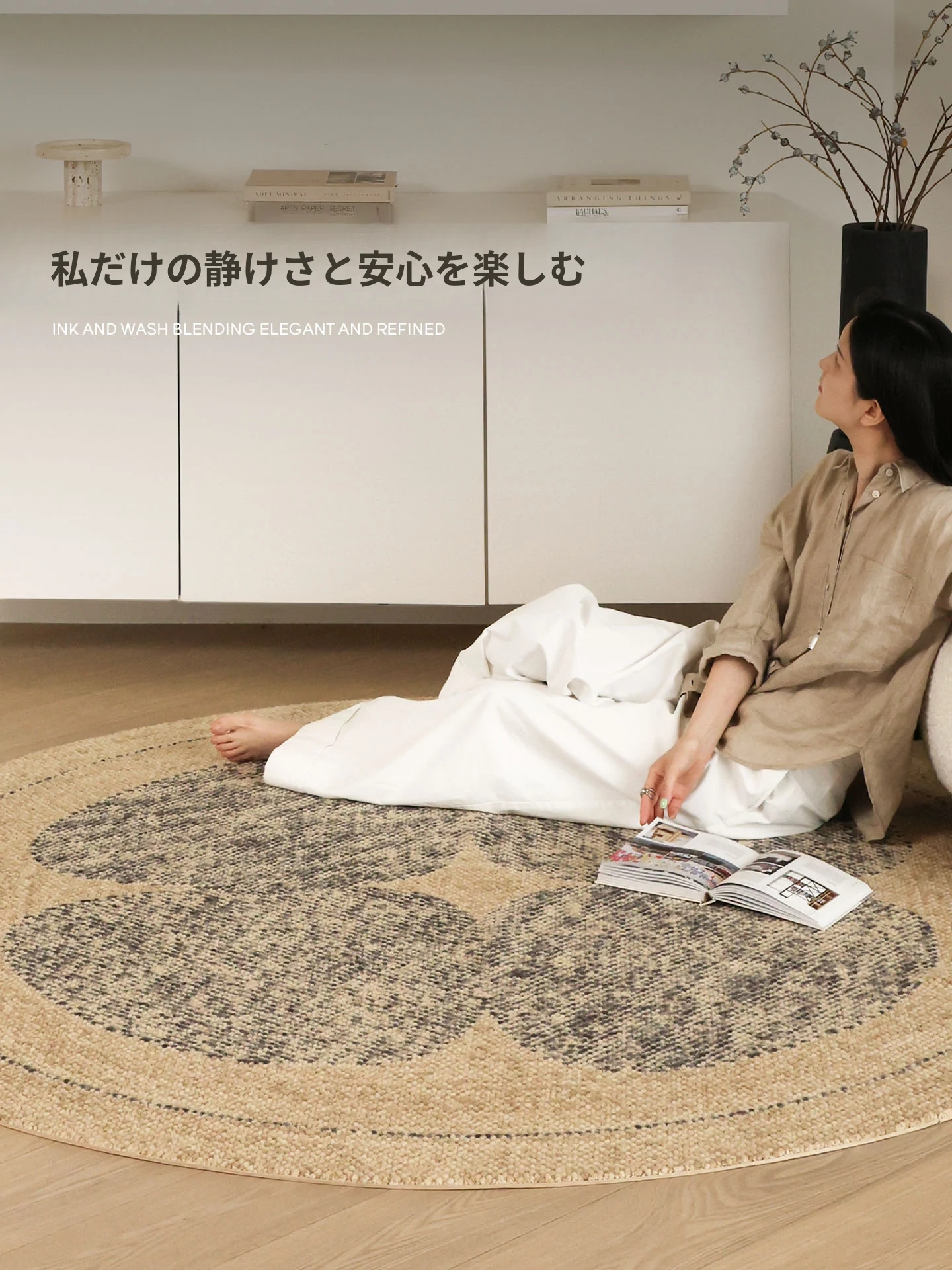セイボス四葉クローバー輸入ウールラウンドカーペット 高級感溢れる新中式原木風 リビングや寝室にぴったりなベッドサイドマット