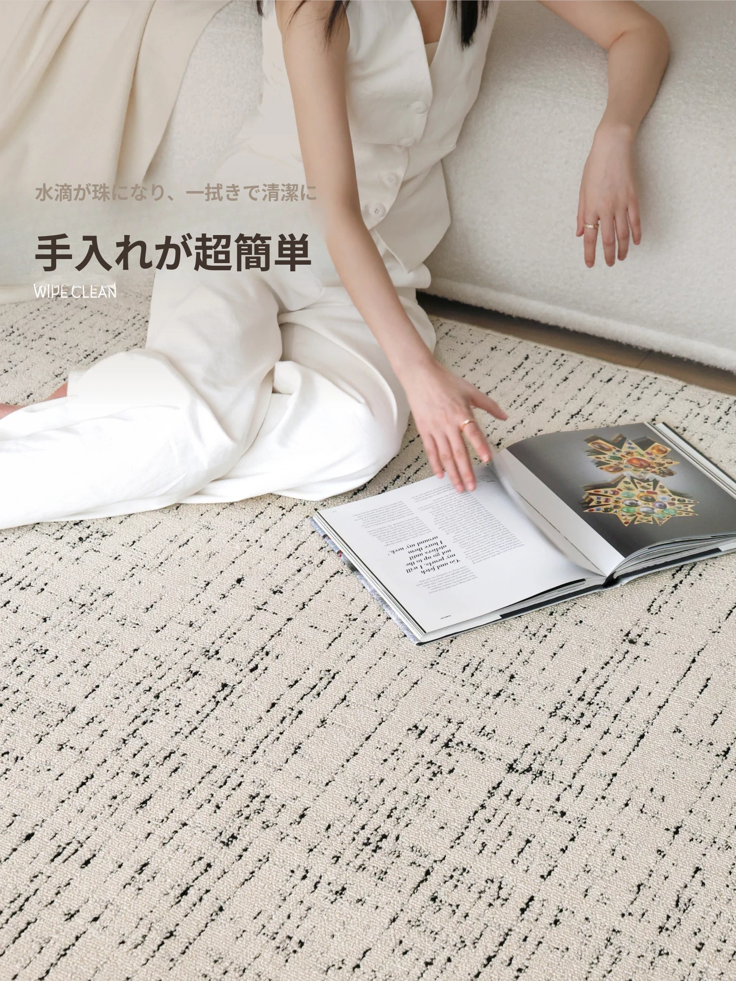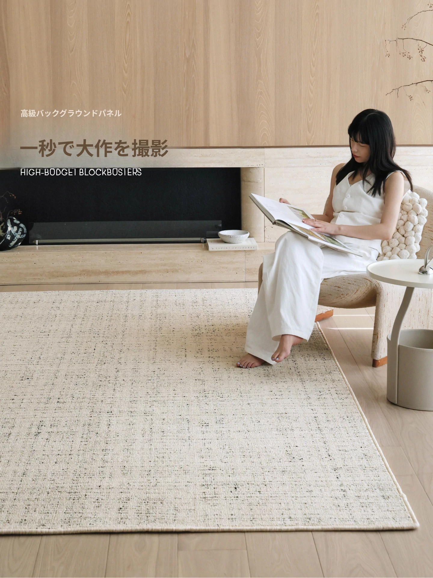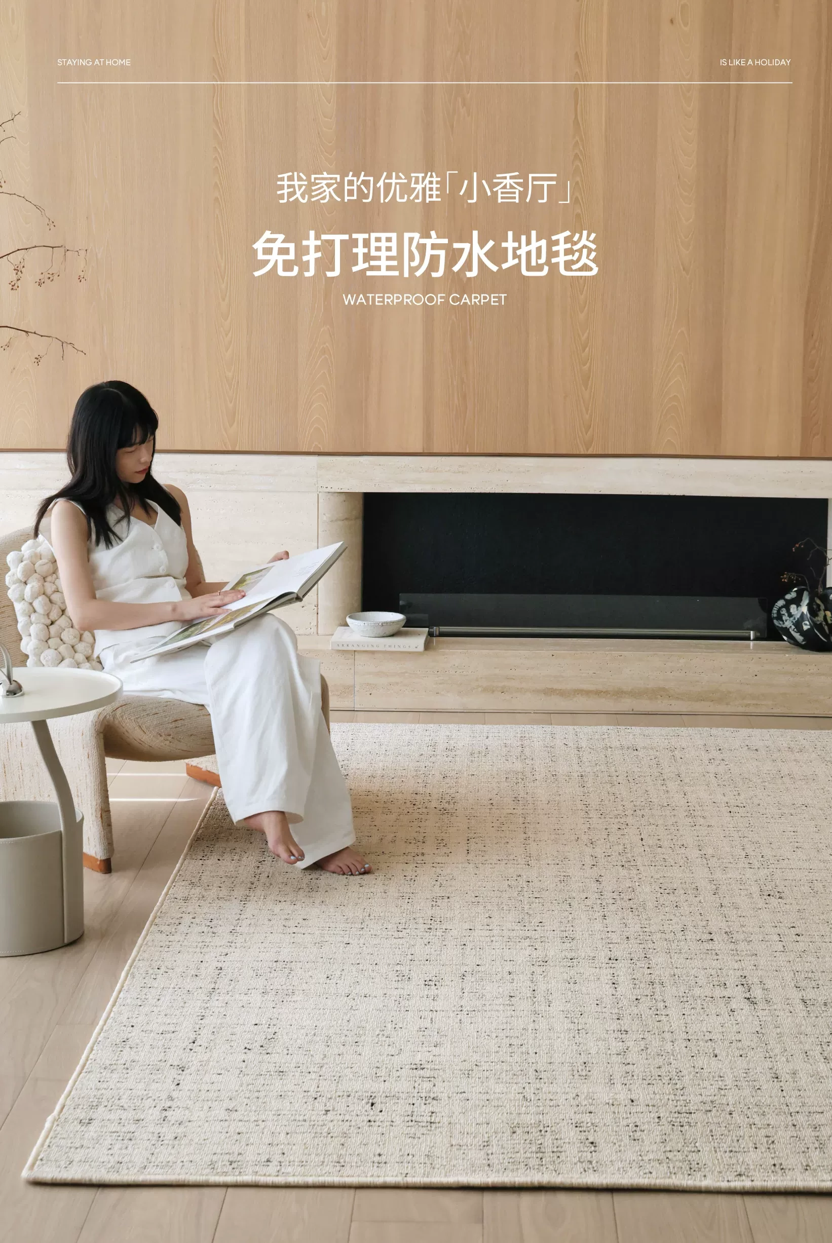 セイボス小香堂 防水カーペット 高級感漂うフレンチスタイルのナチュラルウッドとクリーム色のミニマリストデザイン ソファやリビングルーム、寝室に最適!