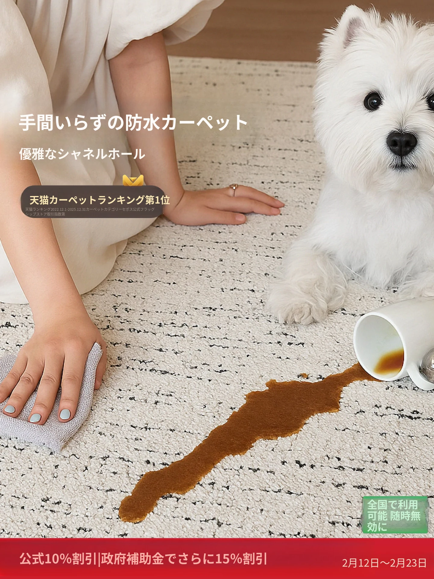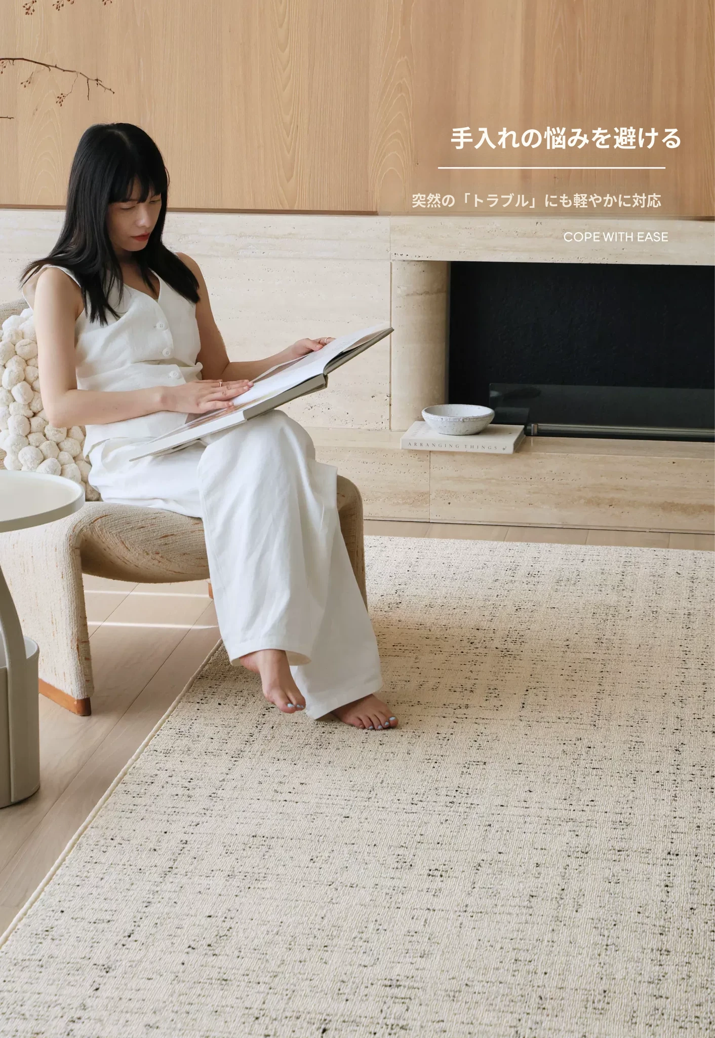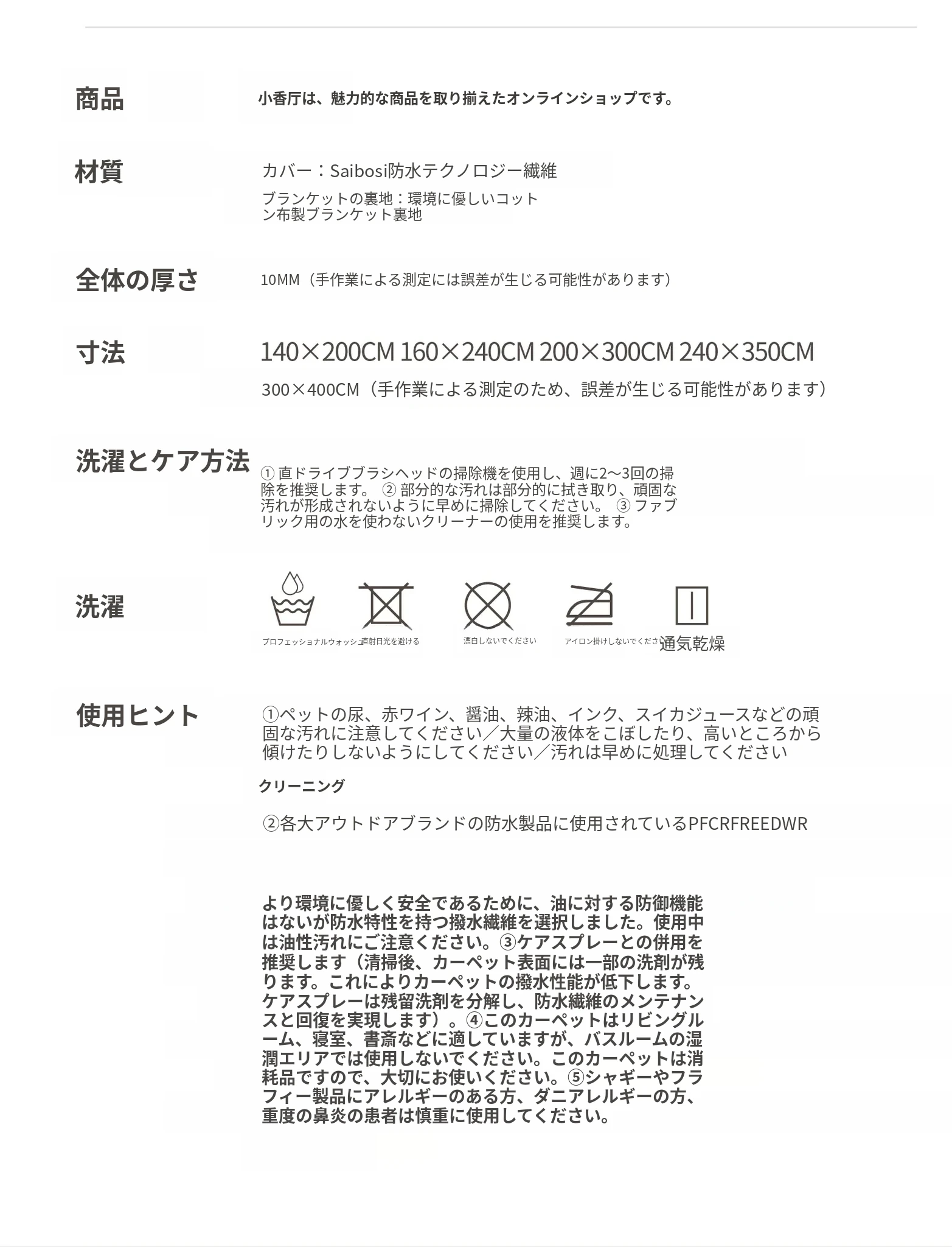 セイボス小香堂 防水カーペット 高級感漂うフレンチスタイルのナチュラルウッドとクリーム色のミニマリストデザイン ソファやリビングルーム、寝室に最適!