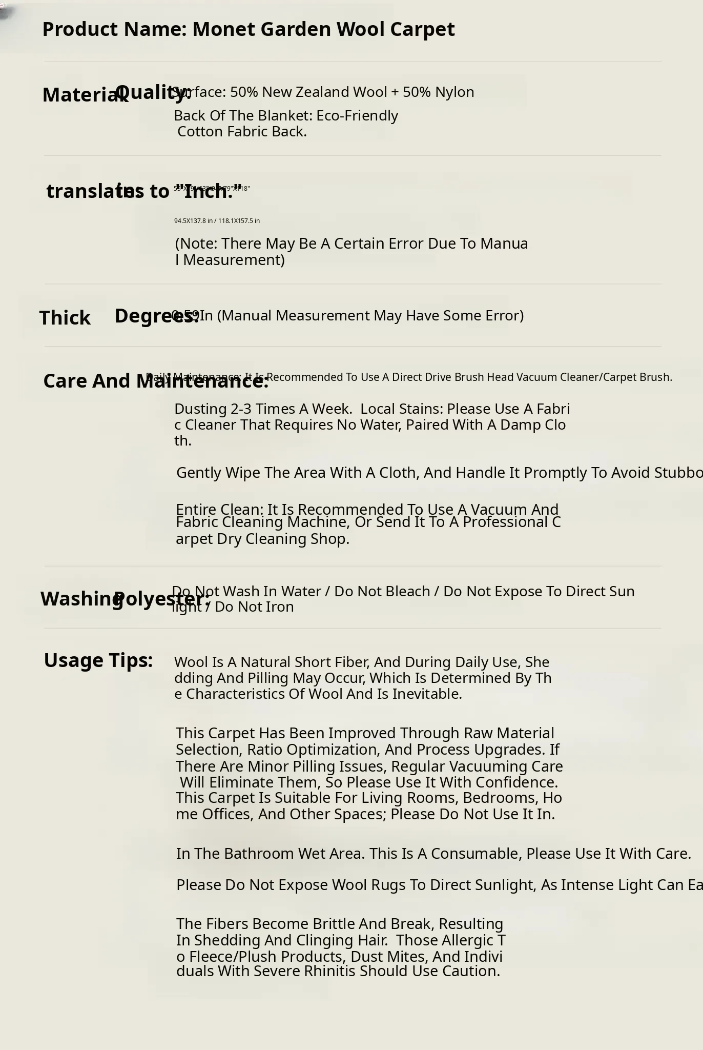 Sibos Monet Garden Imported New Zealand Wool Carpet - Luxurious French Style for Living Room and Bedroom, Perfect for Elegant Accommodations