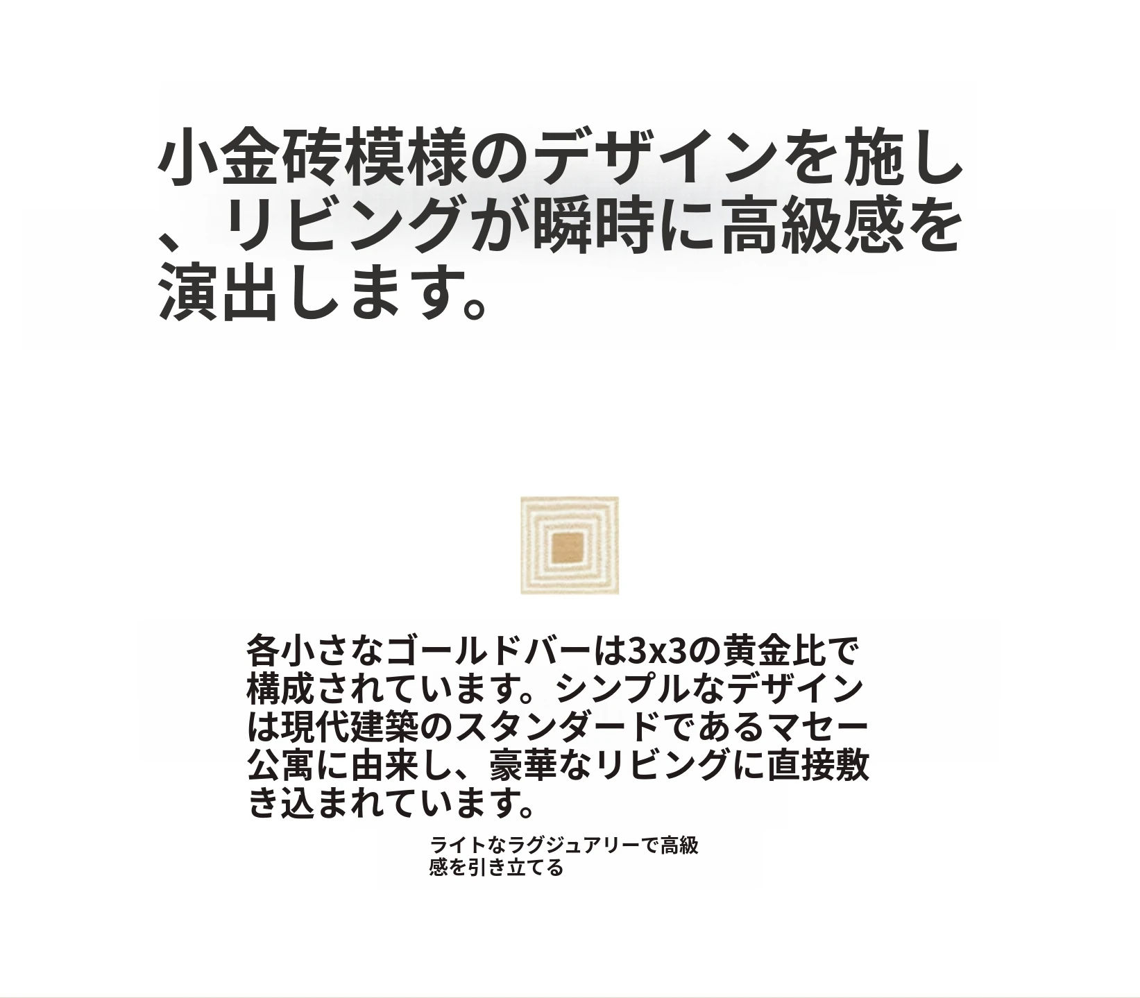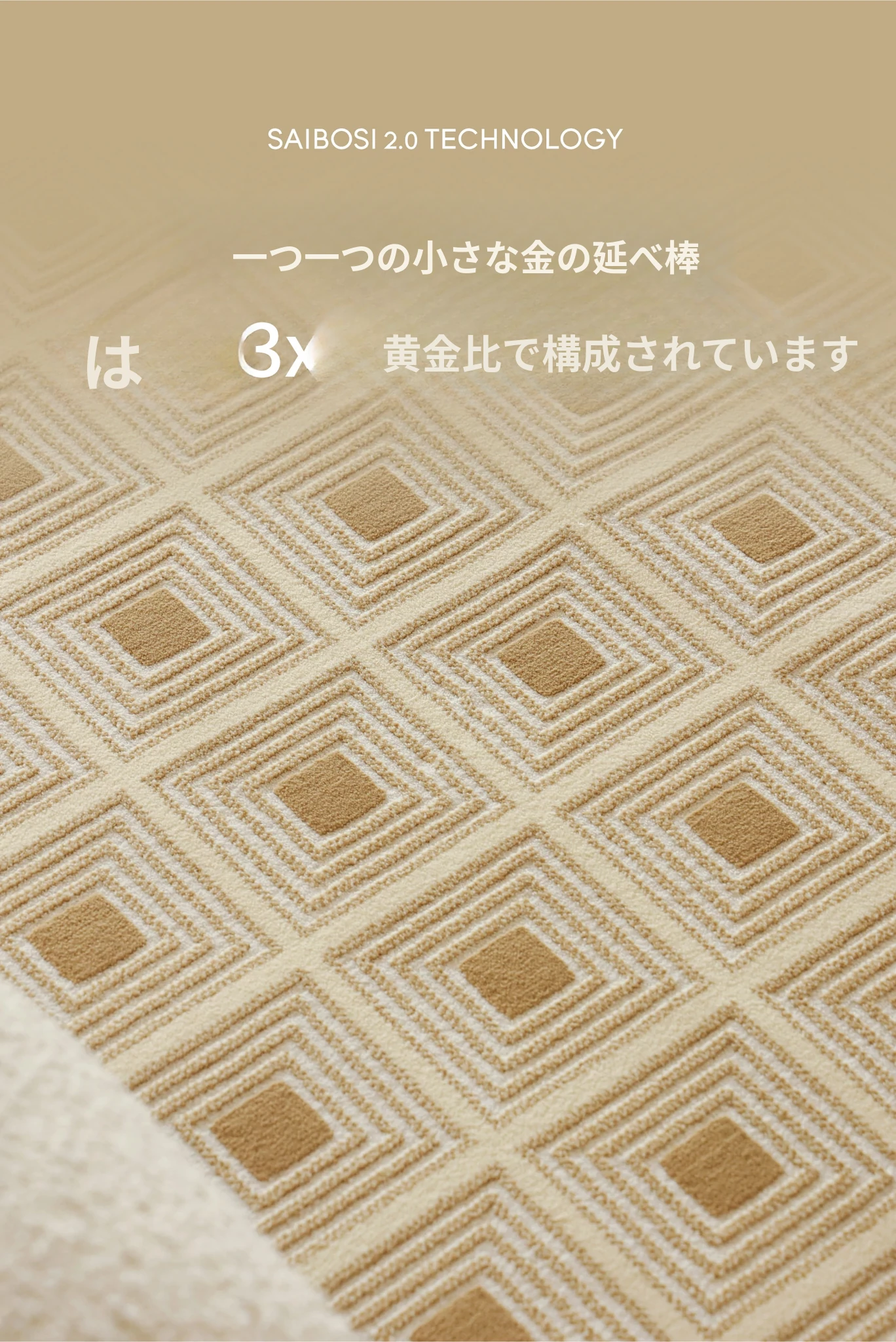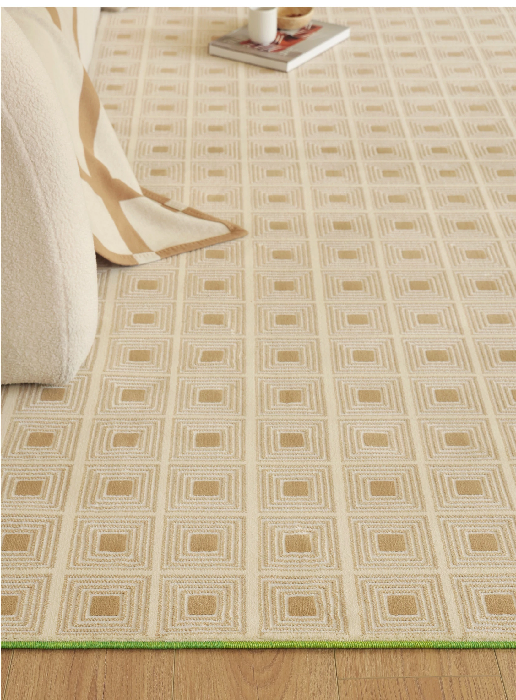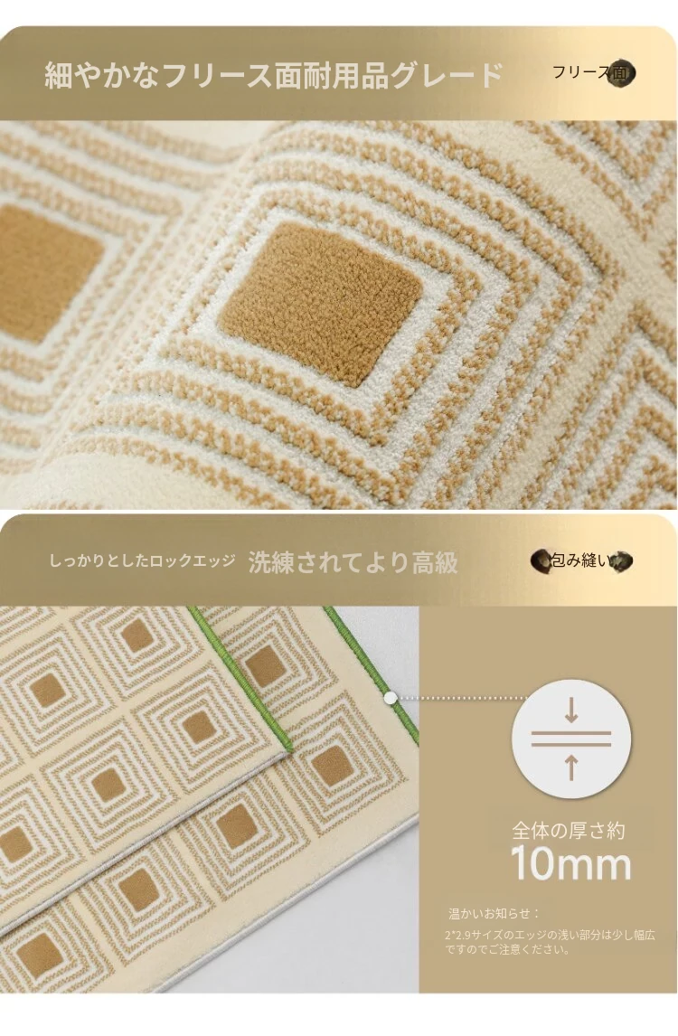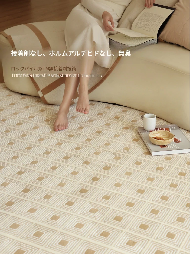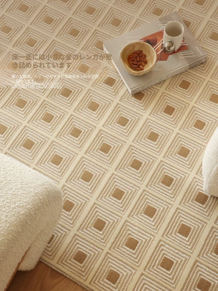セボス 無接着剤リビングカーペット 抗菌・ホルムアルデヒドフリー 小さなゴールドタイルの高級感 軽やかなラグジュアリー フレンチクリームスタイル 寝室に最適!