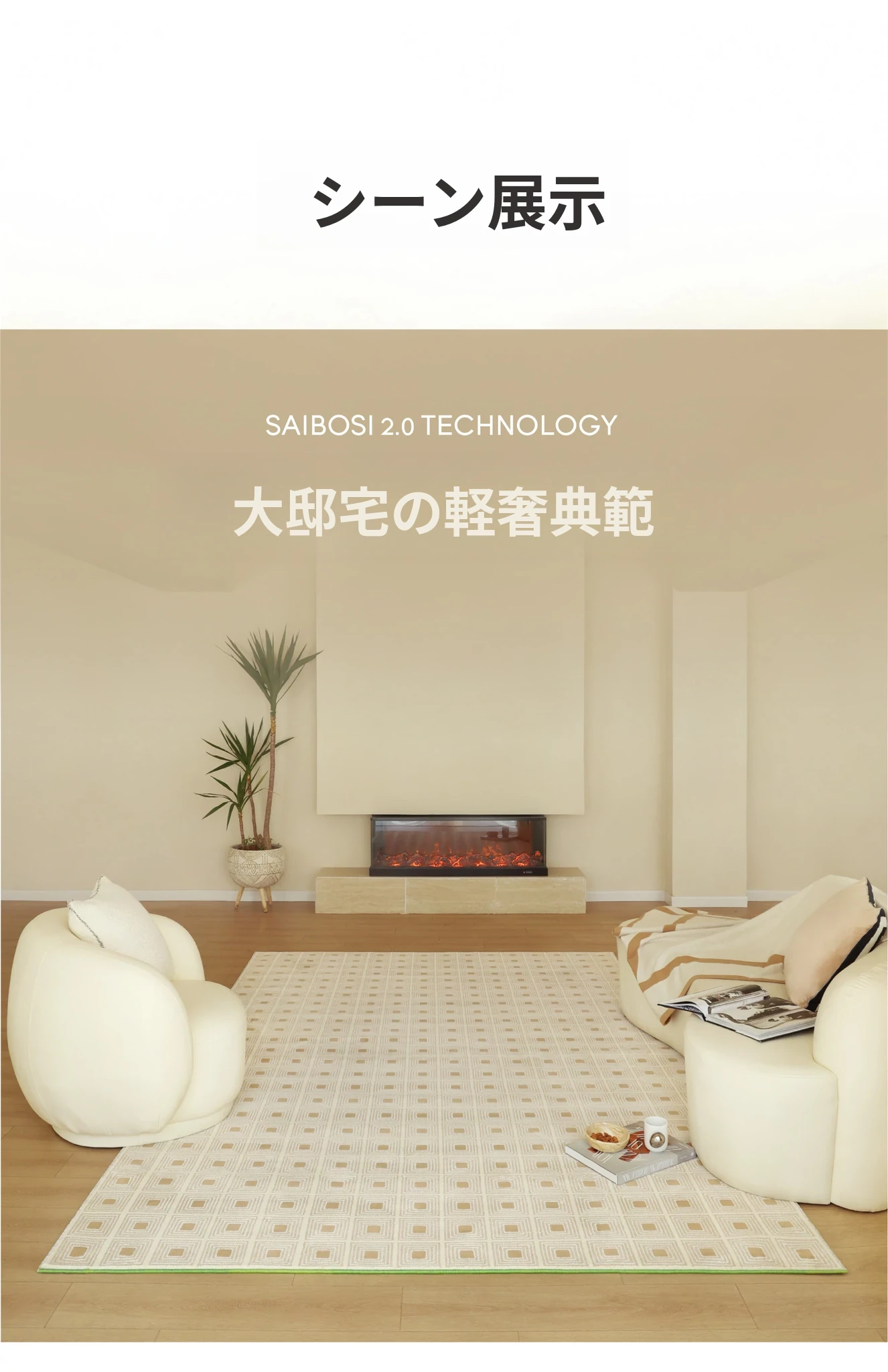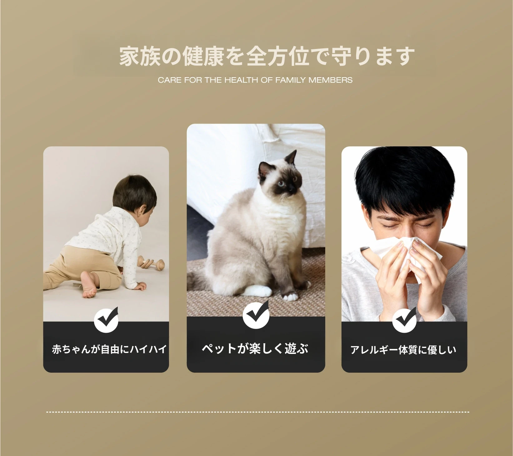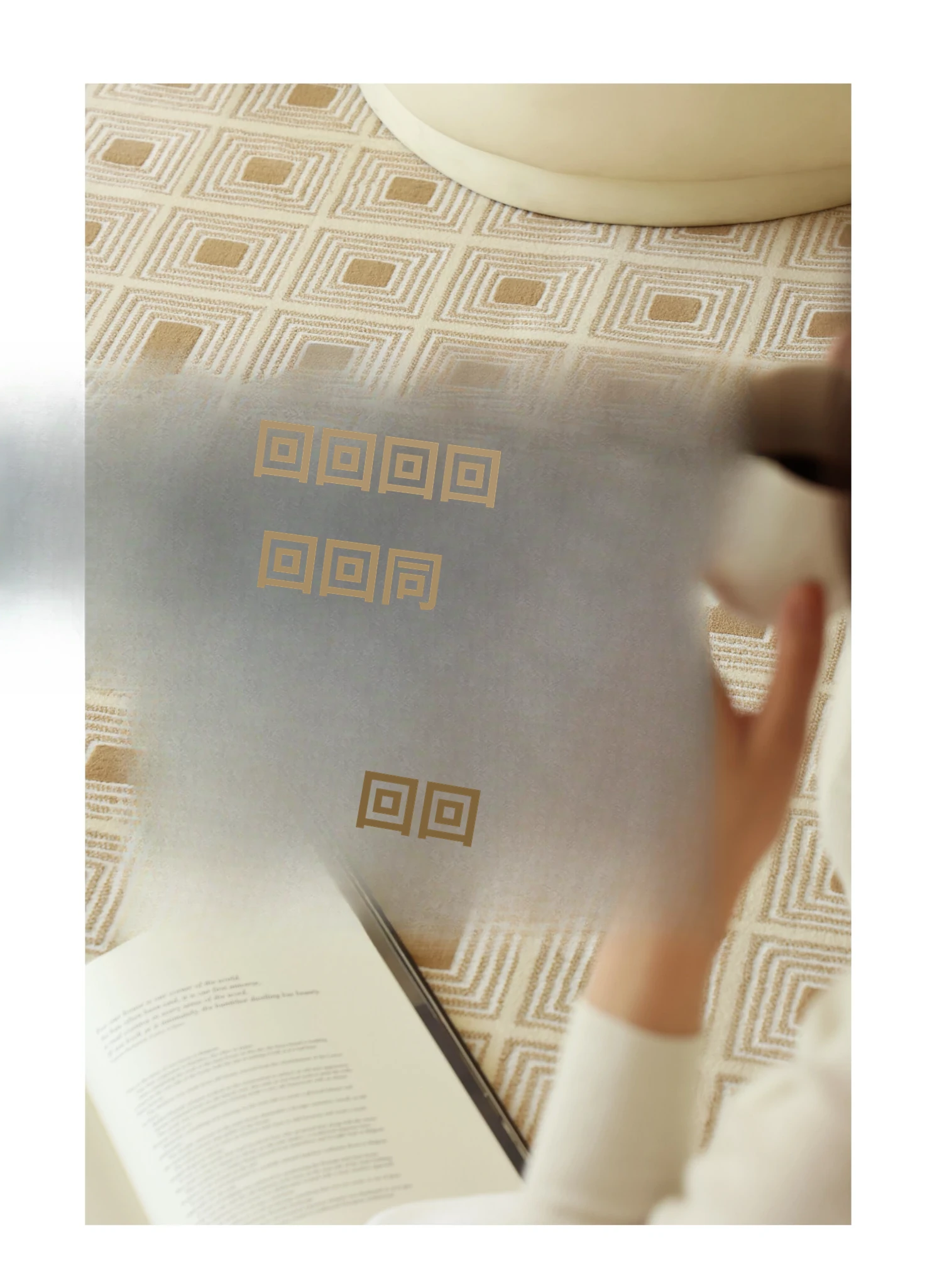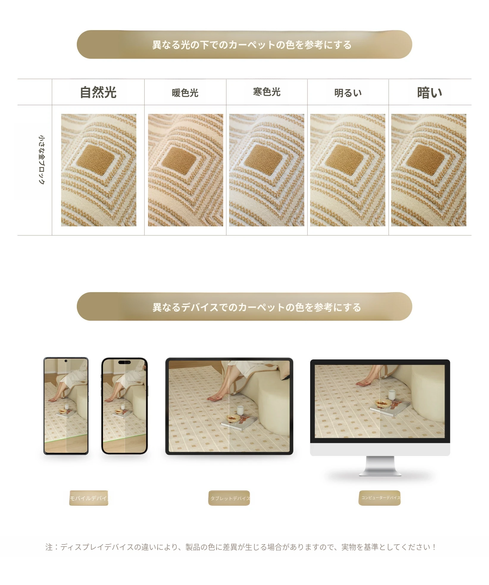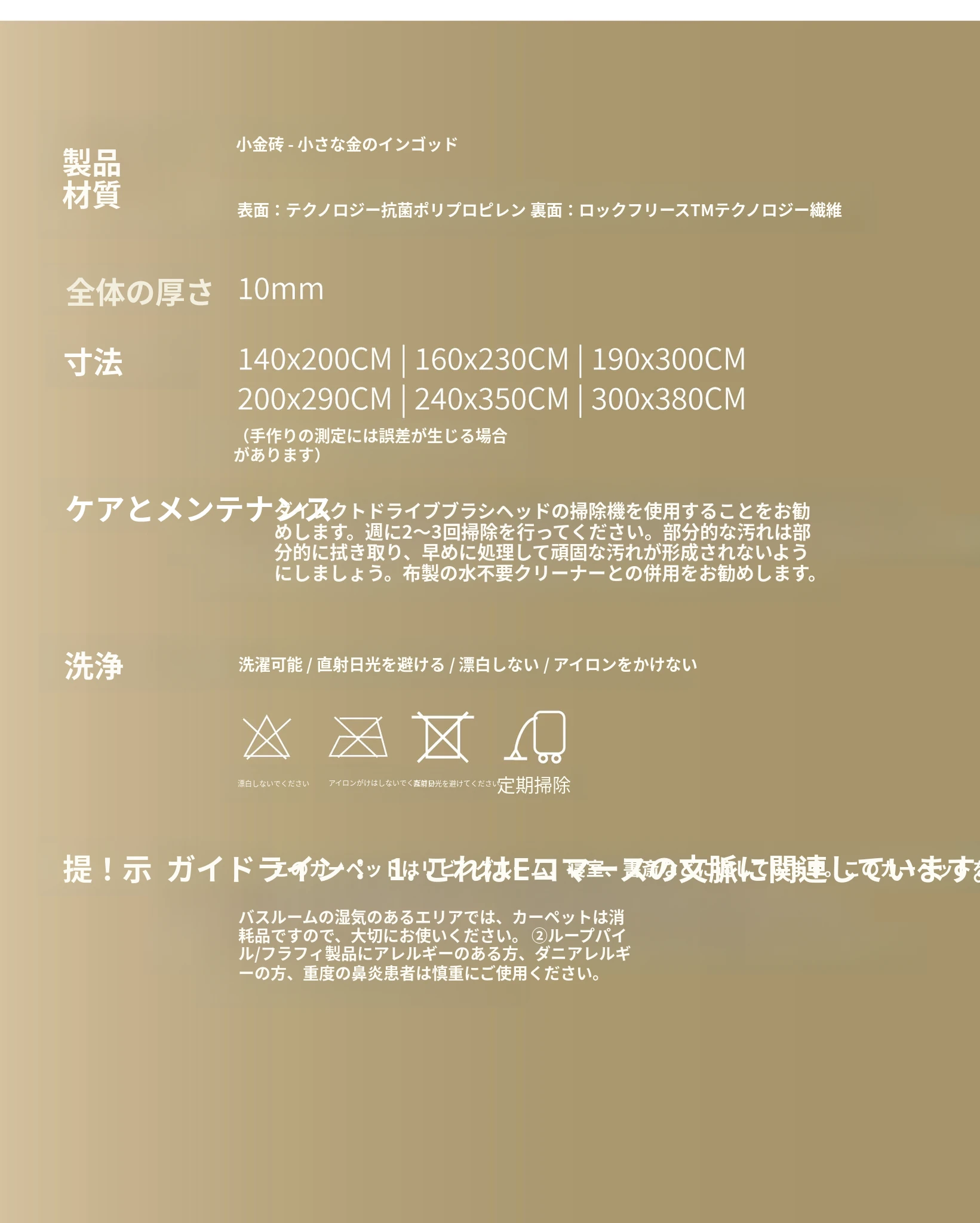 セボス 無接着剤リビングカーペット 抗菌・ホルムアルデヒドフリー 小さなゴールドタイルの高級感 軽やかなラグジュアリー フレンチクリームスタイル 寝室に最適!