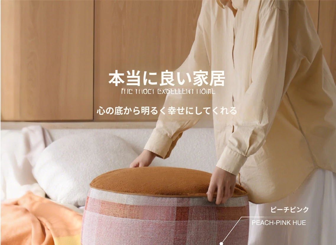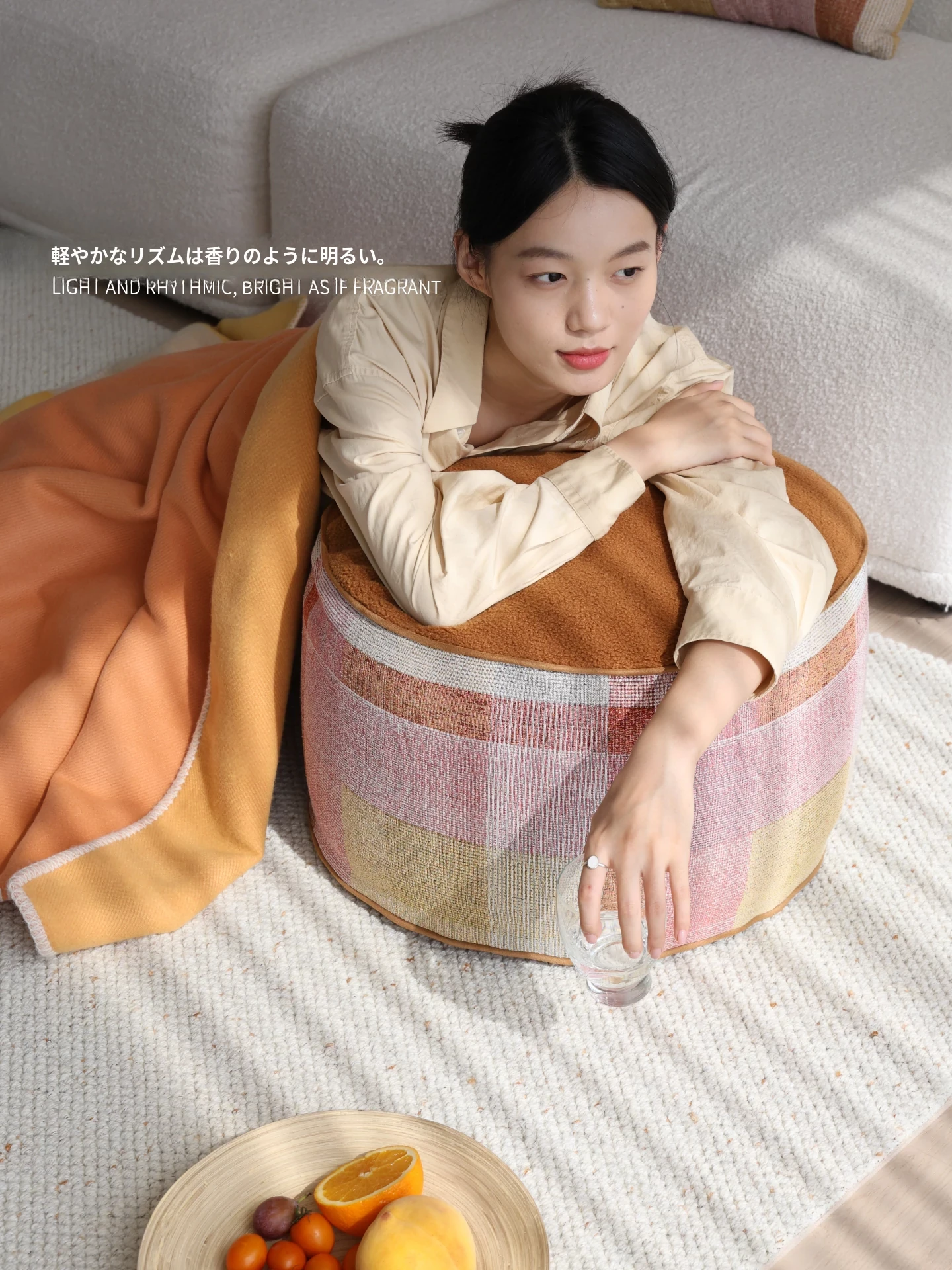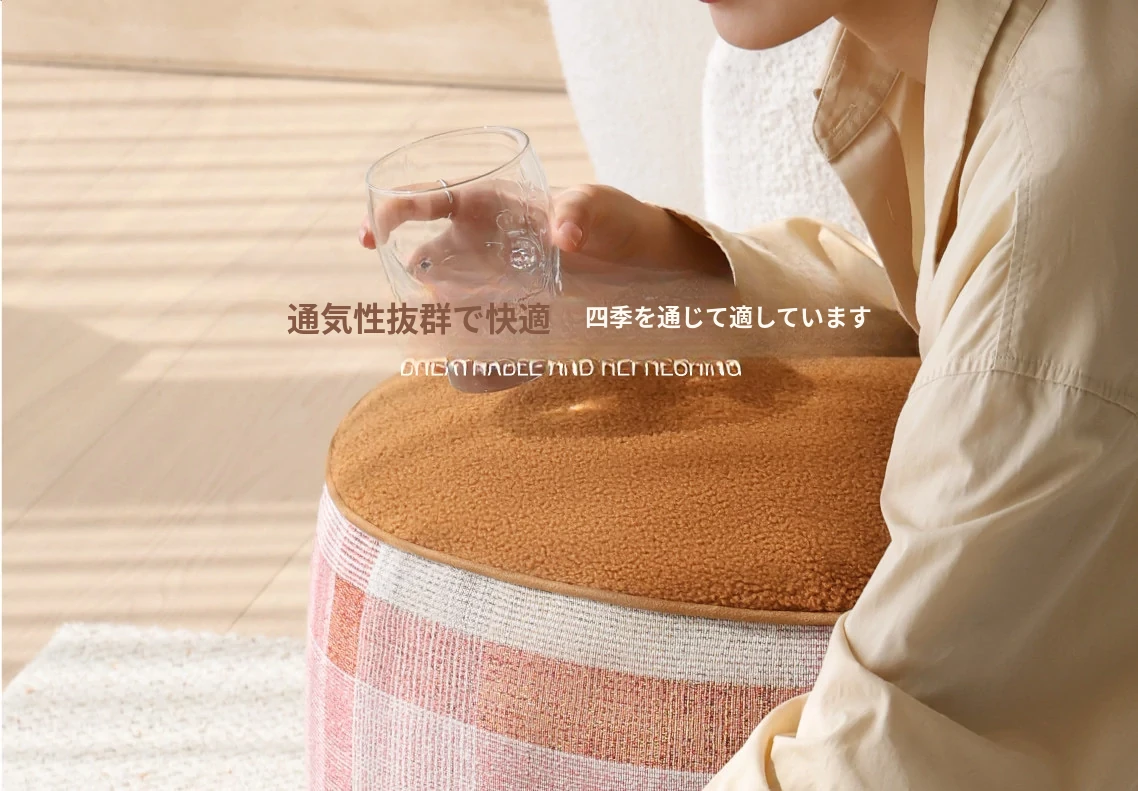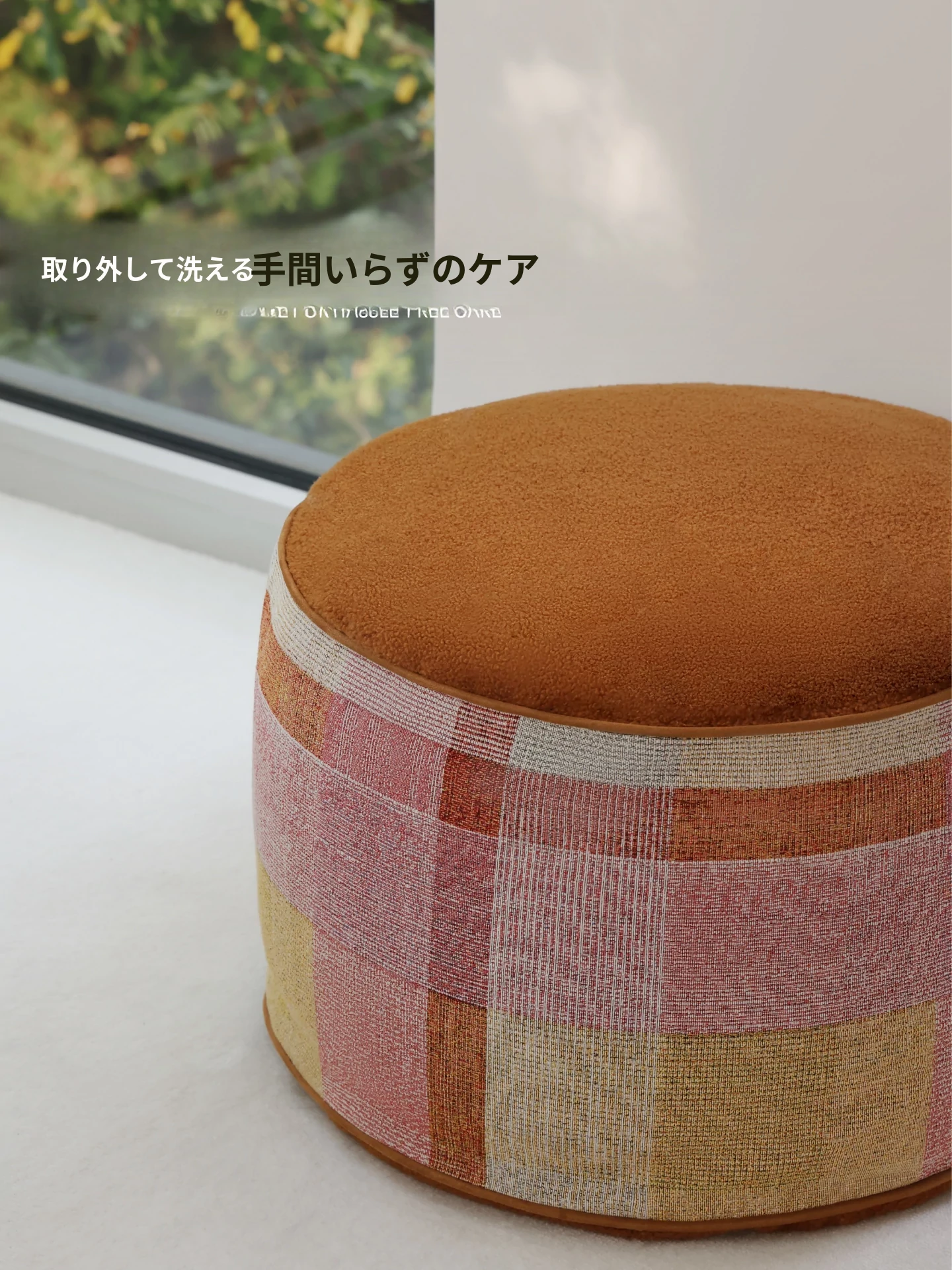 セイボス蜜桃クッションマット|取り外し可能でお手入れ簡単!高級感あふれるデザインのスツール|玄関・寝室・リビングに最適な軽やかさとスタイルを提供。