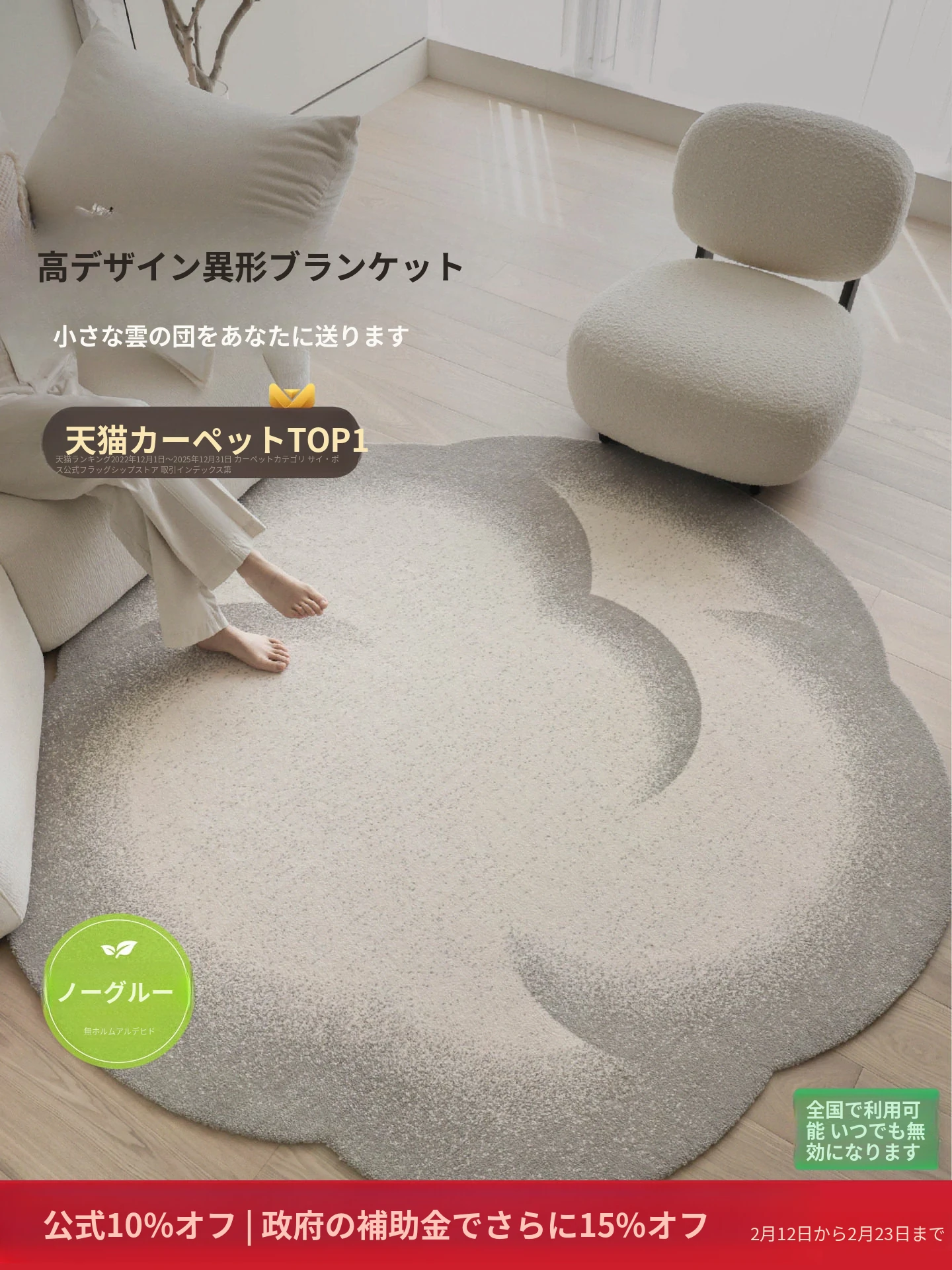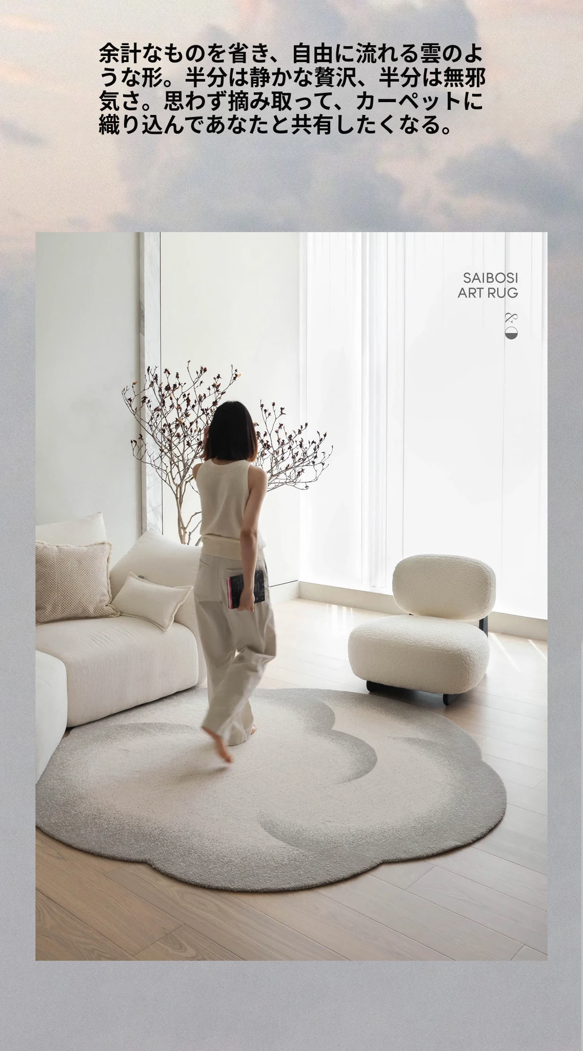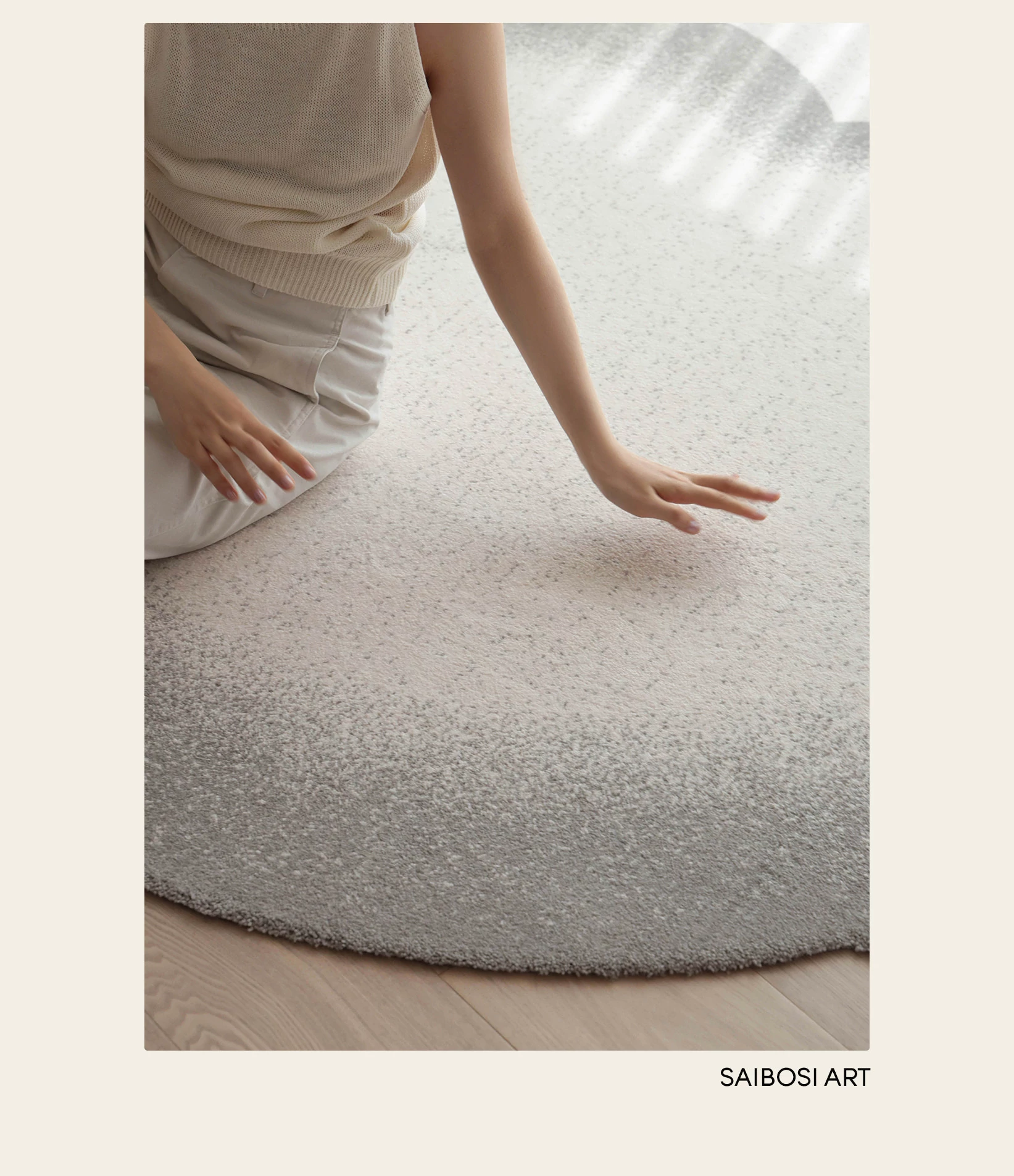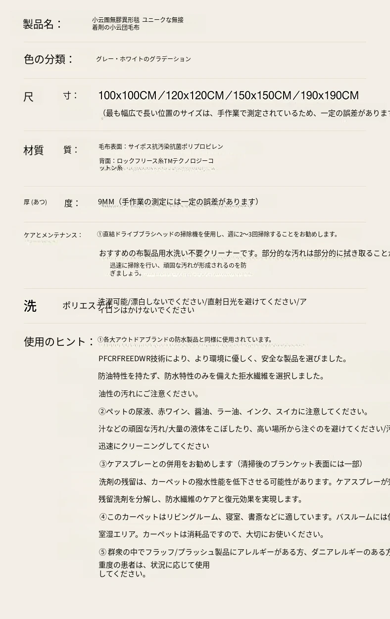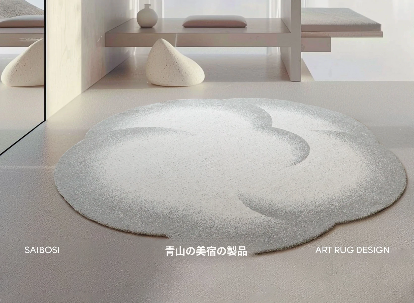 セイボス小雲団 無接着剤ラウンドカーペット 高級感あふれるシンプルデザイン リビング・寝室・ベッドサイド・ウォークインクローゼットに最適
