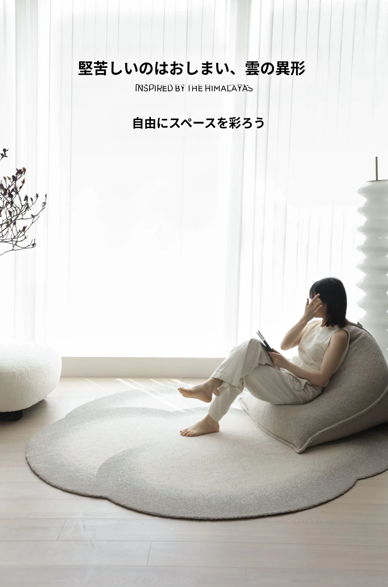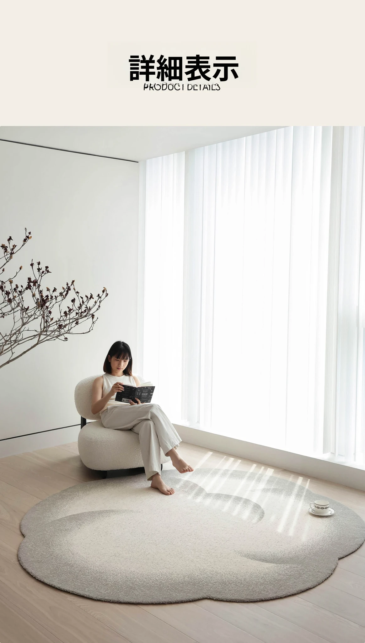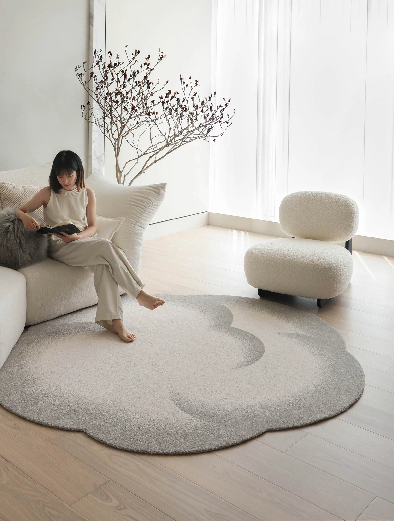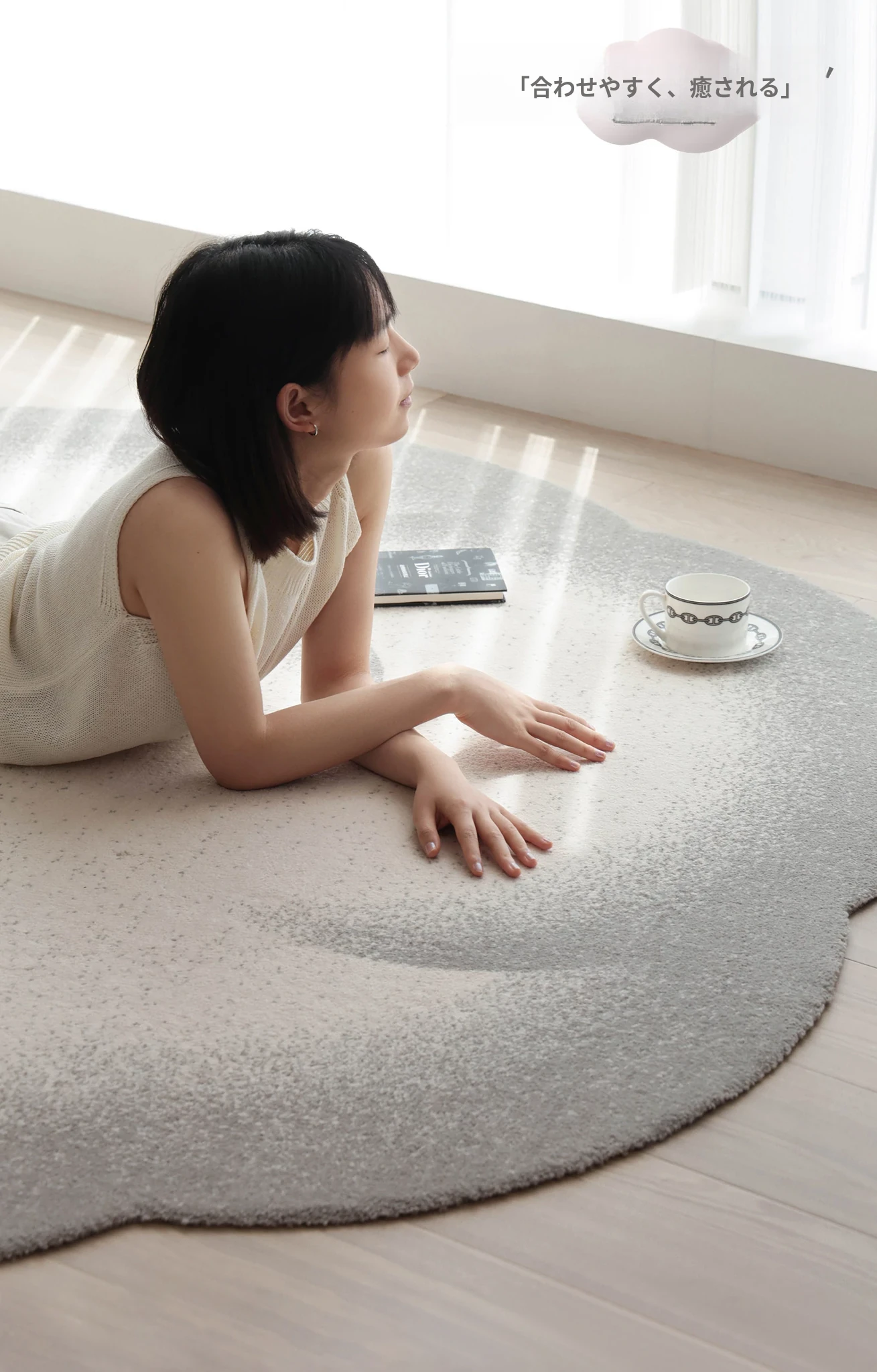 セイボス小雲団 無接着剤ラウンドカーペット 高級感あふれるシンプルデザイン リビング・寝室・ベッドサイド・ウォークインクローゼットに最適
