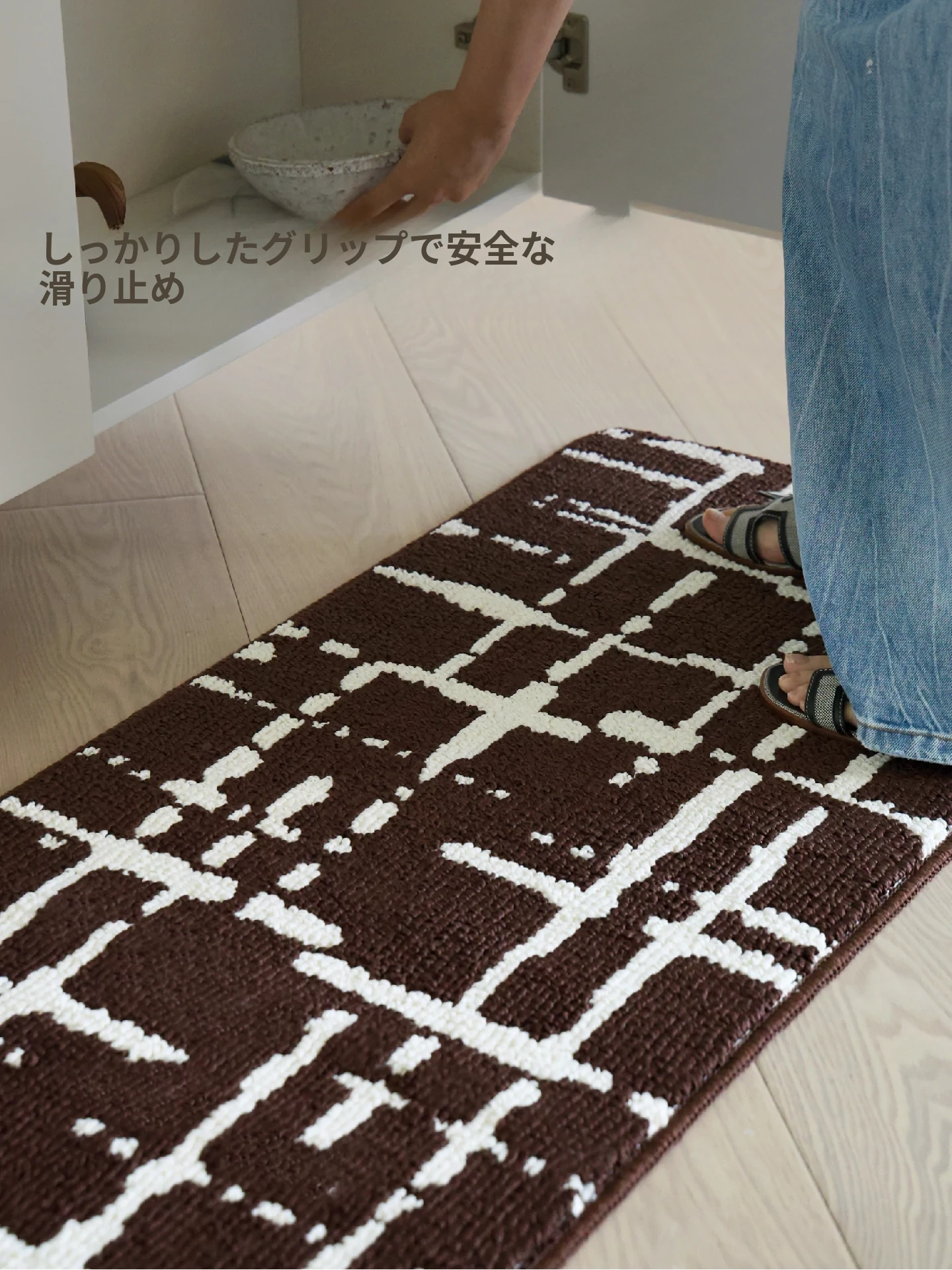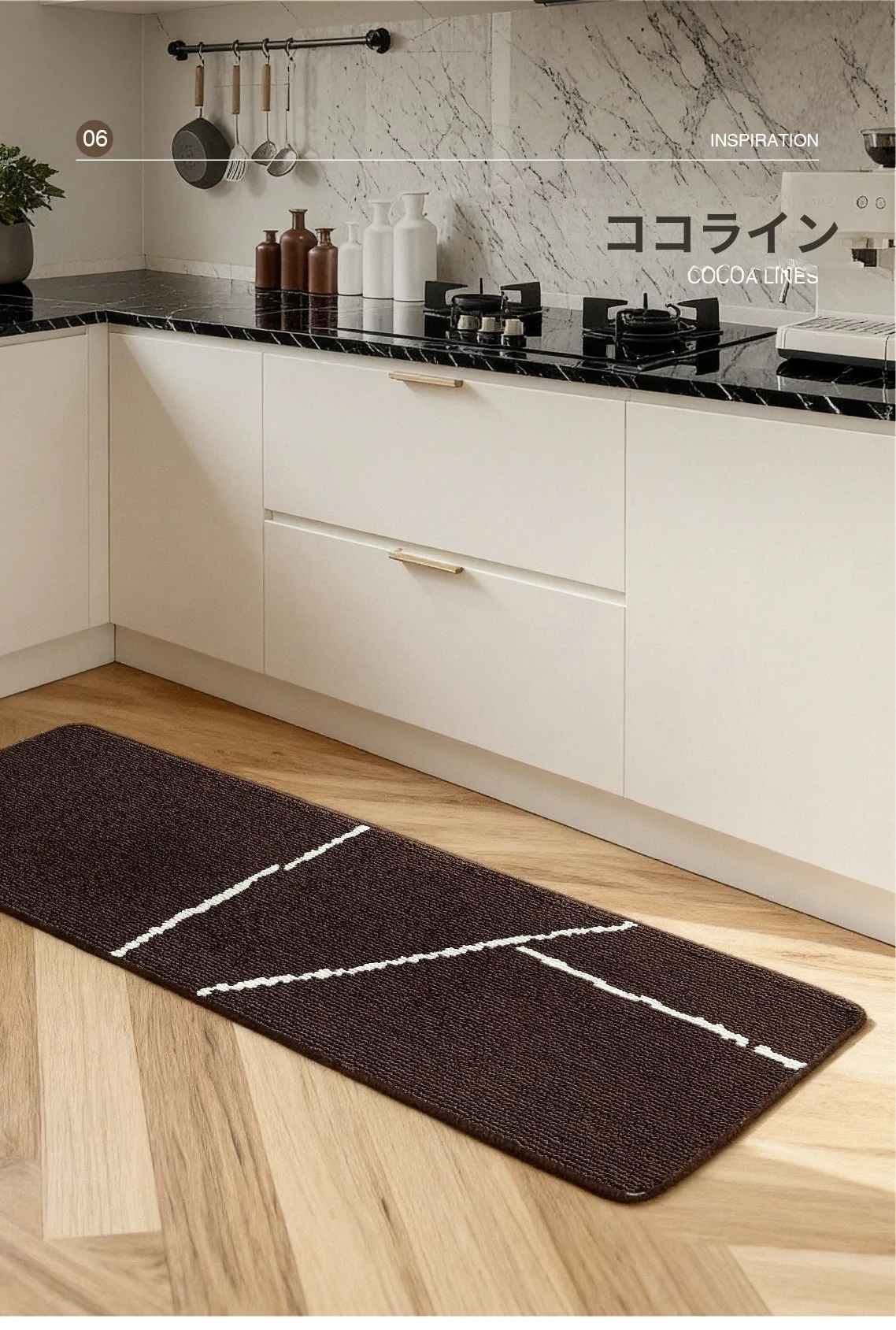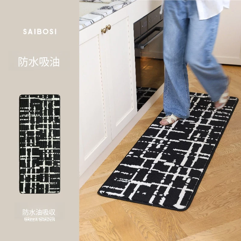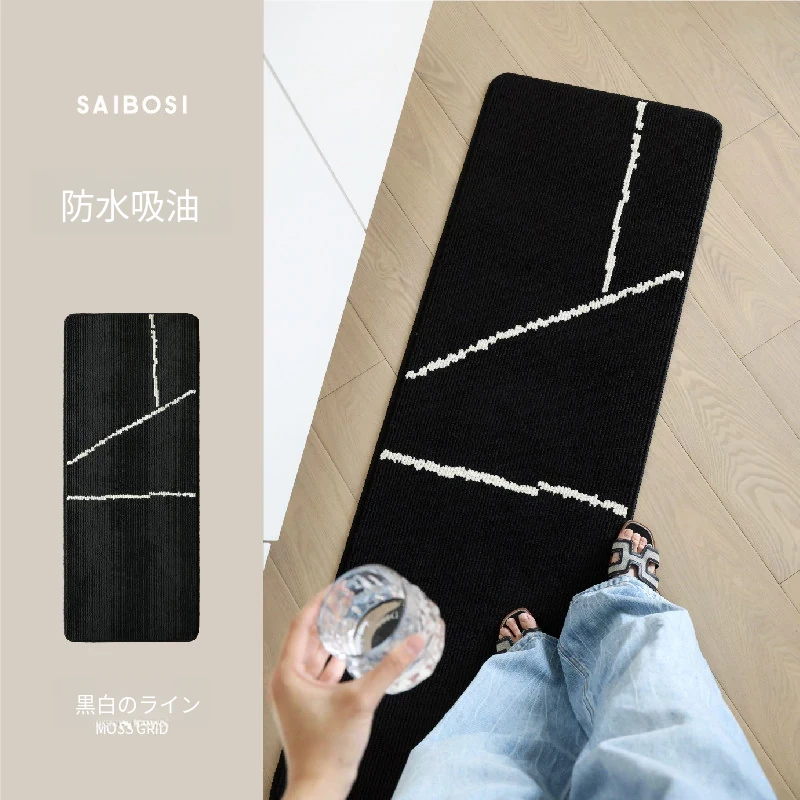 セイボス洗えるキッチンマット 防水・吸油・汚れに強い滑り止め 高級イタリアンミニマルデザインのロングマット
